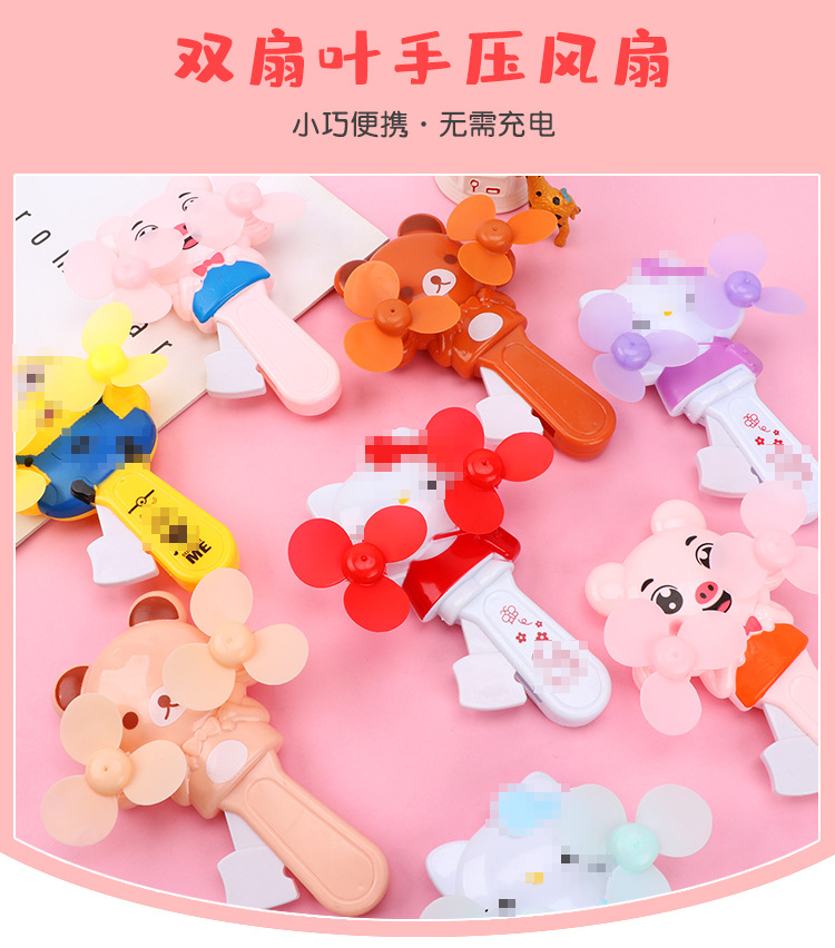 29.9/任选2款【夏日好搭档 轻轻一压清风徐来~】卡通双头双风叶手压风扇 可爱户外便携小风扇 不伤手儿童风扇-QQ