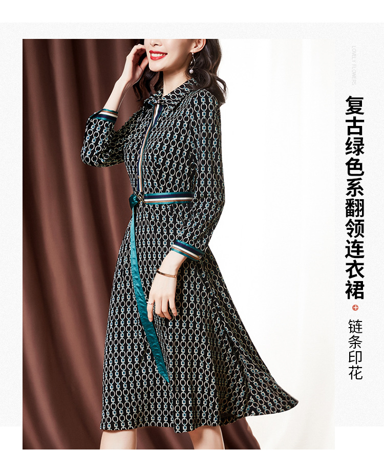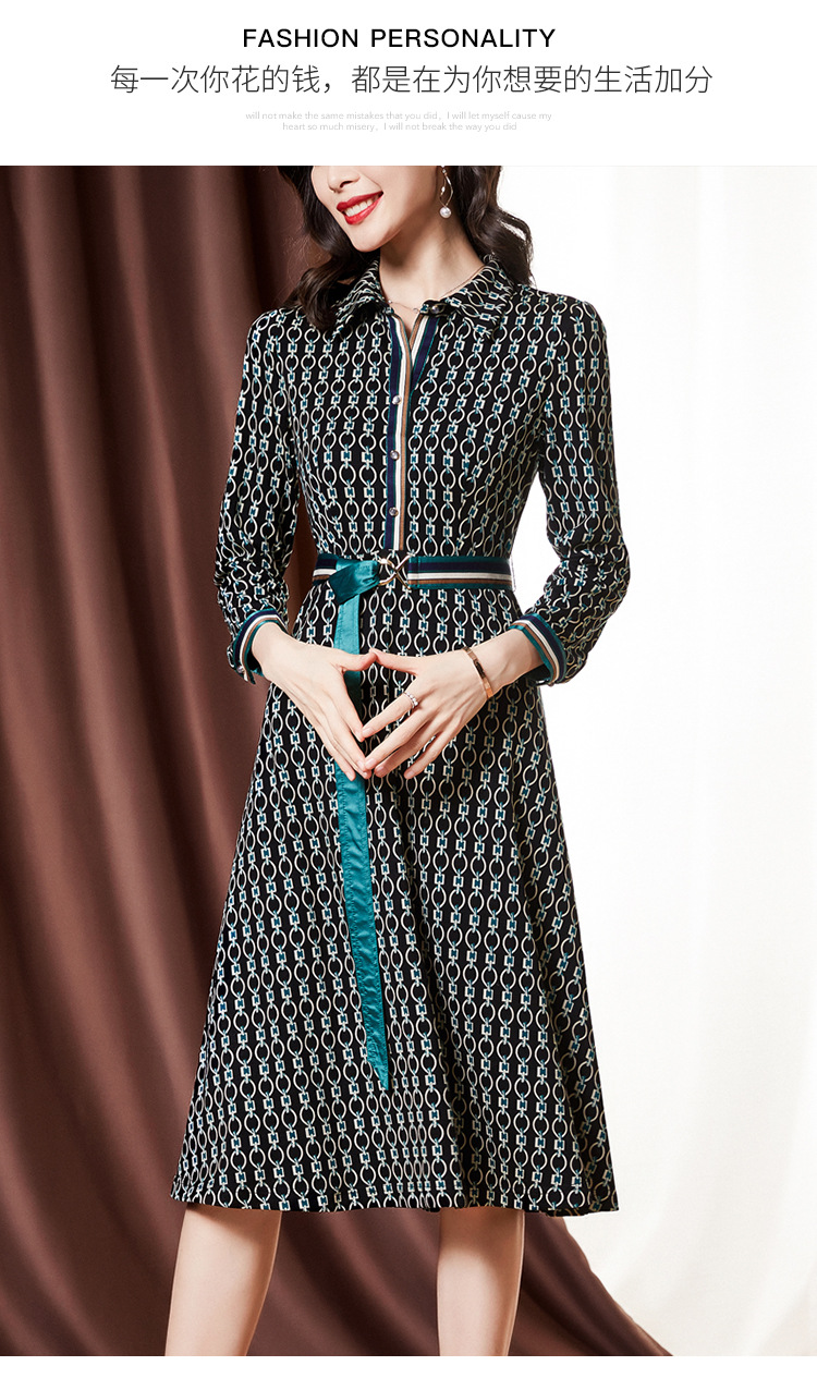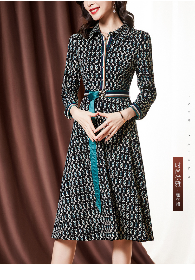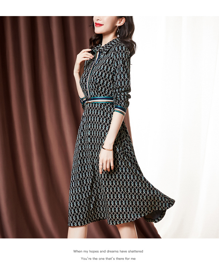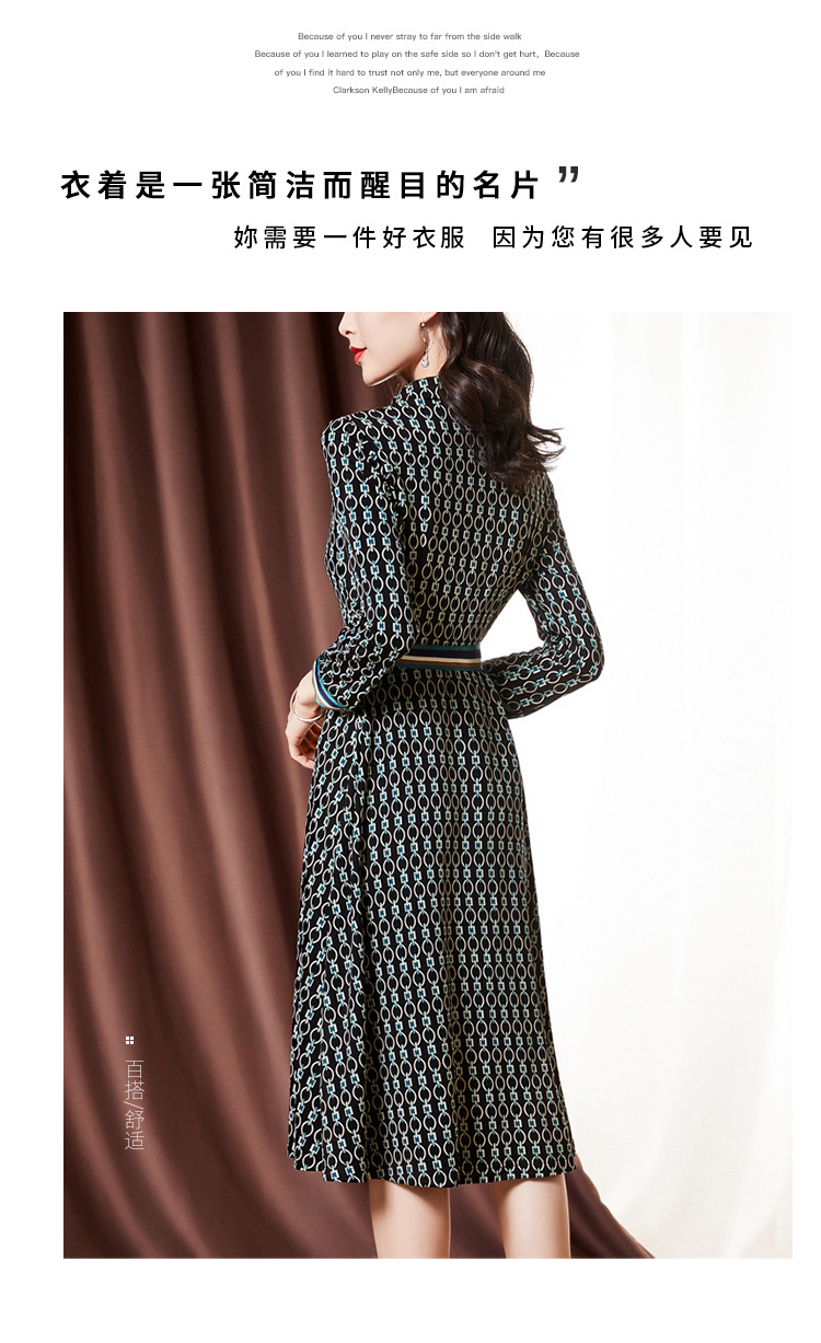 ZS-1976秋季新款中长款连衣裙时尚气质洋气长袖印花裙子