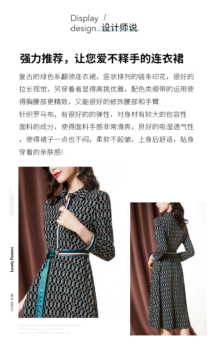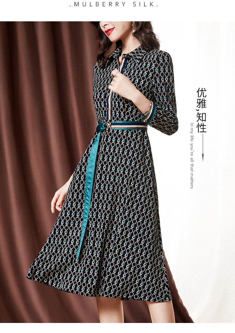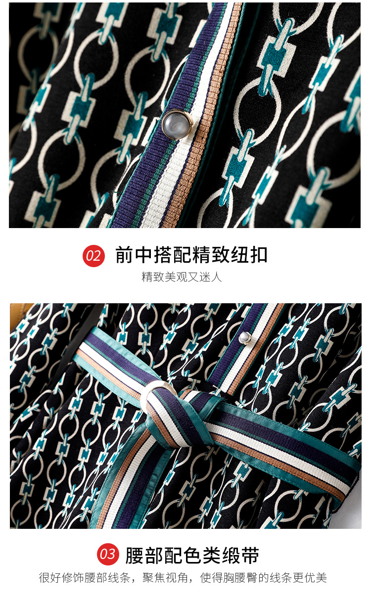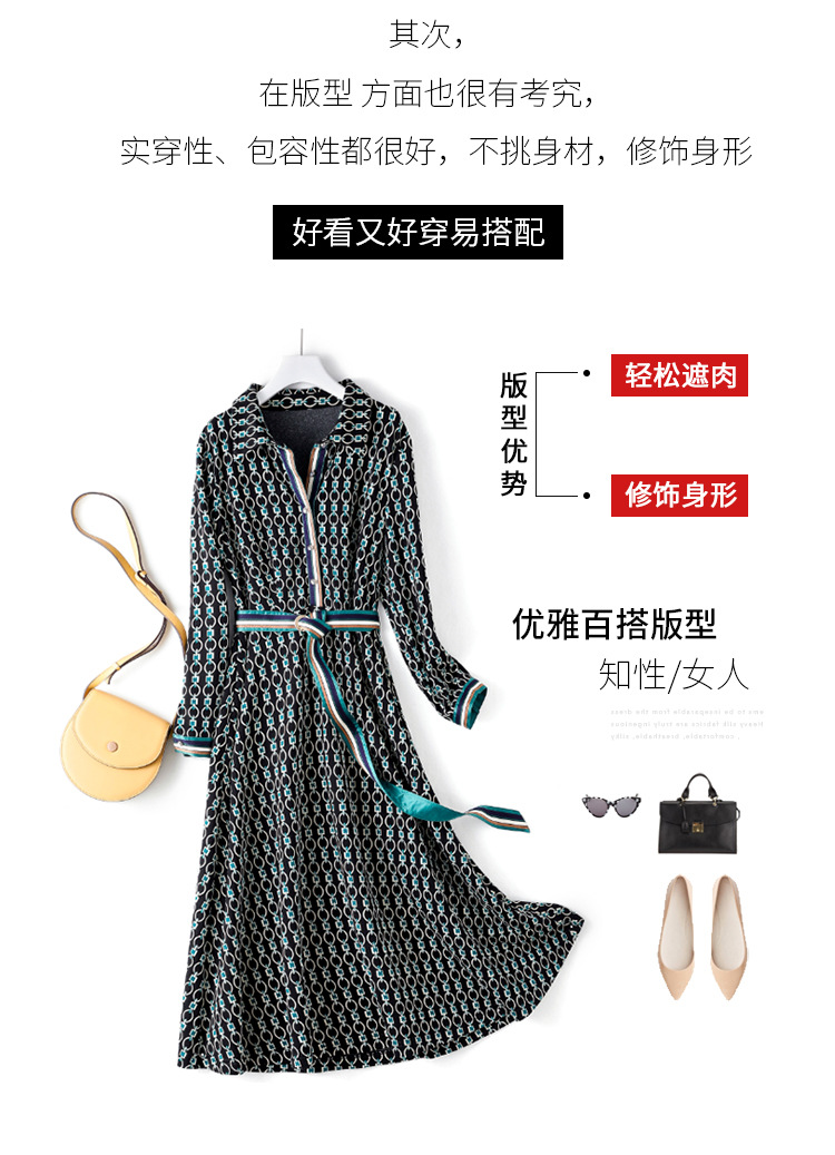 ZS-1976秋季新款中长款连衣裙时尚气质洋气长袖印花裙子