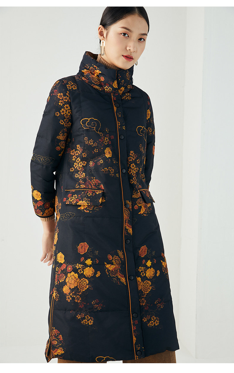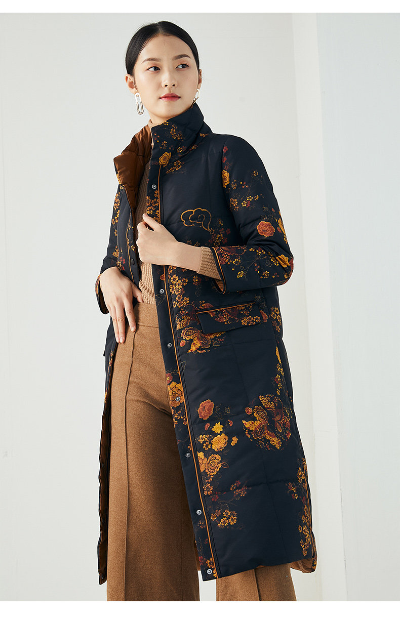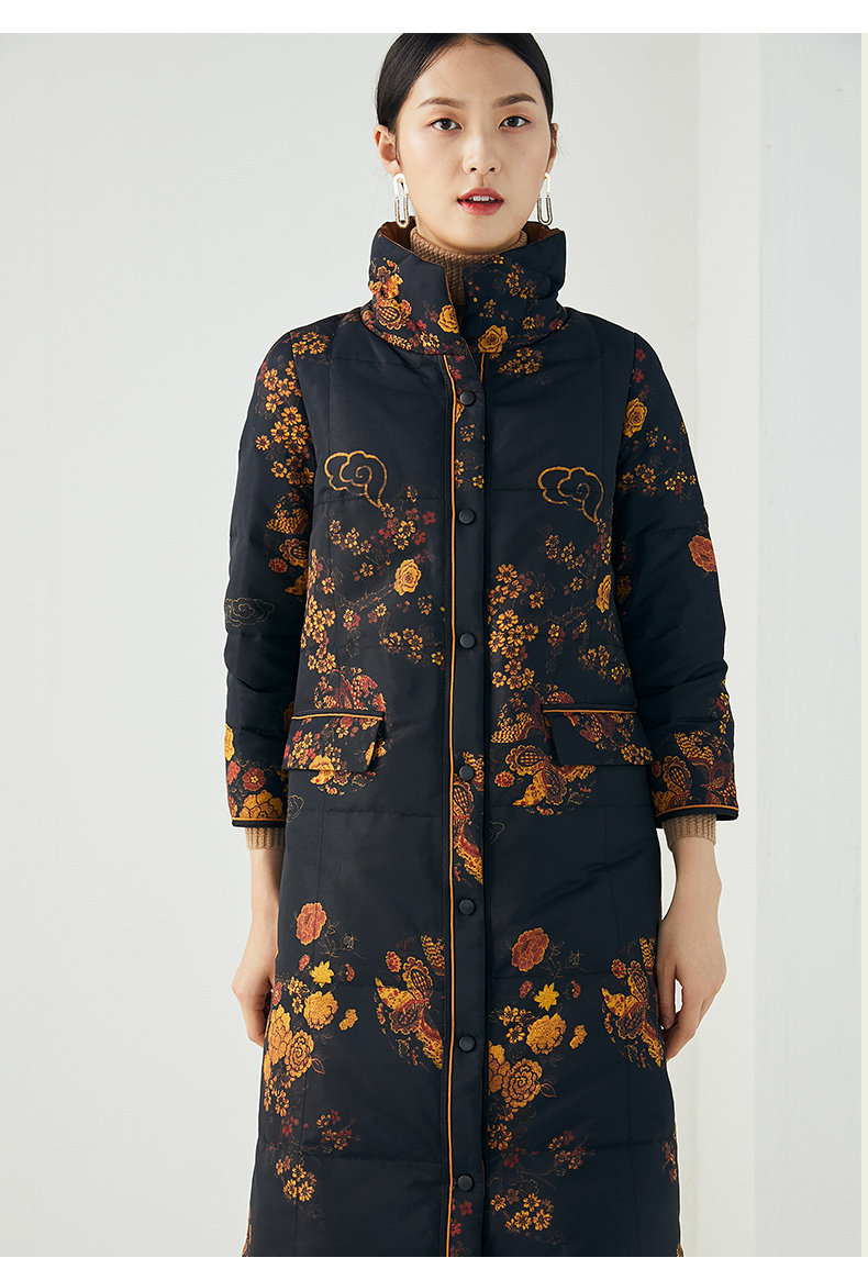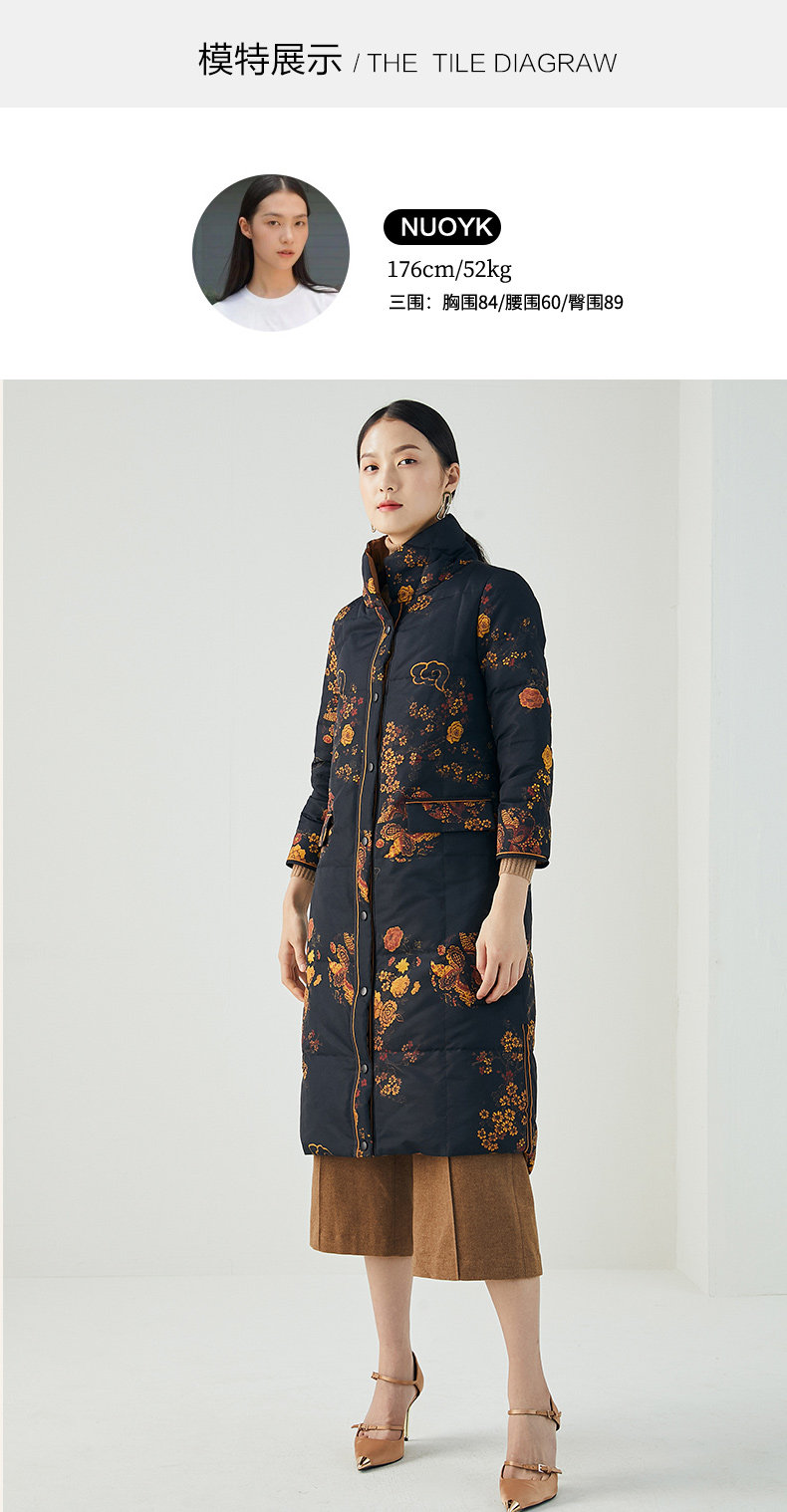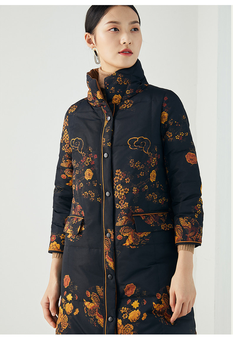 乔万尼复古优雅国风精致感设计双面可穿中长款保暖羽绒服ES4T360