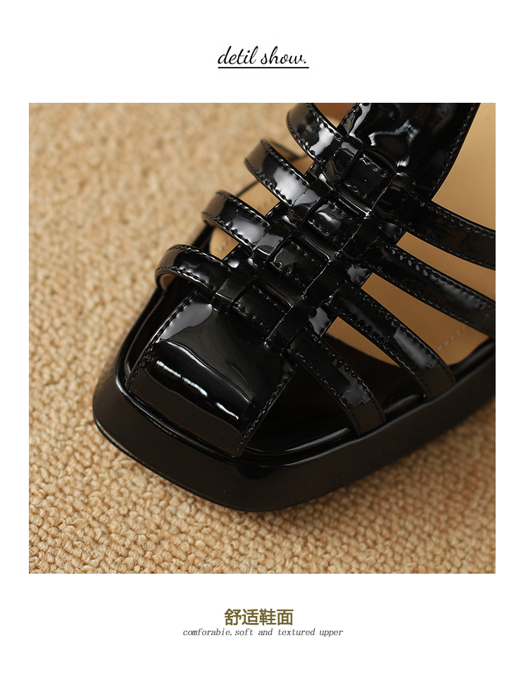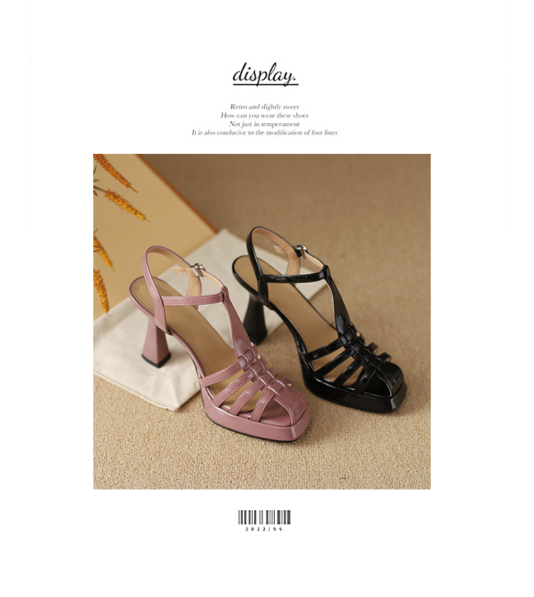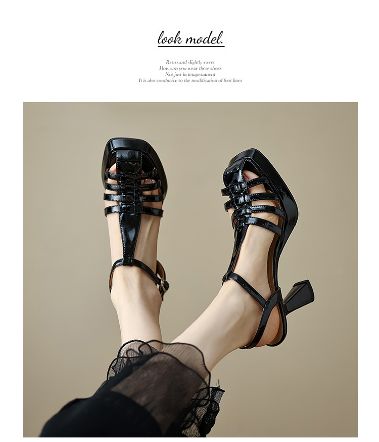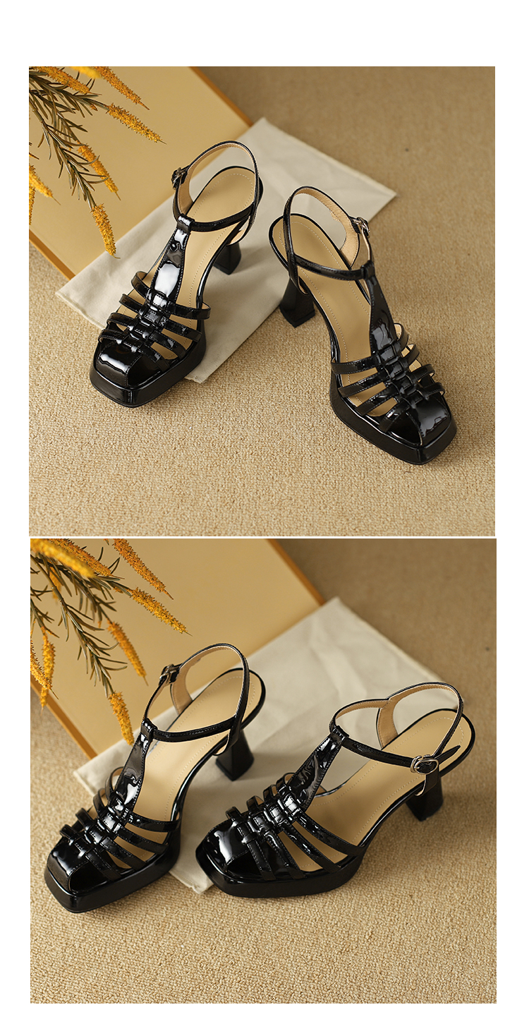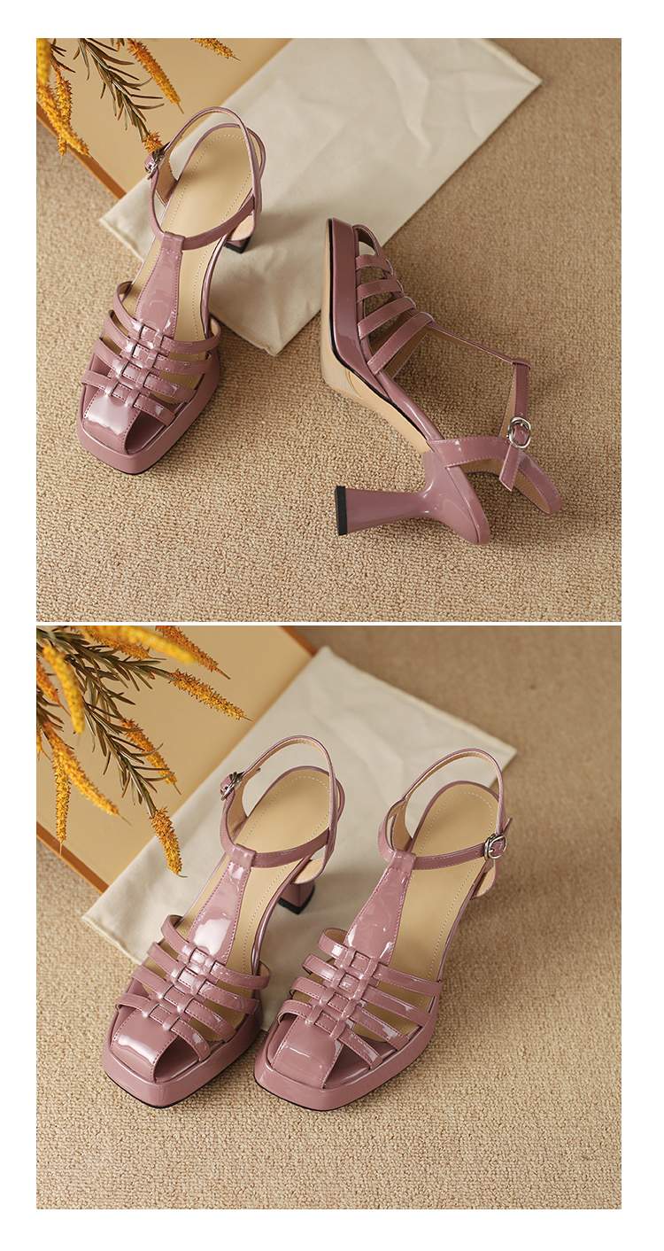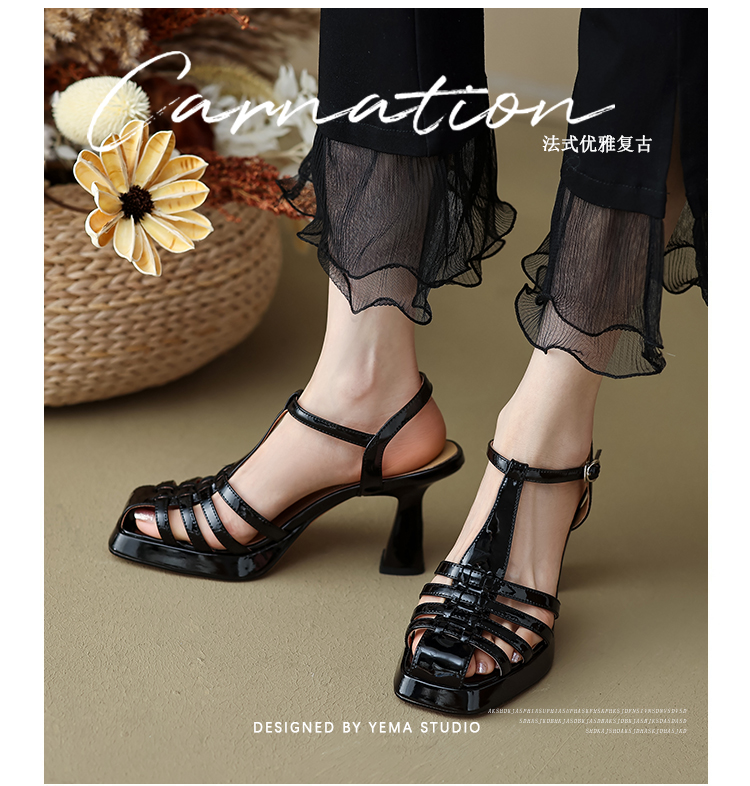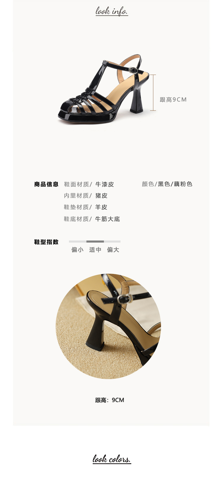 时尚休闲,真皮T型扣带粗跟高跟凉鞋DZM-2349