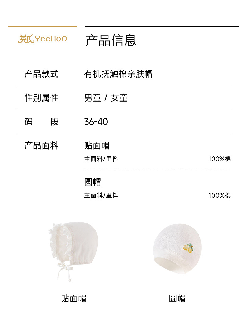 【商场同款】英氏婴儿帽子新生儿胎帽春夏圆帽贴面帽遮阳遮风帽子