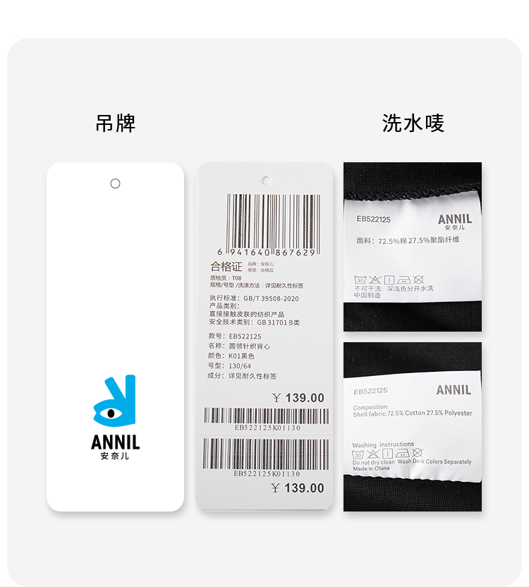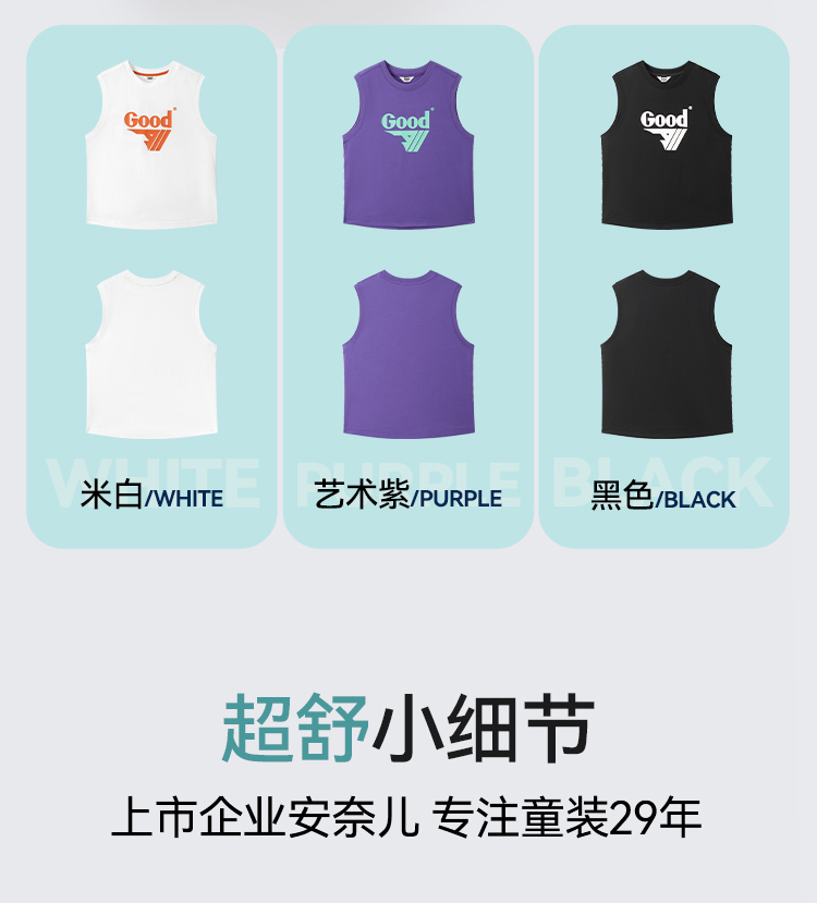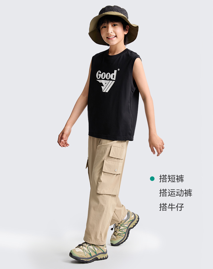 【凉感】男童SORONA凉感圆领针织背心夏季新款安奈儿童装EB522125