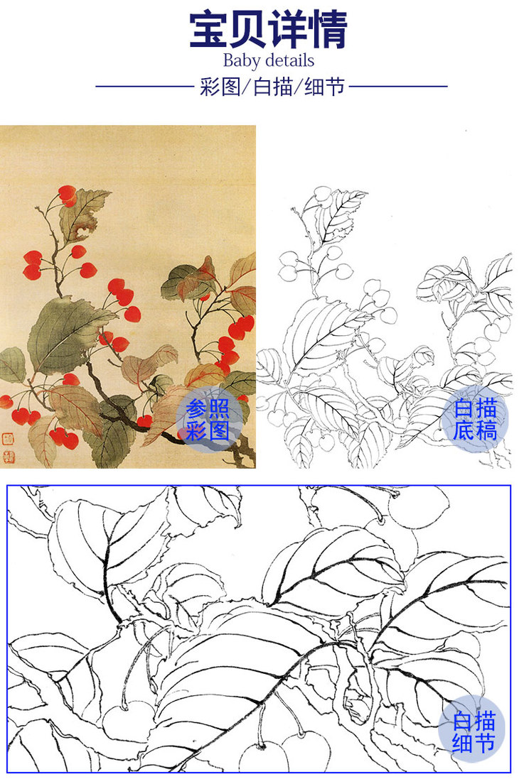 谢稚柳花鸟工笔画白描底稿《栖雀图》临摹勾线高清打印稿XZ08