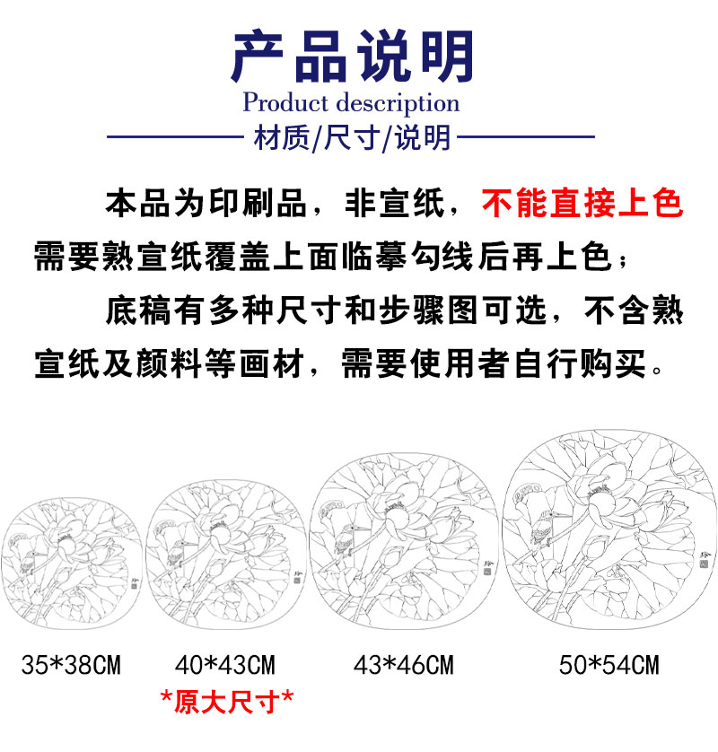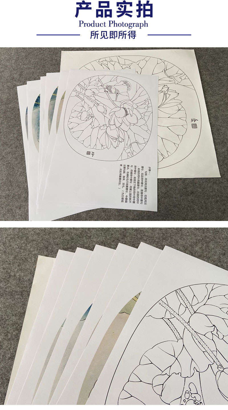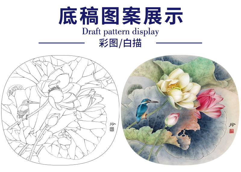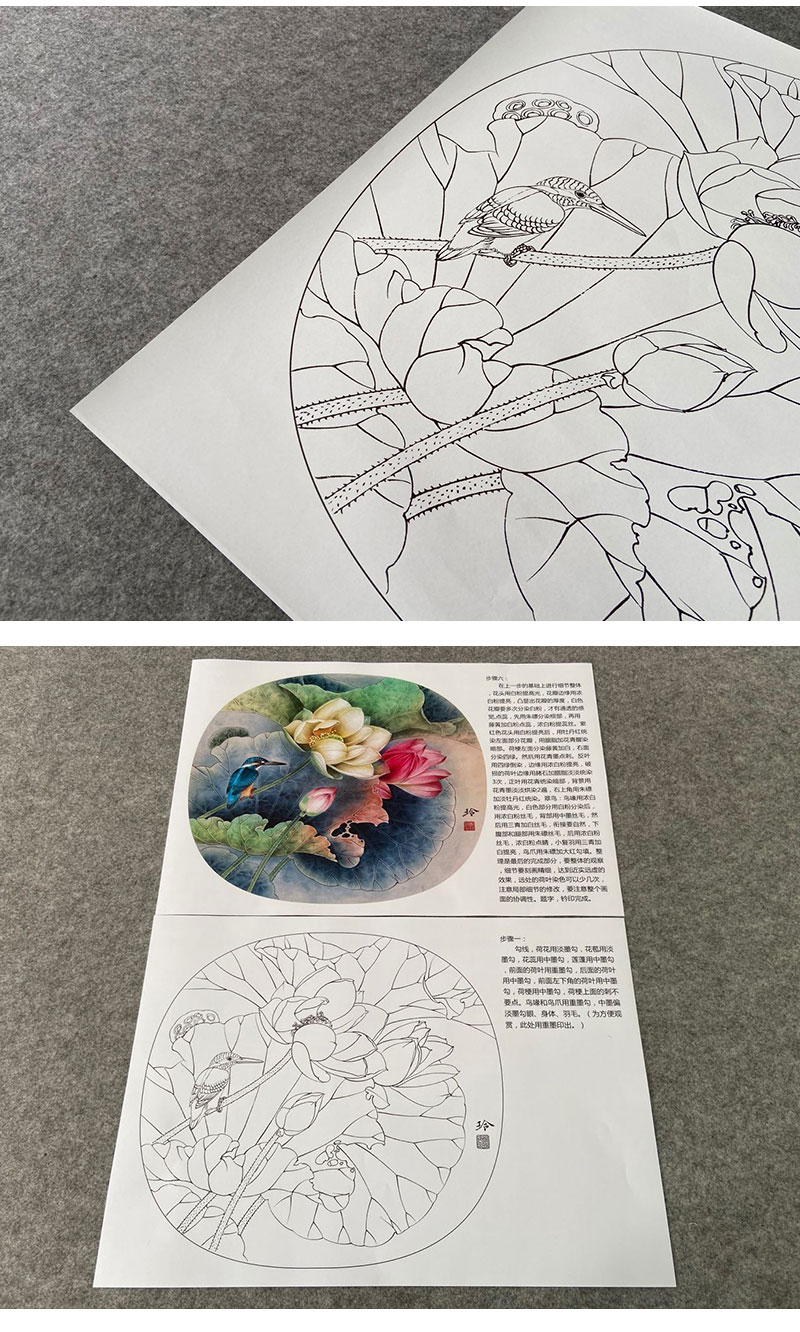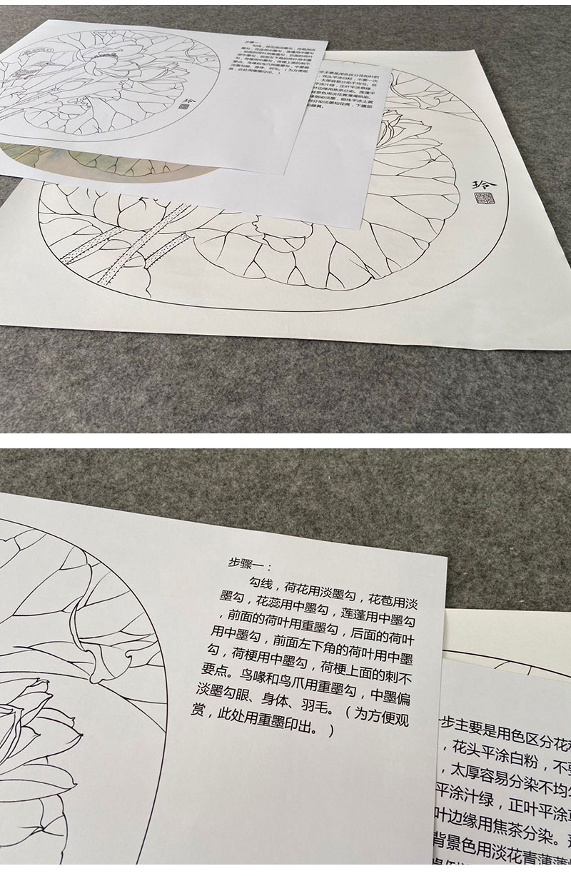 【有步骤、大彩图】郑玲玲工笔画白描稿小品《荷香幽韵》荷花初学者临摹花鸟线稿ZL81