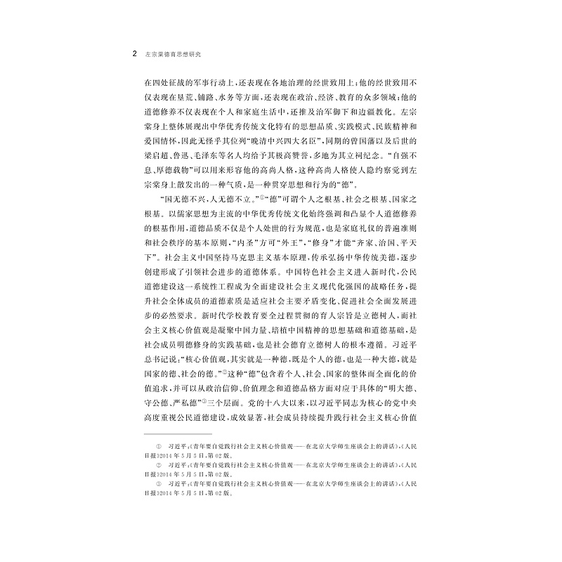 左宗棠是近代著名政治家、军事家和思想家,是具有历史贡献、值得深入研究的典型人物。其德育思想虽具有一定局限性,却是中华优秀传统文化的组成部分,对新时代公民道德建设及高校思想政治教育具有借鉴和启发意义。本书在对左宗棠思想进行全面溯源和整理的基础上,探寻左宗棠思想体系中关于思想理论、价值观念、理想信仰、实践模式等方面的德育内容,对左宗棠德育思想的内容及表现形式进行梳理和阐释,为左宗棠德育思想的当代价值挖掘与应用奠定基础。