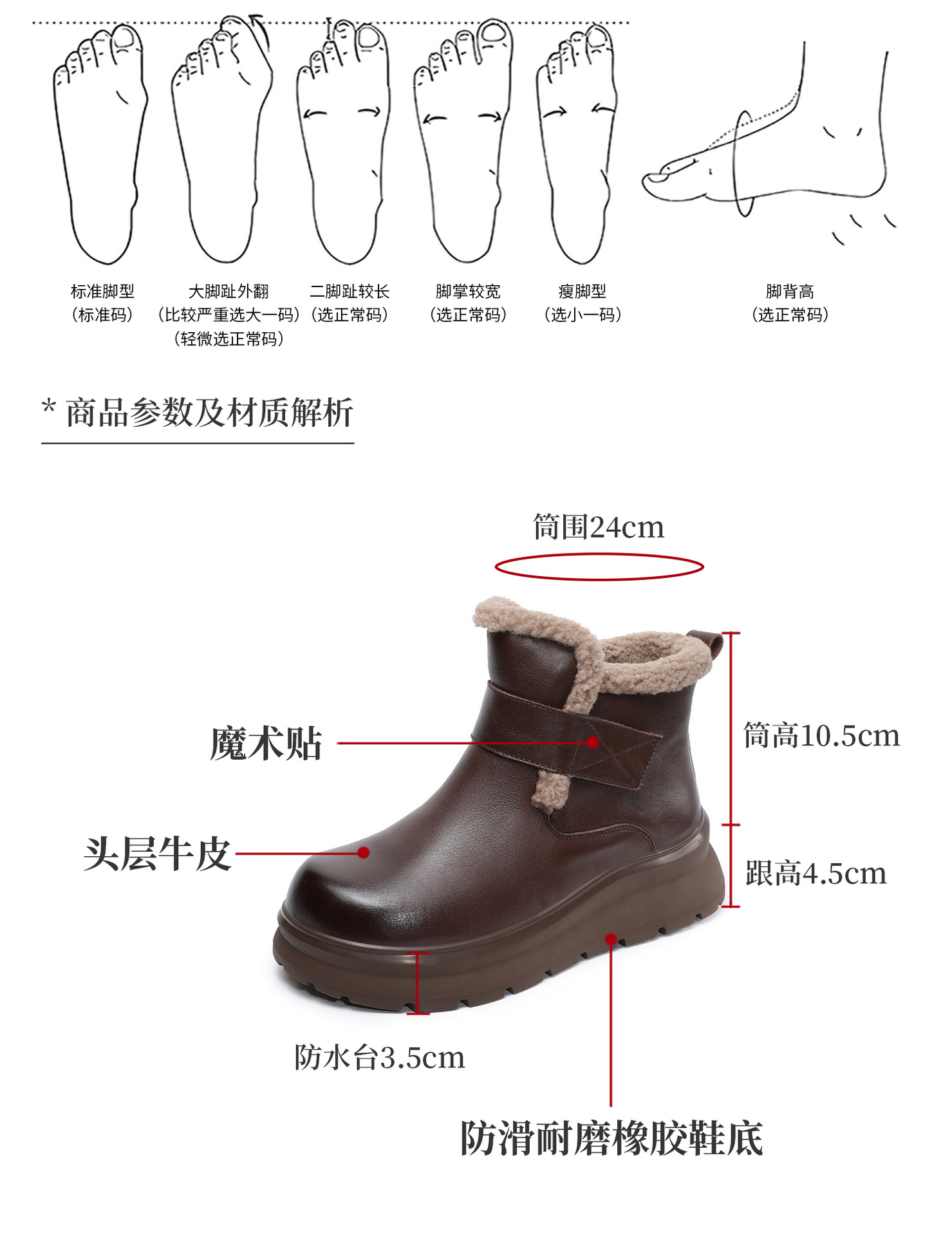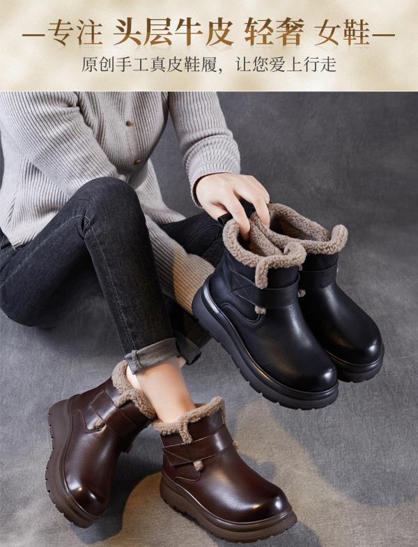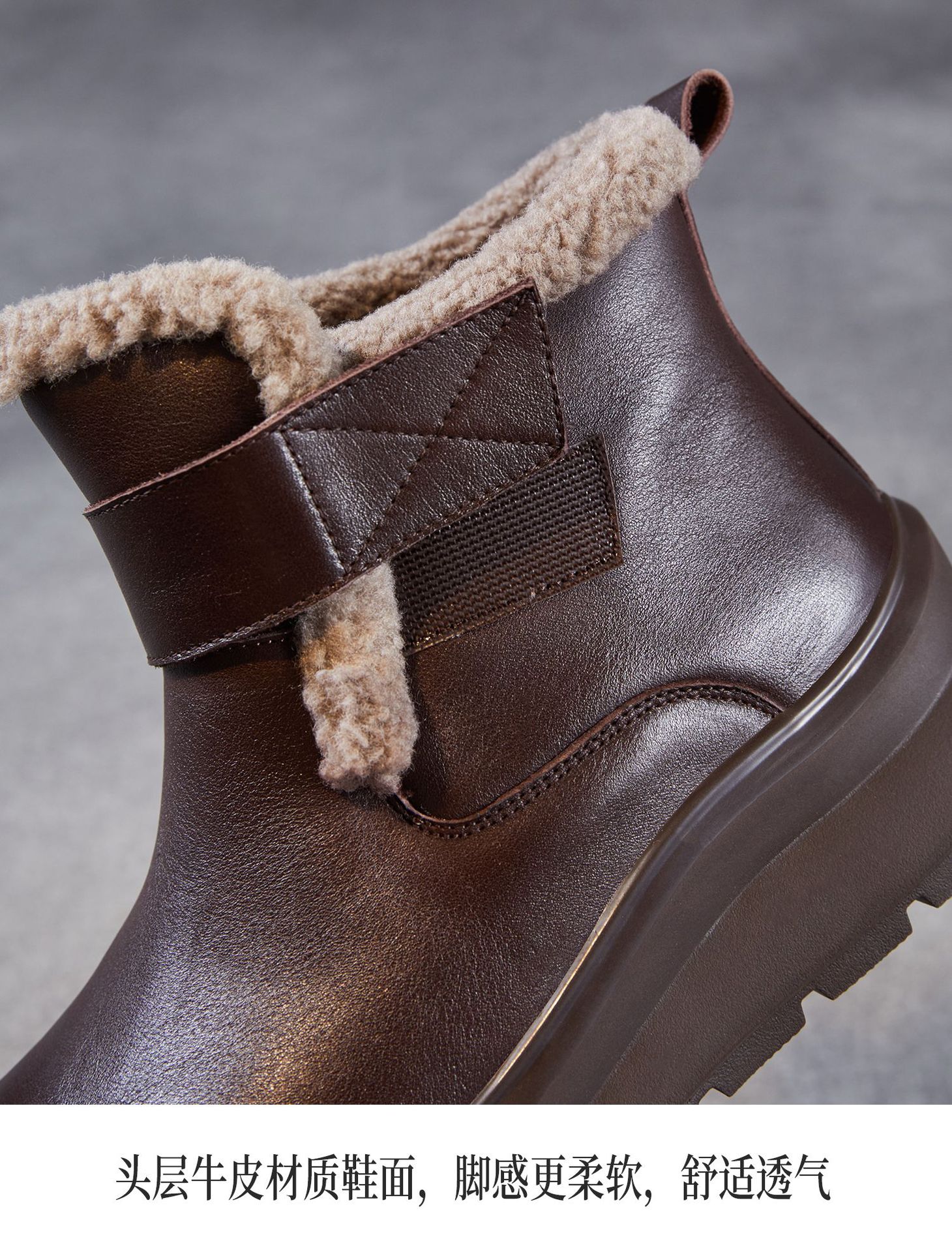 ZM258763头层牛皮女鞋2025年冬季新款加绒保暖雪地靴防滑舒适真皮东北棉鞋