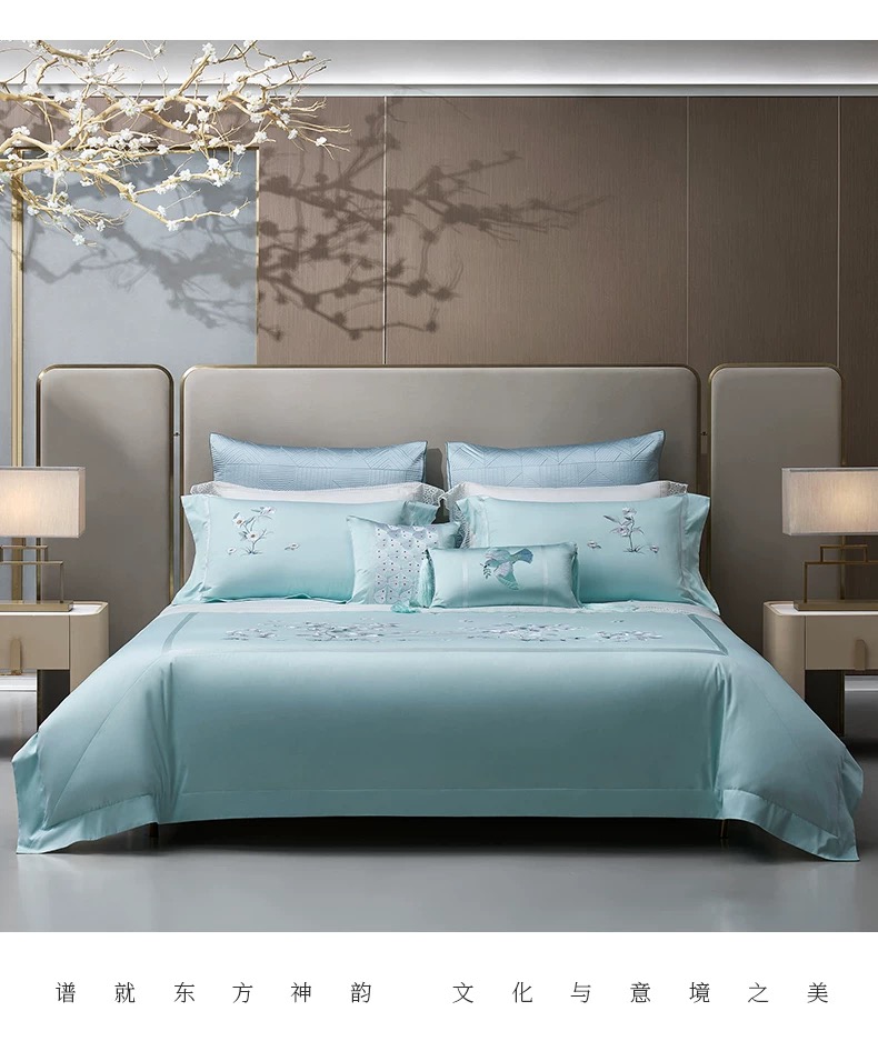 whinny/惠谊 精致婉约系列100支全棉新疆长绒棉刺绣四件套 浅草集