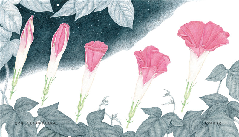 一粒不起眼的小小的黑色种子种进土里,不久之后,翠绿的藤蔓出现了,紧接着一朵朵美丽的牵牛花开了。花期过后,牵牛花的种子还要踏上下一段旅程,迎接它的会是什么呢?
