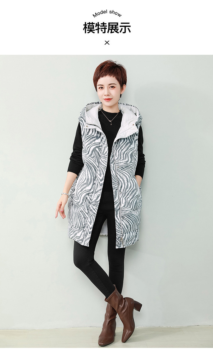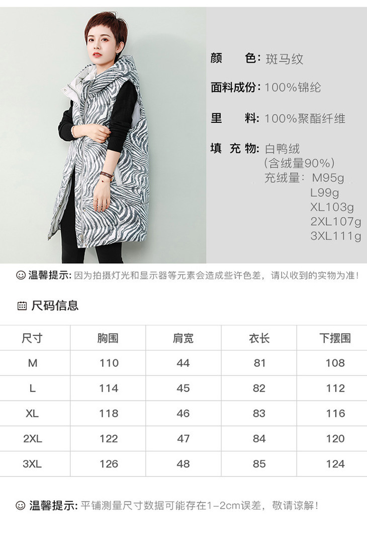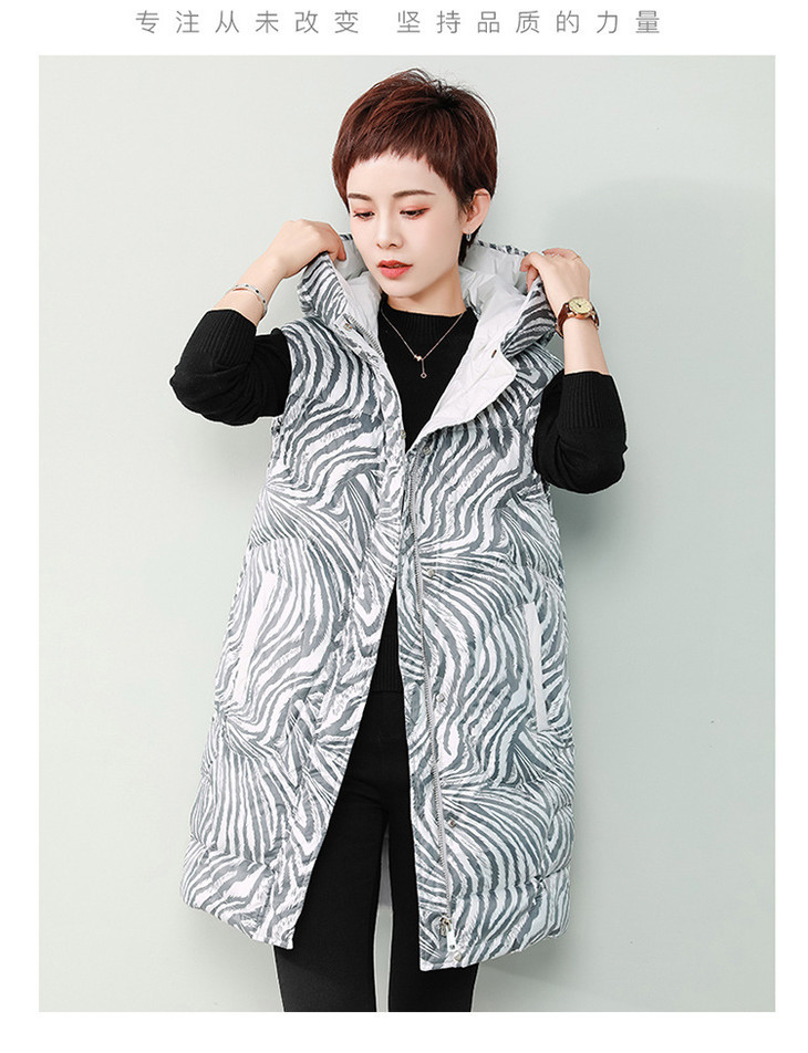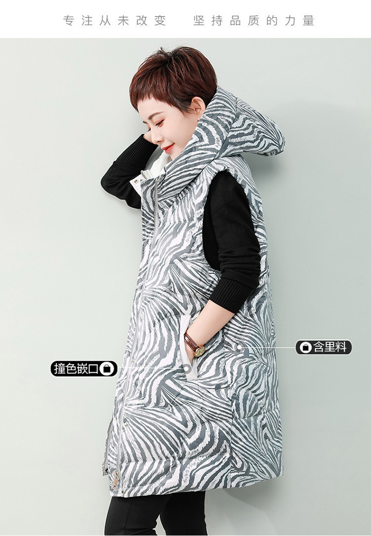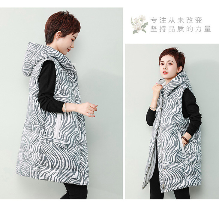 SXSL-DK-WZ8254新款潮流时尚气质连帽斑马纹马甲羽绒服外套