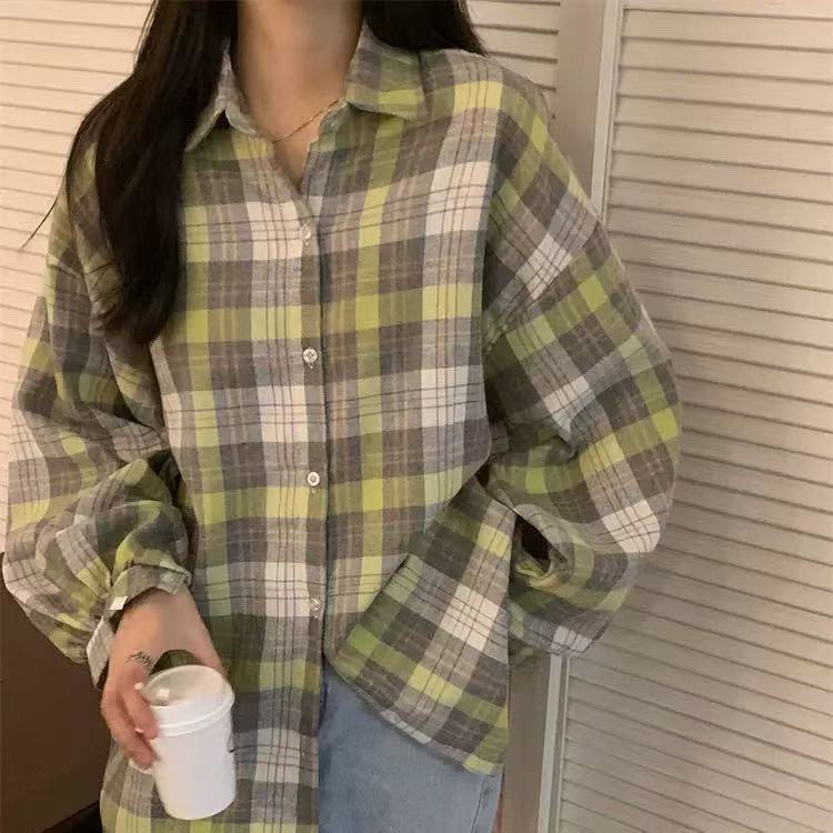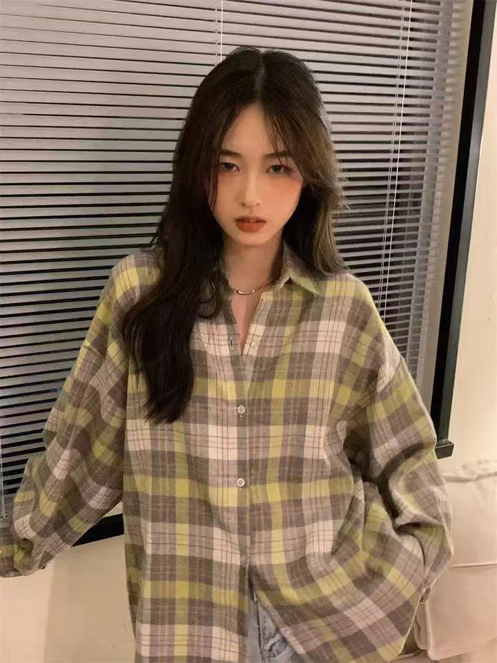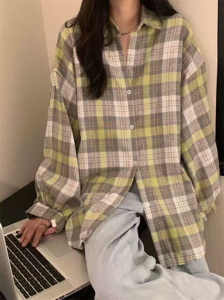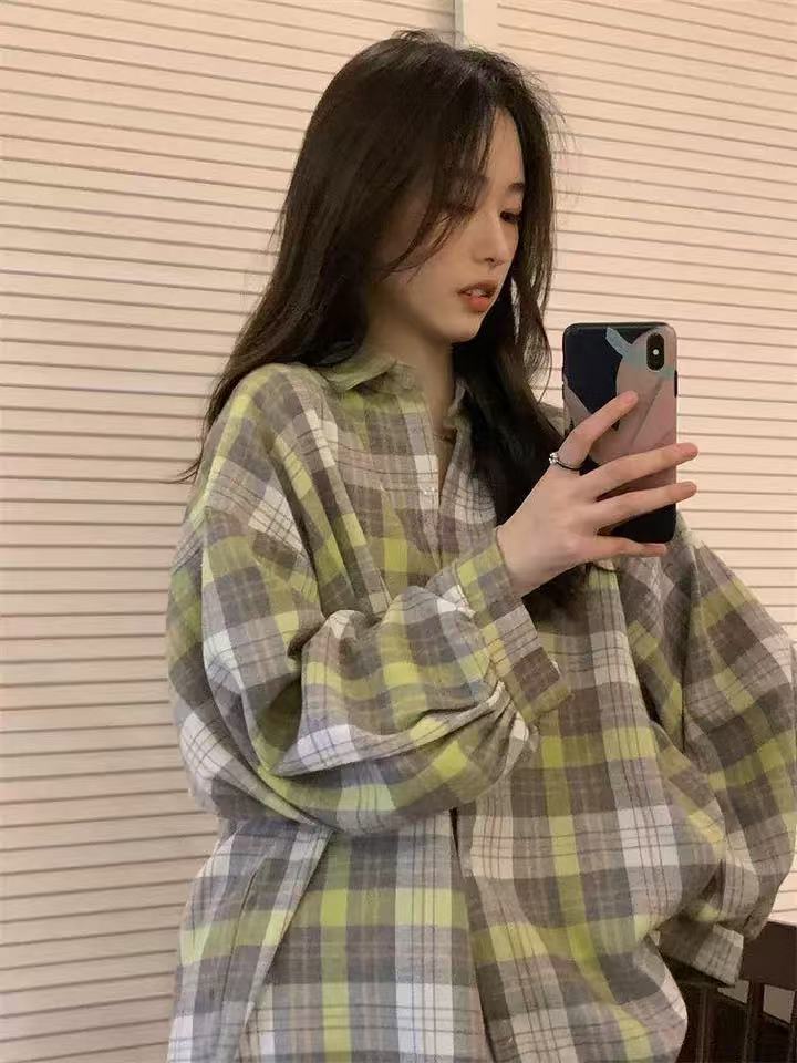 【秋上新】吉妮品牌 018D绿色格子衬衫-喜出