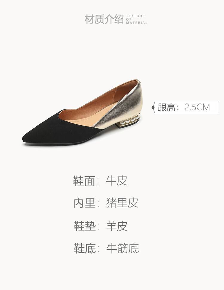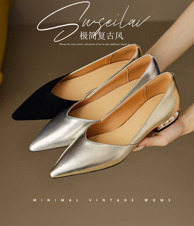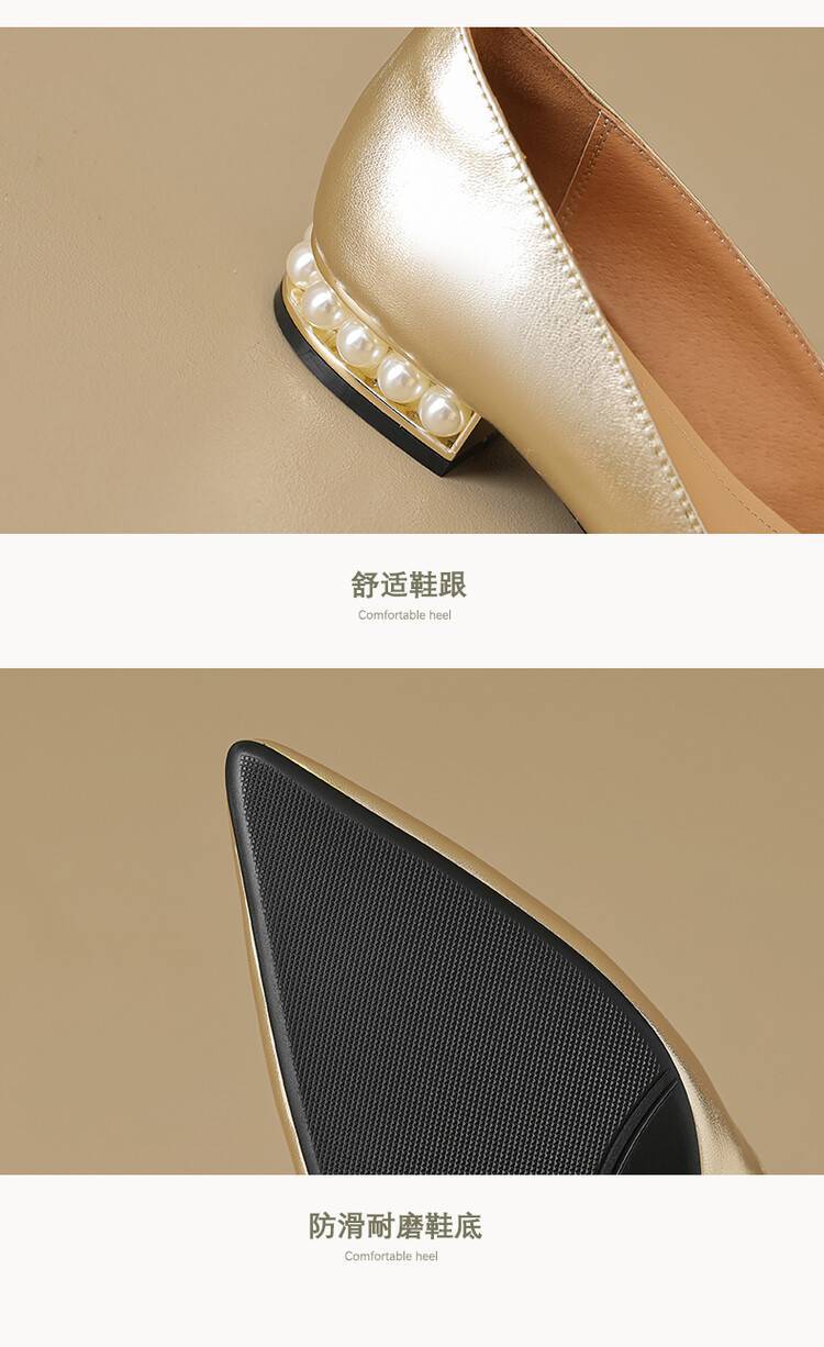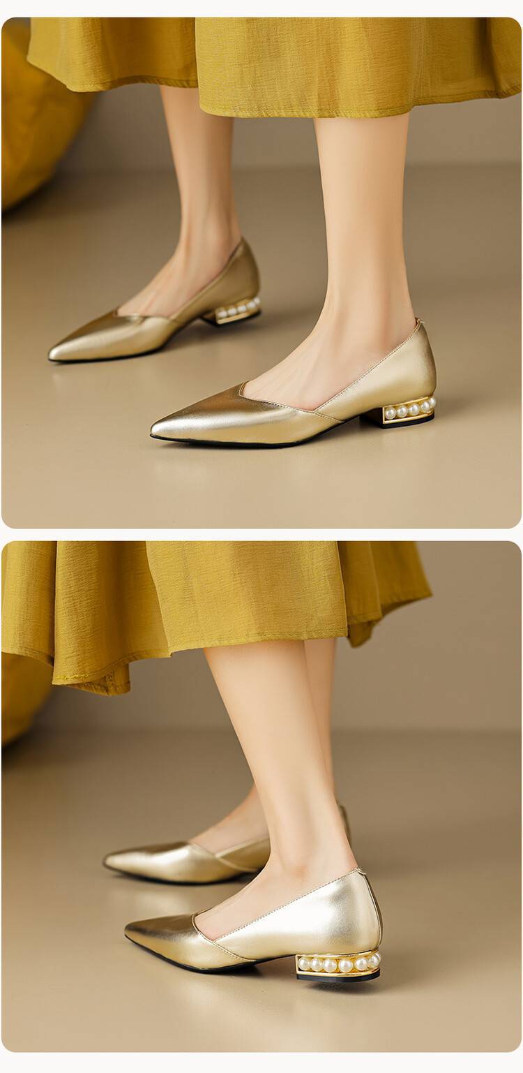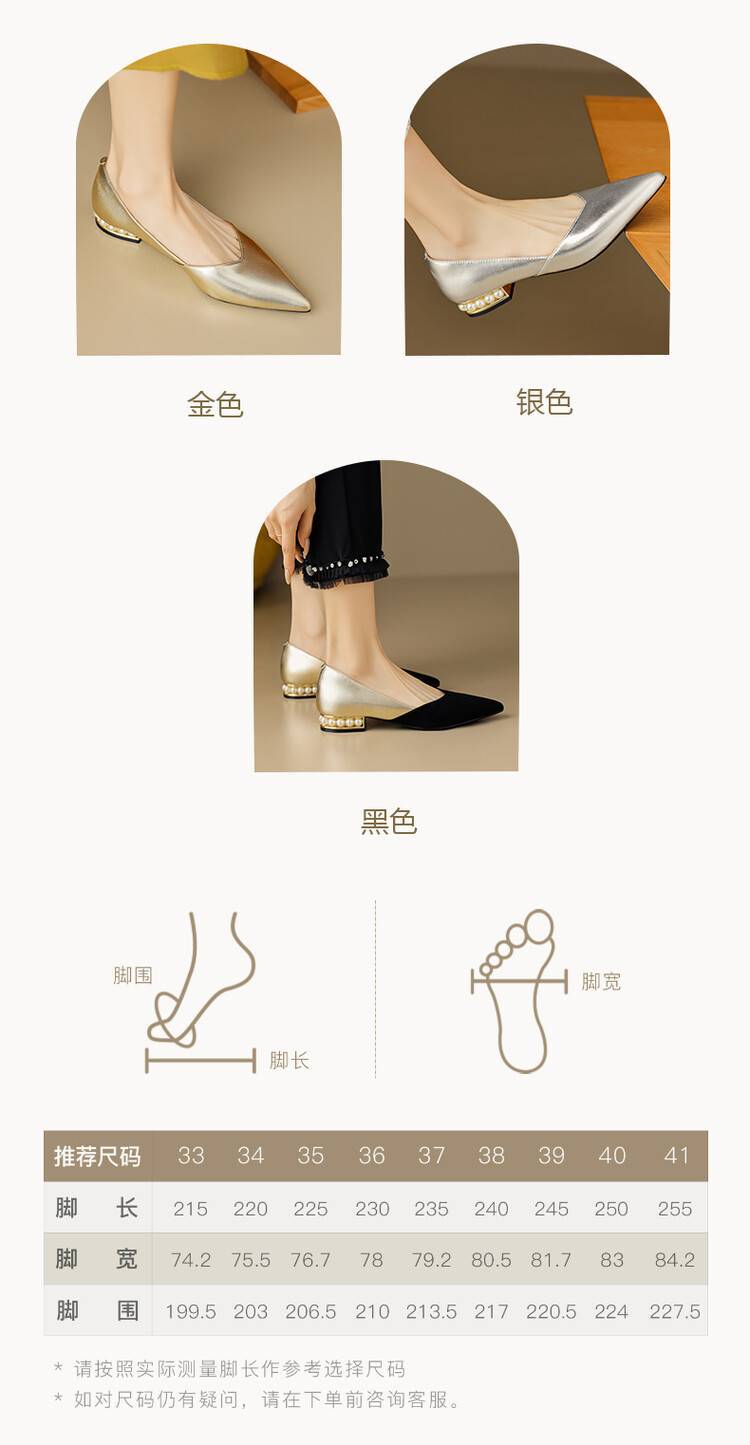 【预售7天】韩系高级感牛皮珍珠银色单鞋舒适又洋气尖头粗跟小个子上班鞋DQ&DQ623