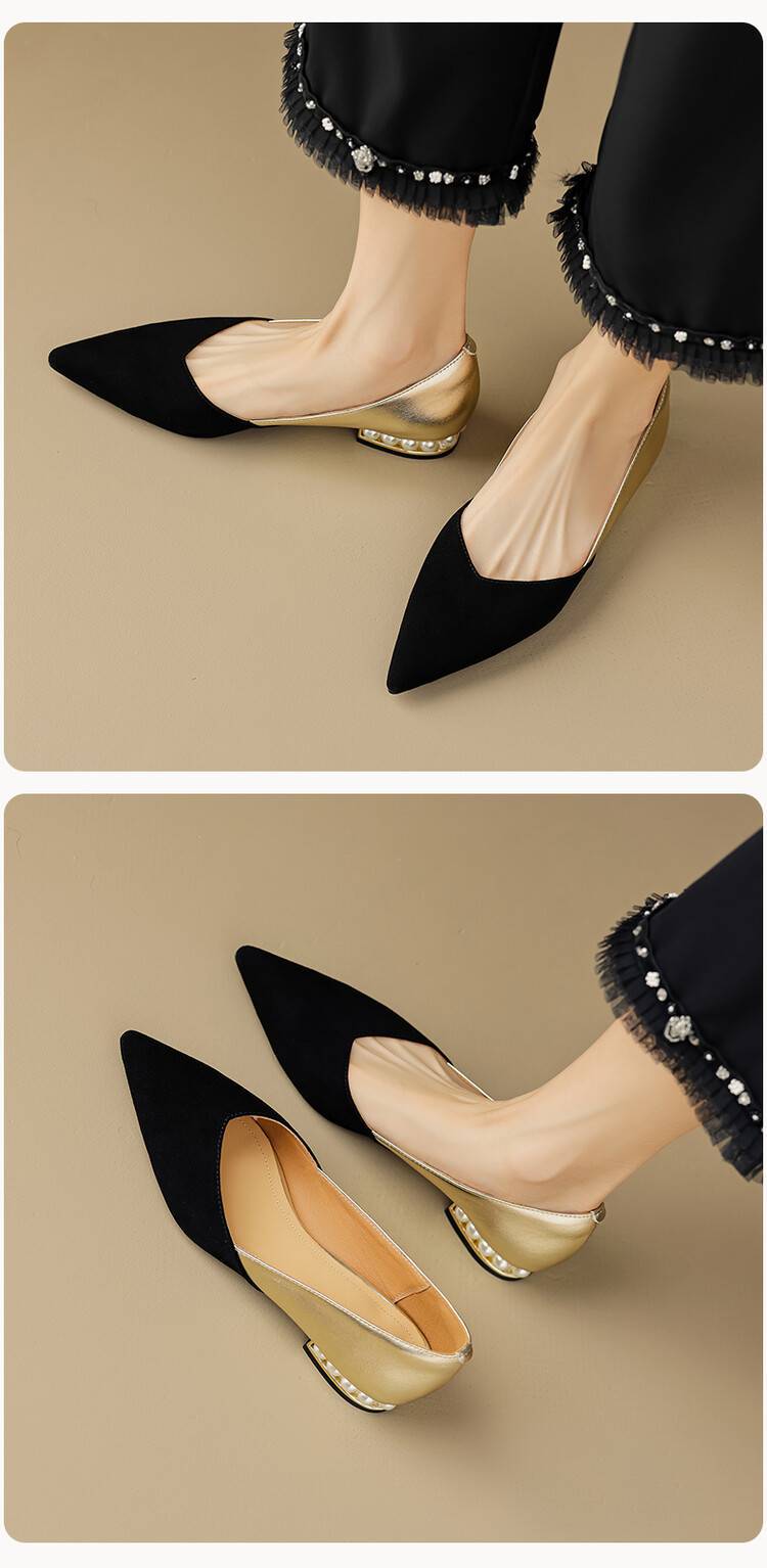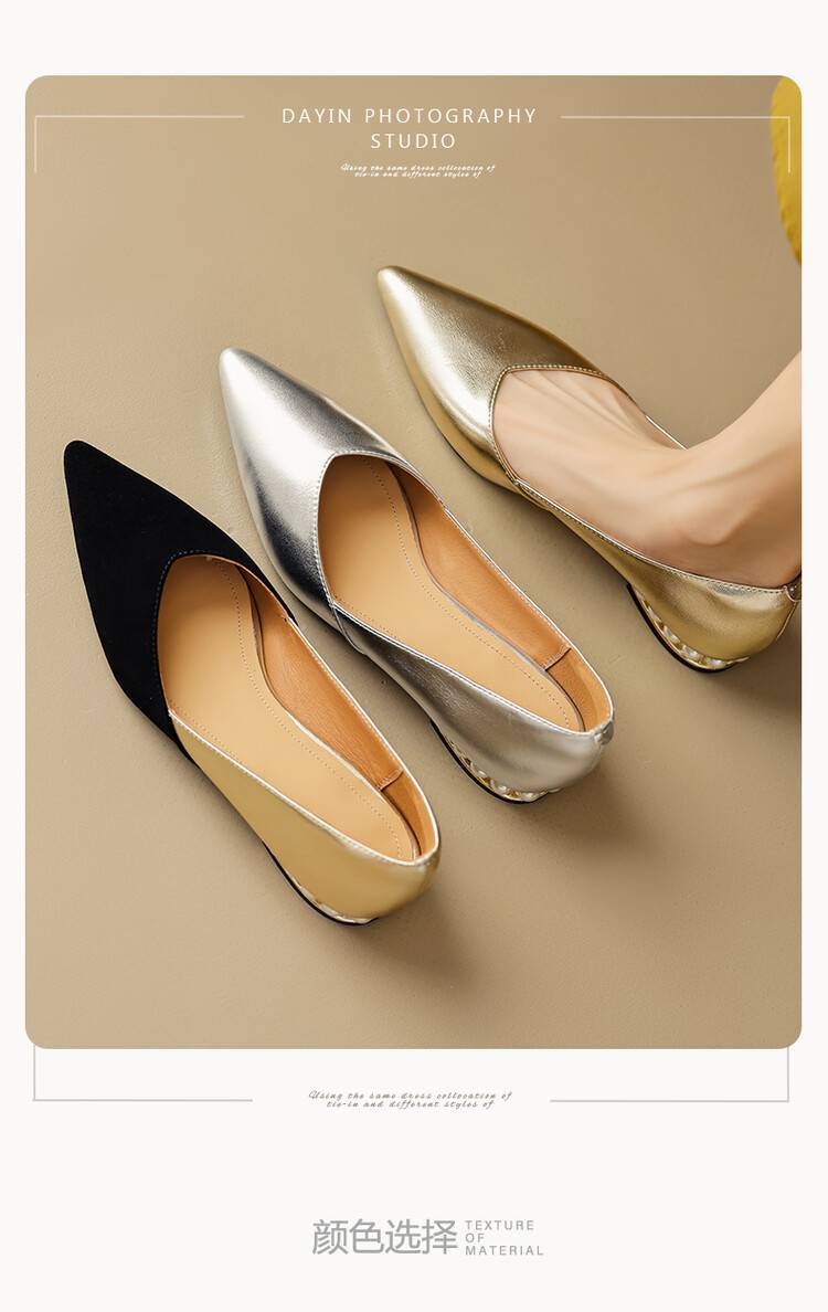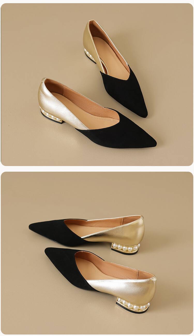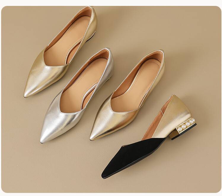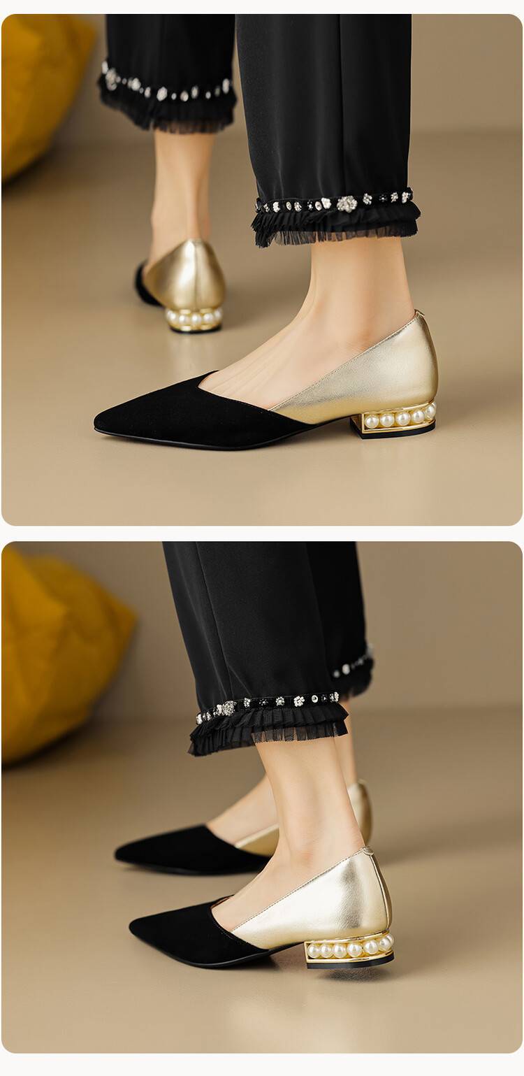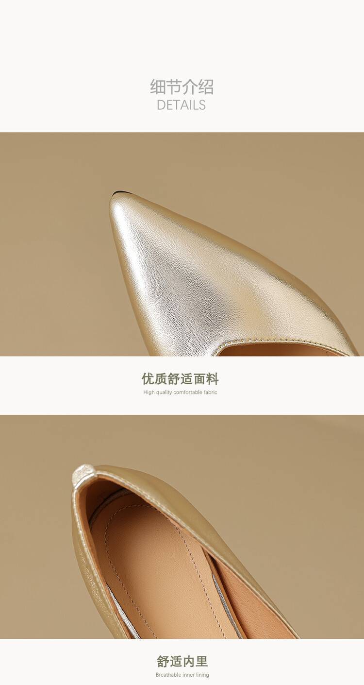 【预售7天】韩系高级感牛皮珍珠银色单鞋舒适又洋气尖头粗跟小个子上班鞋DQ&DQ623