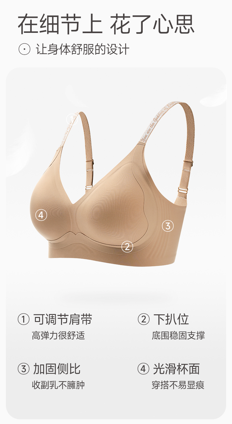 芬腾无痕内衣女小胸聚拢隐形肤色粉底液光面文胸无钢圈收副乳胸罩