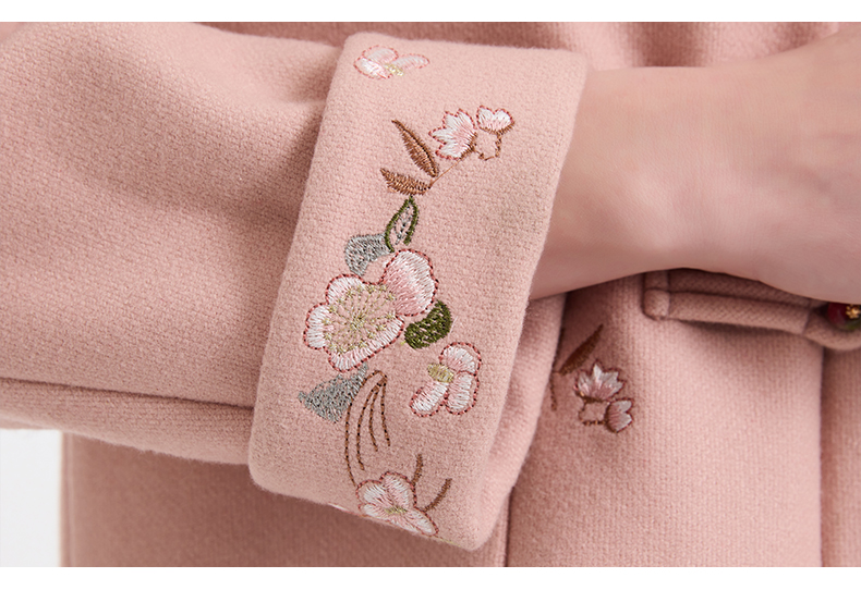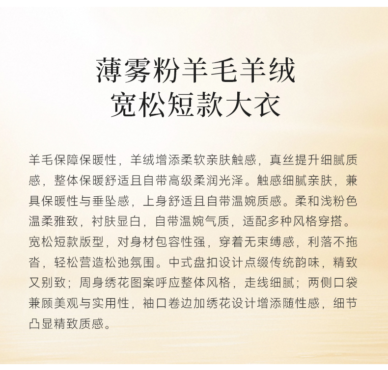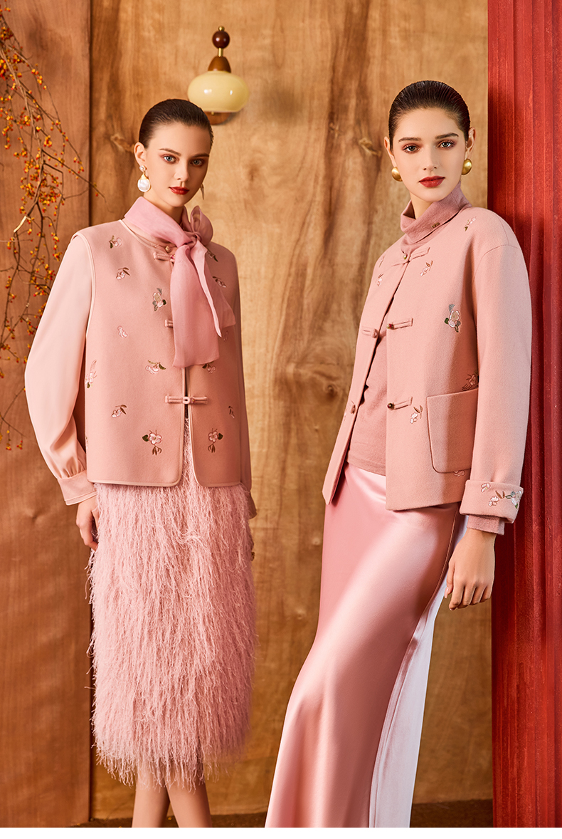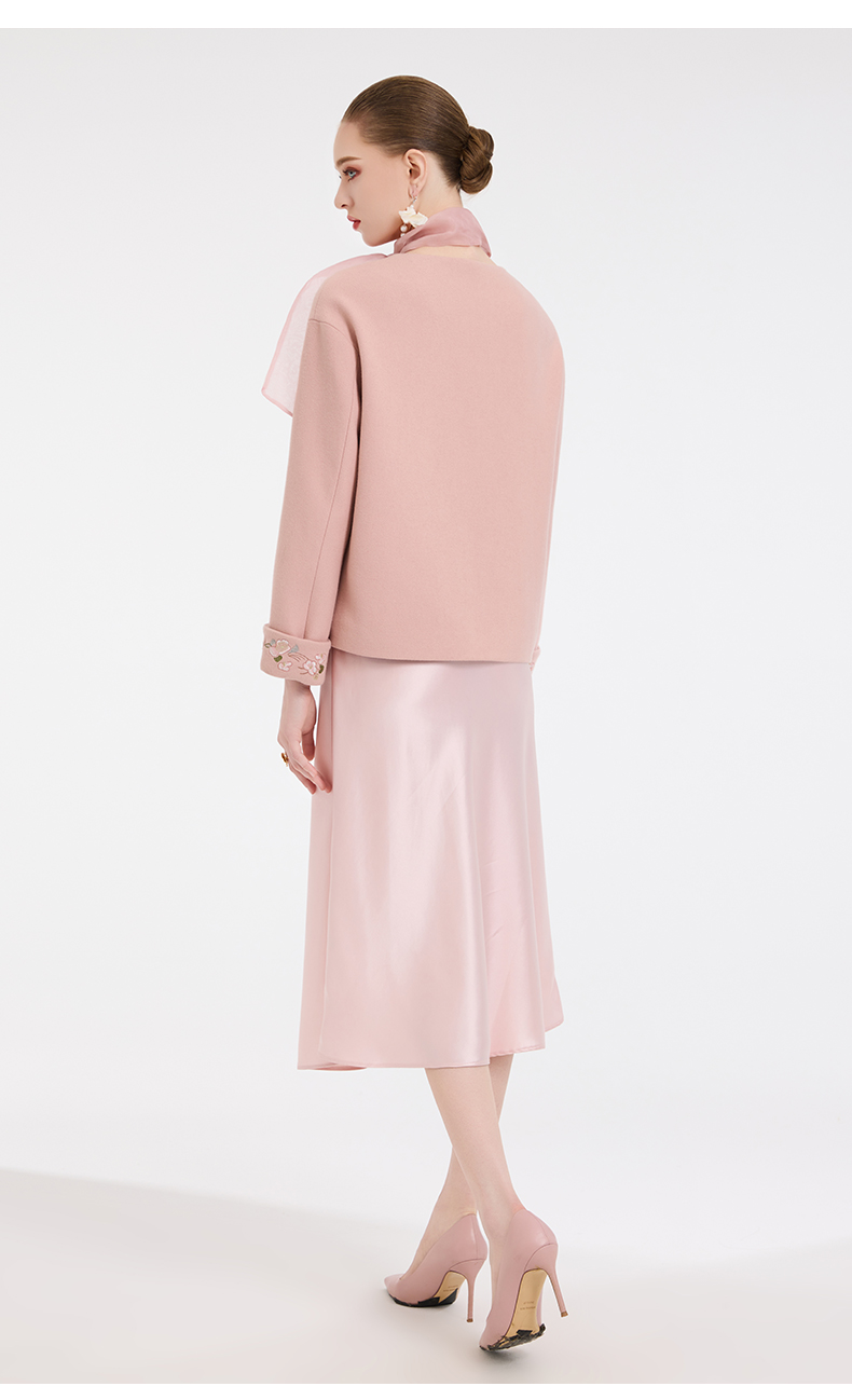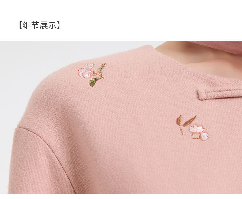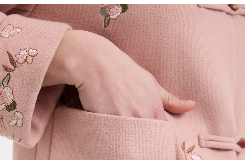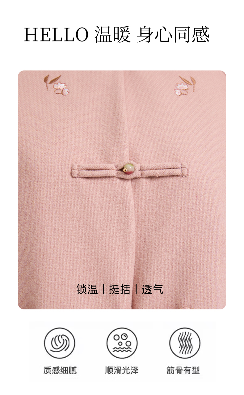乔万尼新中式盘扣刺绣设计感无领羊毛羊绒混纺短款羊毛大衣外套ED4B786