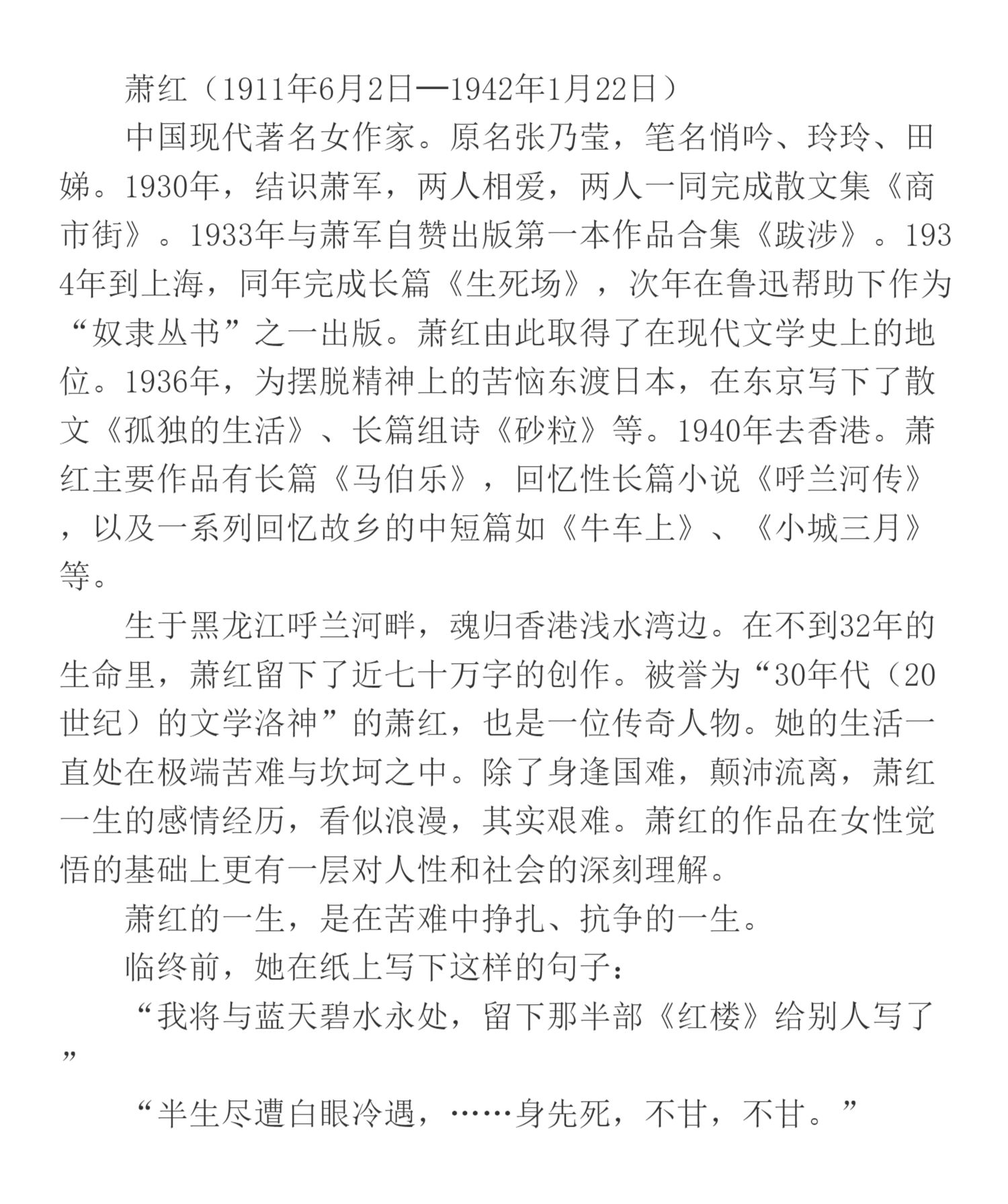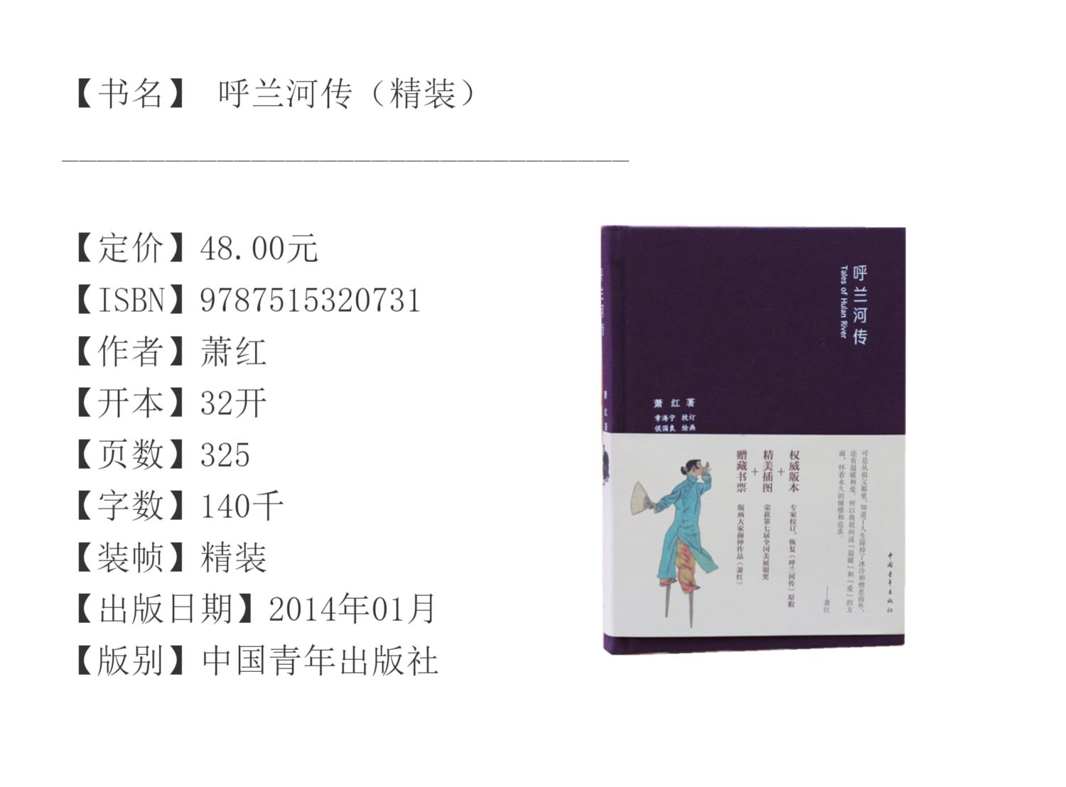 呼兰河传萧红原著布面精装便携中国青年出版社小学必读经典书目老师推荐语文阅读丛书五年级课外阅读书籍