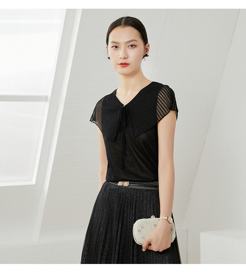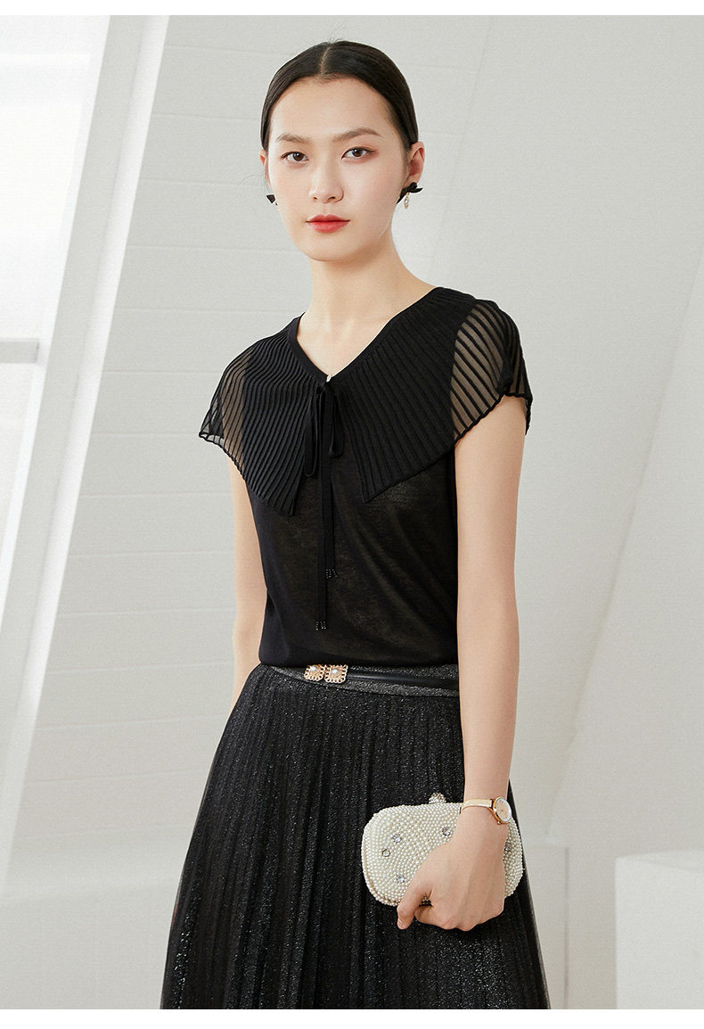 乔万尼娃娃领薄款小香风设计感早春针织衫夏款短袖上衣EI2M825
