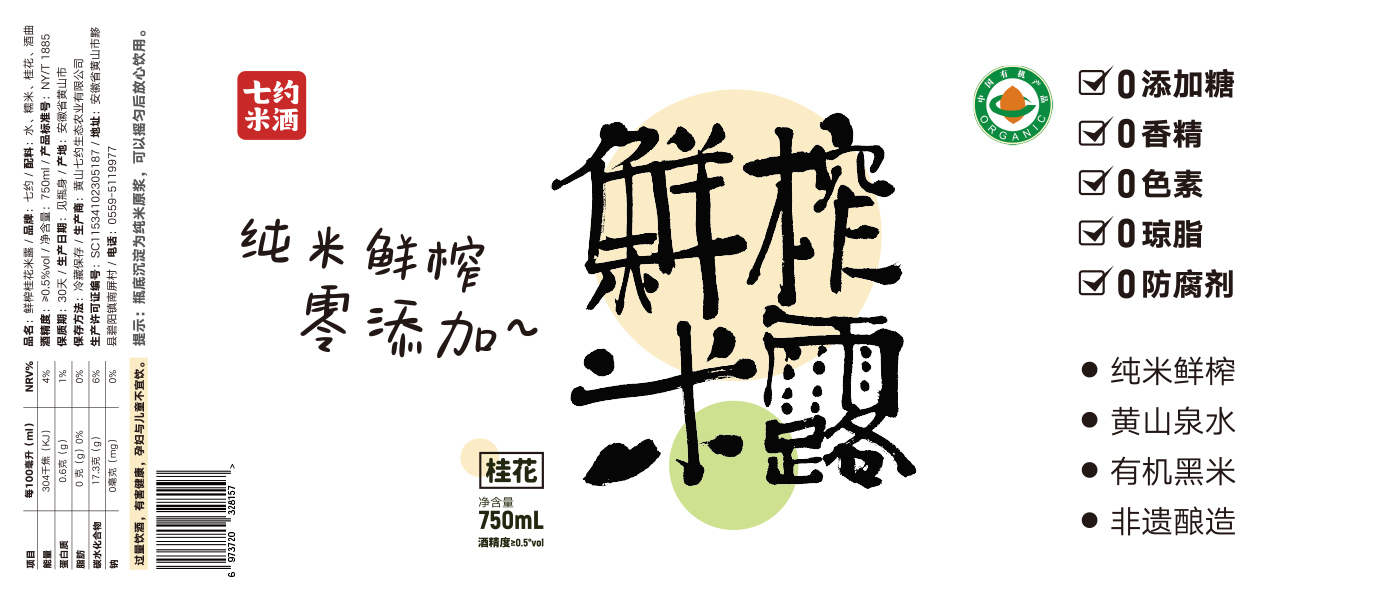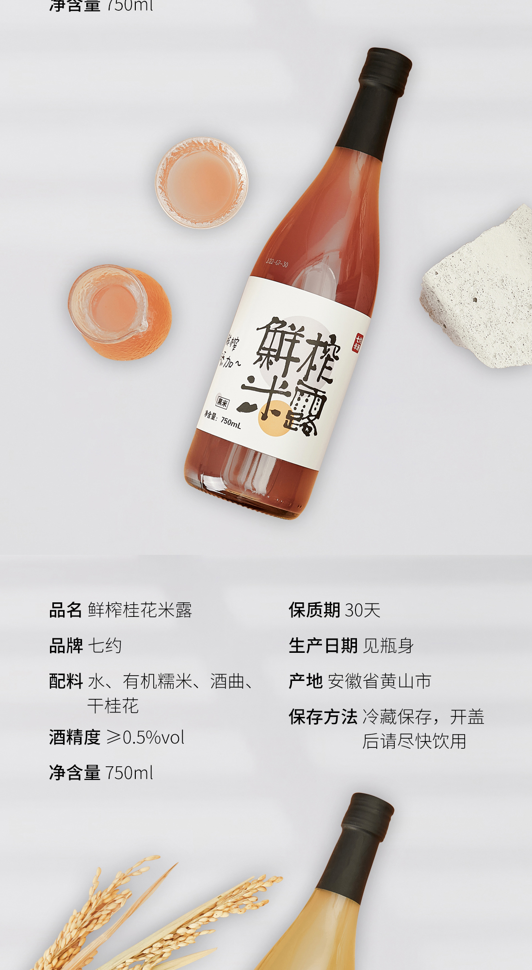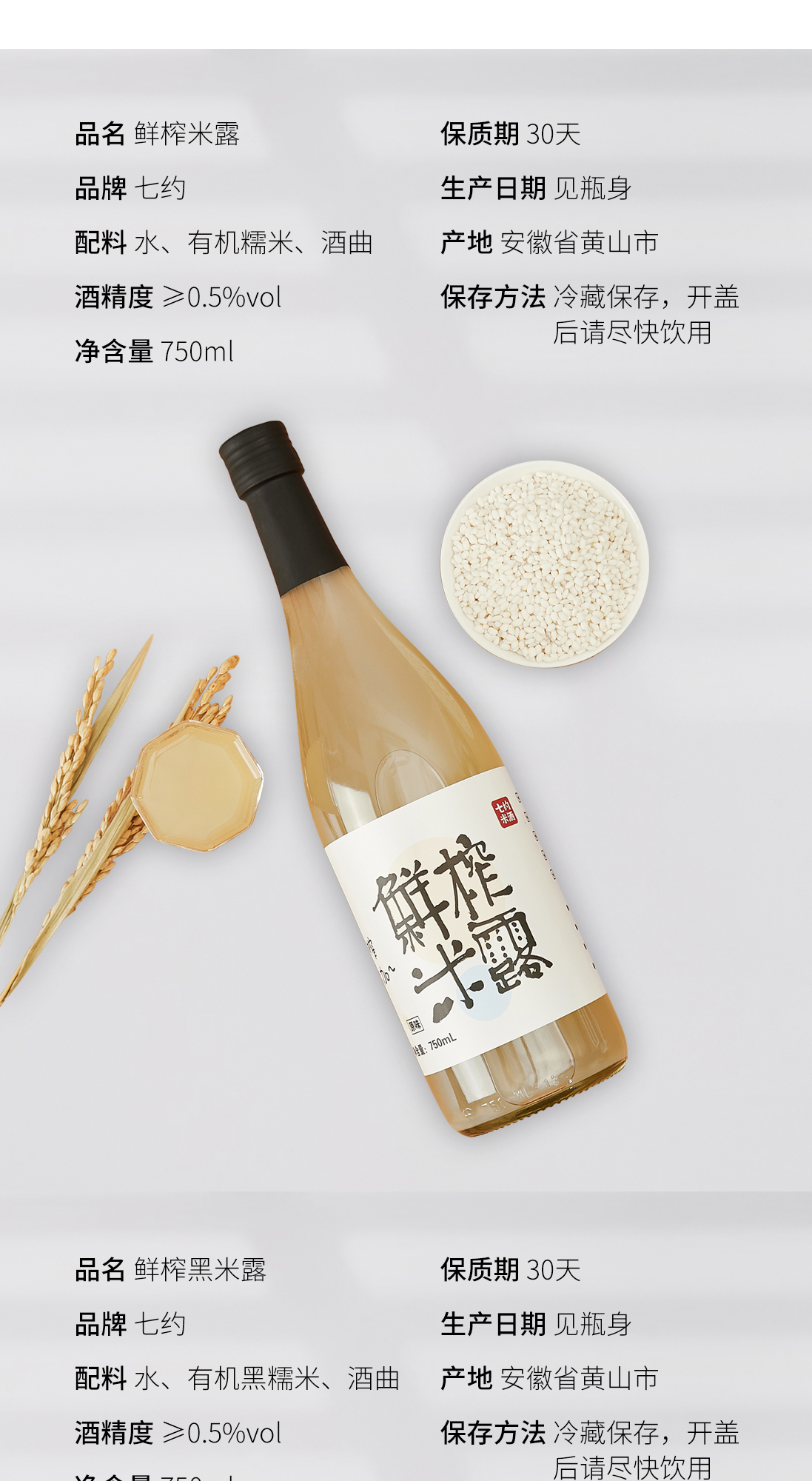 杞冠严选 | 七约有机米酒 鲜榨米露 新米鲜榨0添加 0.5度自然米甜味 750ml 2件起包邮