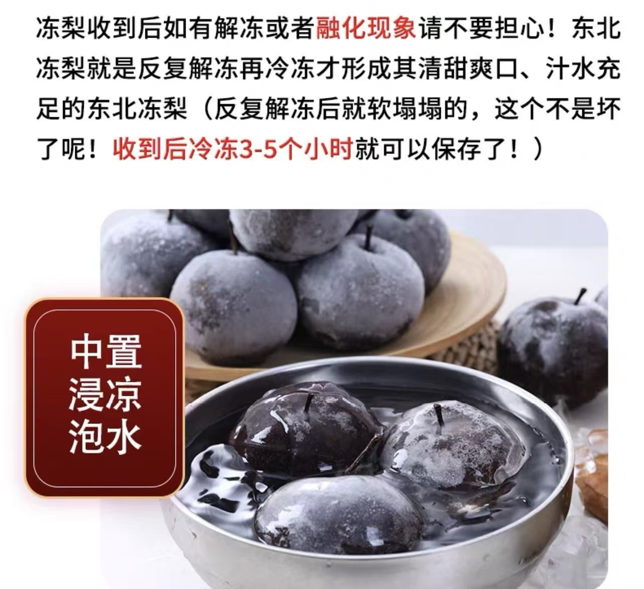 品名:正宗东北冻梨 规格1:5斤中果装(约10~12枚;以重量为准) 规格2:5斤大果装(约7~9枚;以重量为准);拍几份发几个包裹,不一定能同时到达,请耐心等待; 发货地/产地:吉林 包装方式:箱装 物流信息:默认中通快递,不支持指定快递 发货区域:新疆、西藏、海南不发; 物流详情:周六、周日及节假日除外,正常48小时内发货,到货时间约为2~5天,请耐心等待 售后说明:收到货后有质量问题,在24小时内都可以拍照(坏品+快递单面箱子一起拍)上传,申请按坏品比例理赔或联系客服,生鲜性质特殊,因地址错误,手机号联系不上,未及时签收,拒收等造成的损失无法售后,请理解; |