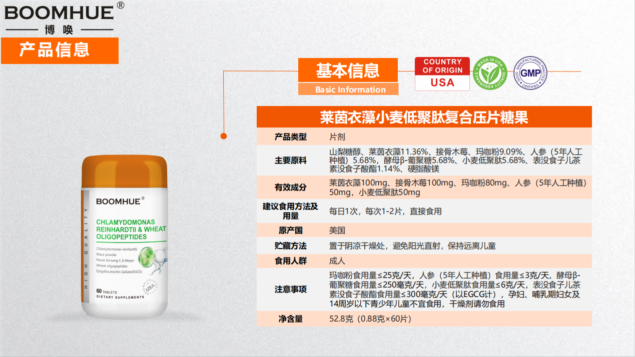 【有效期2026年3月2日】BOOMHUE莱茵衣藻小麦低聚肽复合压片糖果