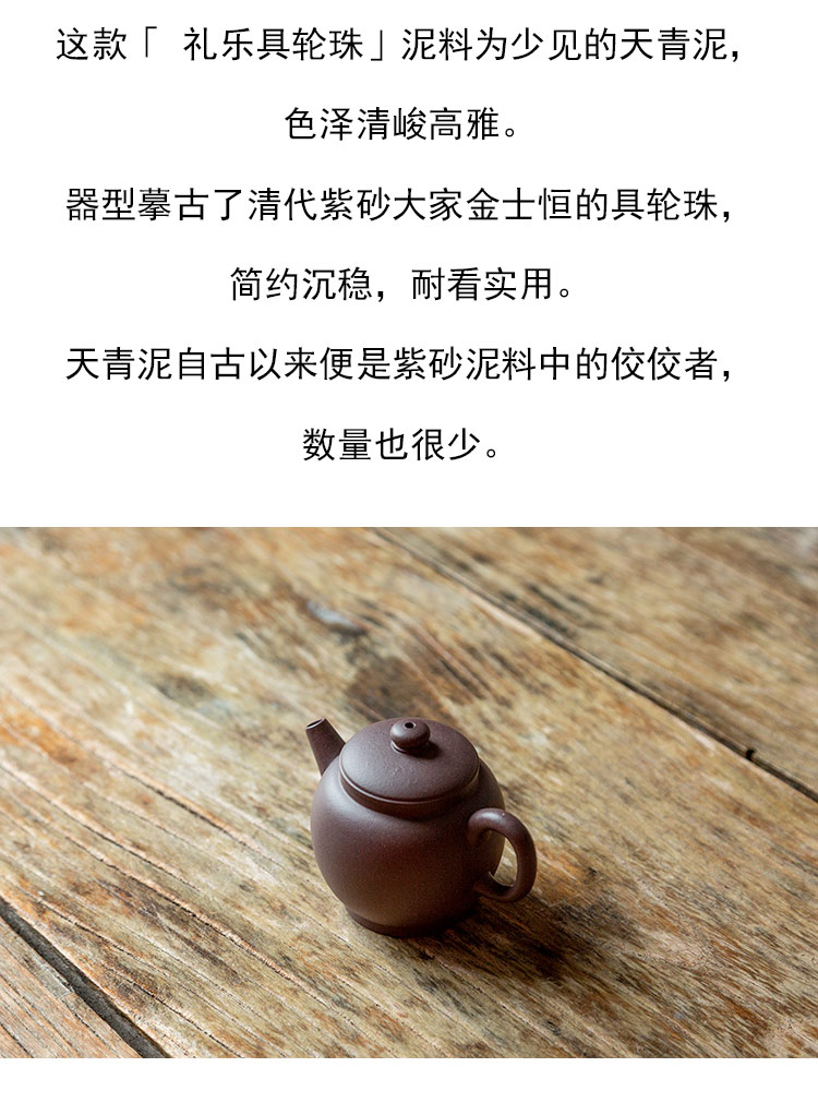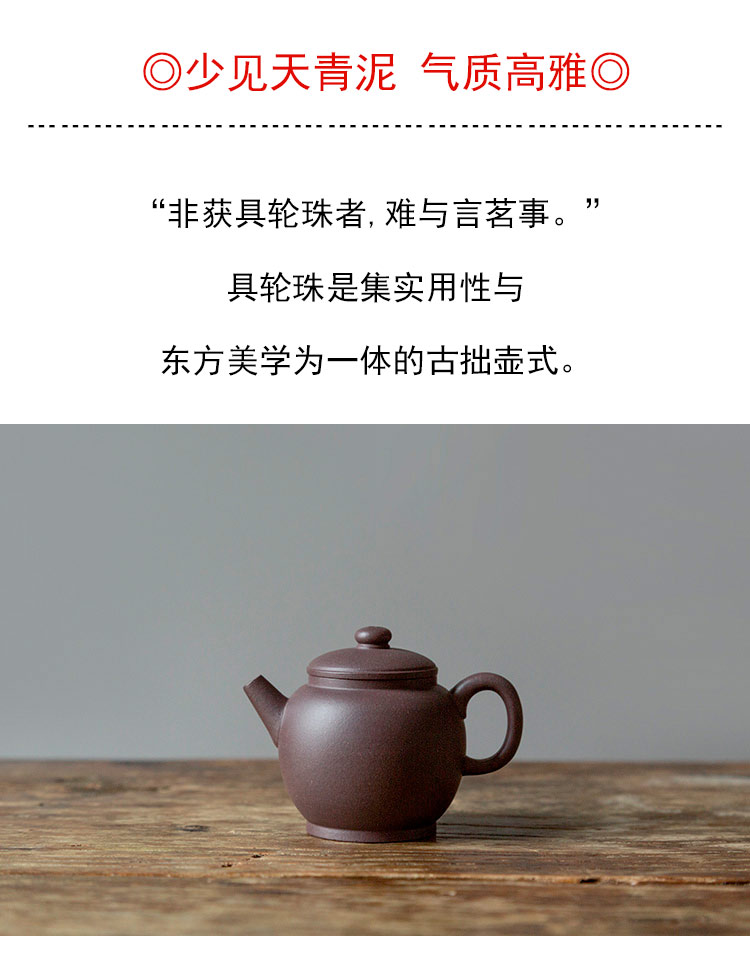 茶香记 天青泥小品壶 礼乐具轮珠 紫砂壶 摹古经典 茶壶 简约沉稳
