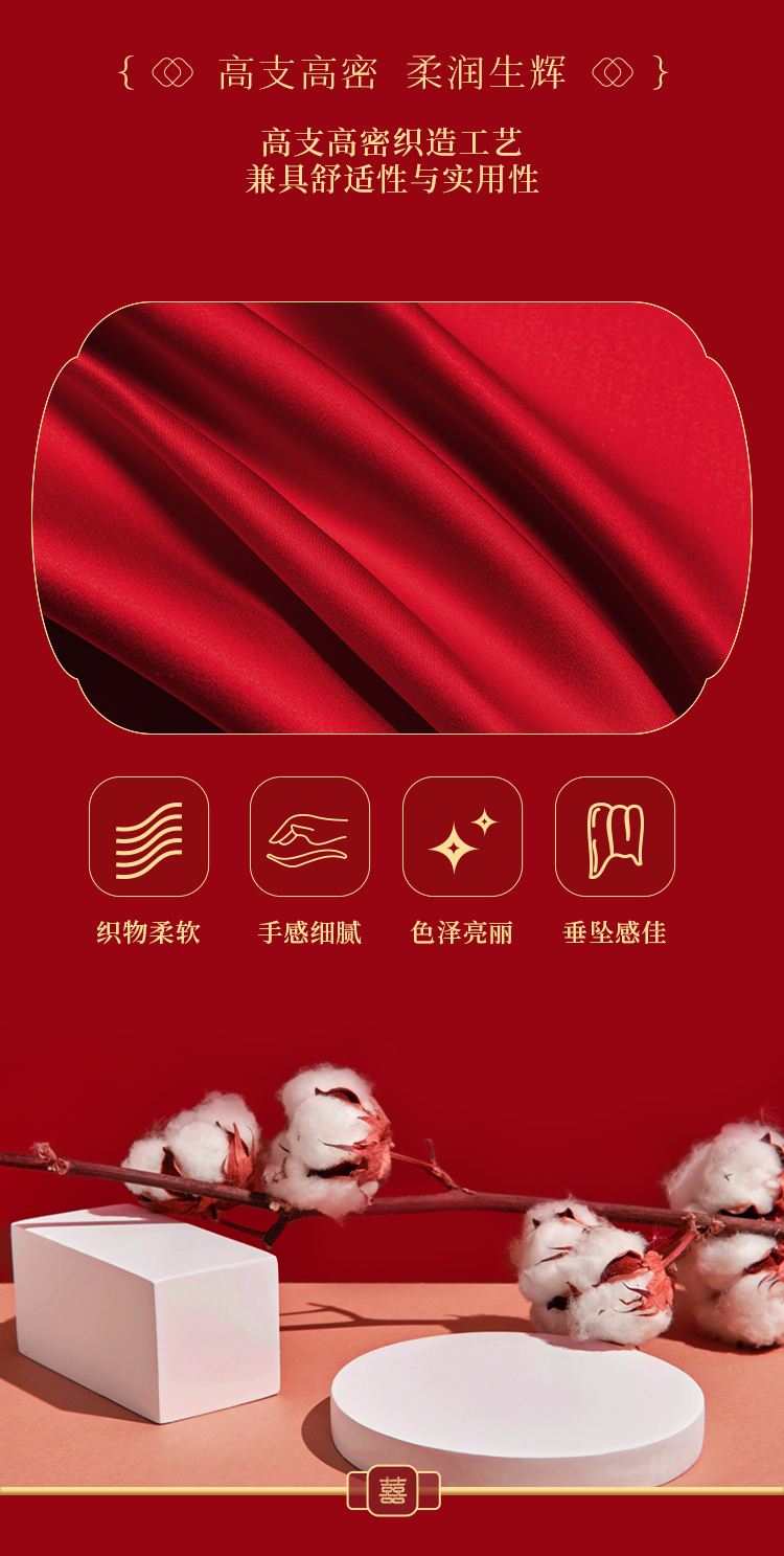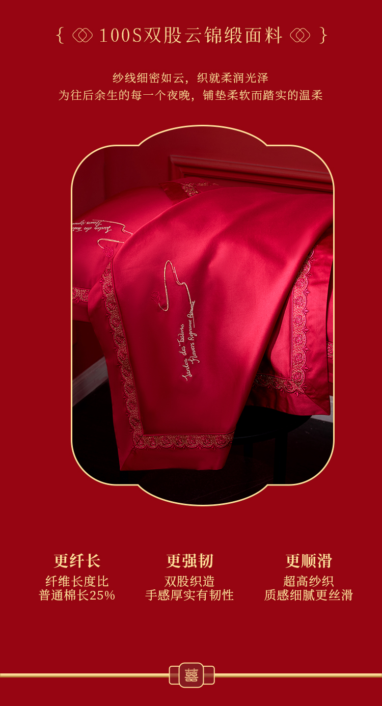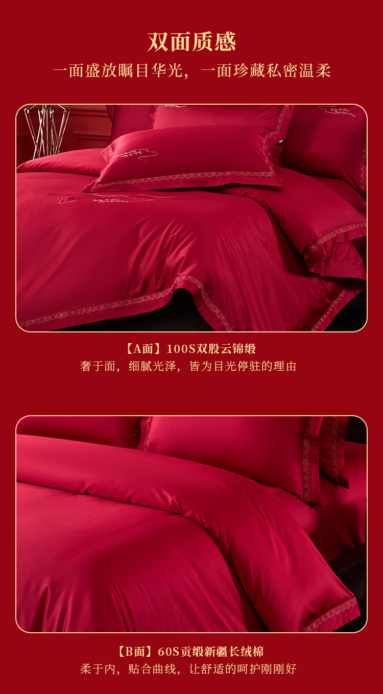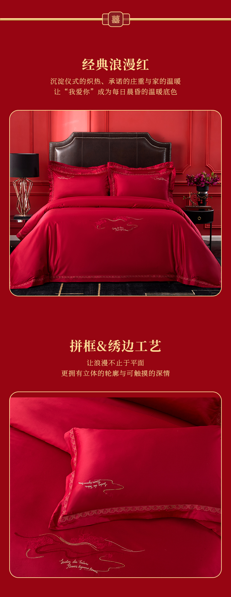 多喜爱 喜玫瑰100S双股云锦缎四件套 Marry me【玫瑰花刺绣】【拼框工艺】【红色礼盒包装】更强韧更顺滑 手感细腻 色泽亮丽