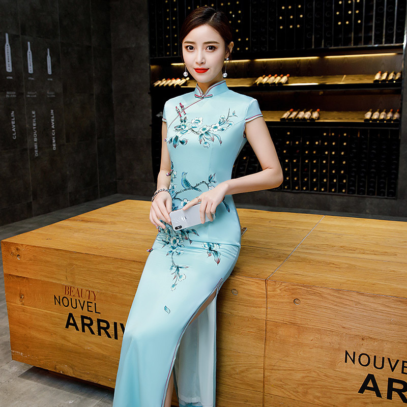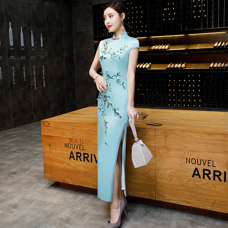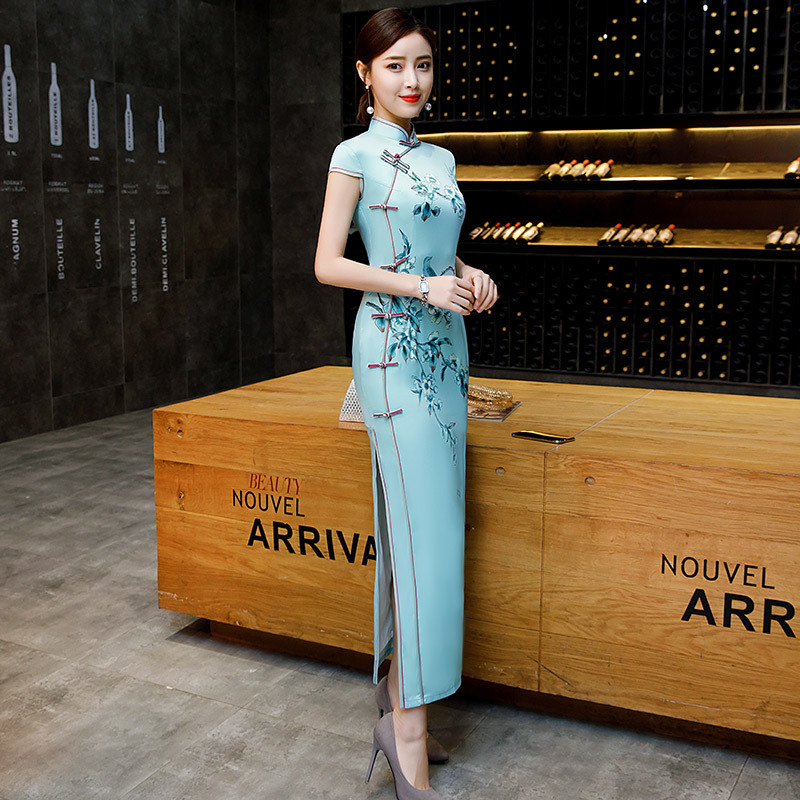 SC3352定位花国风中式长款旗袍改良年轻款2025新款女复古日常可穿走秀款