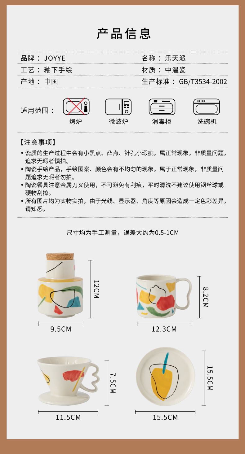 JOYYE 乐天派咖啡杯套装 个性浮雕 多人套装
