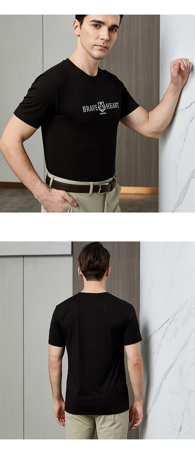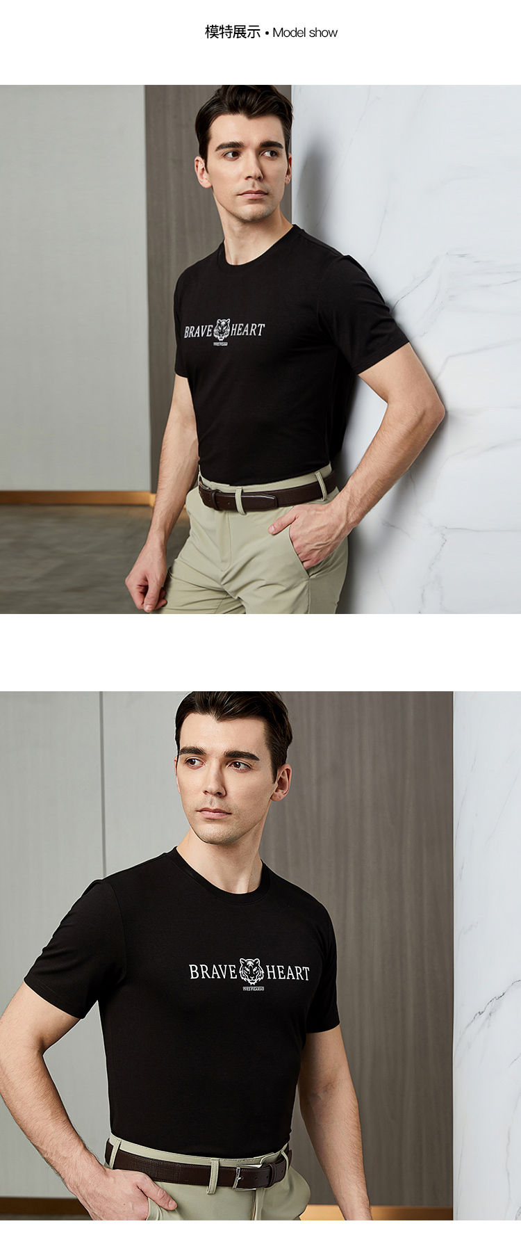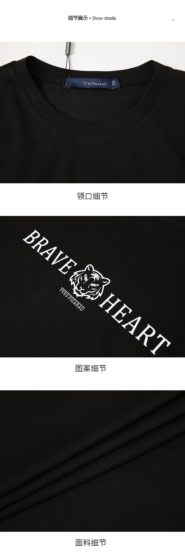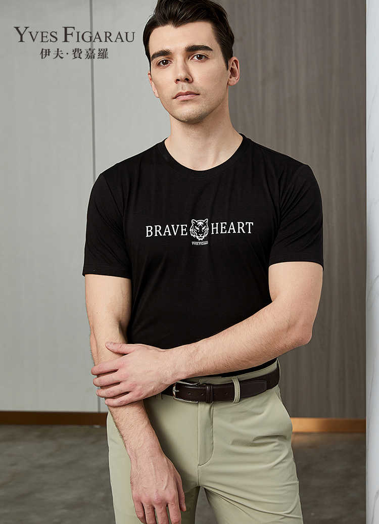 YvesFigarau伊夫·费嘉罗新款夏季男士简约印花舒适透气休闲圆领短袖T恤936857
