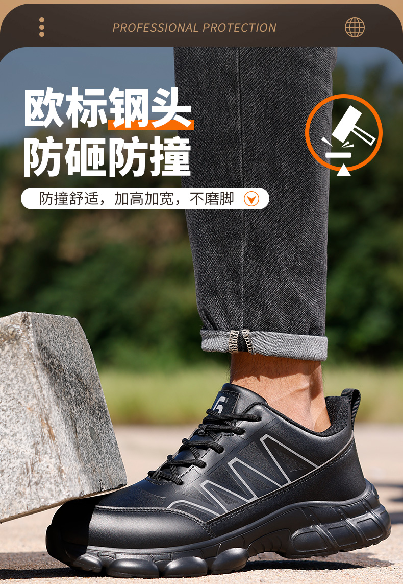 劳保鞋男防砸防刺橡塑底四季款轻巧防水钢包头安全鞋