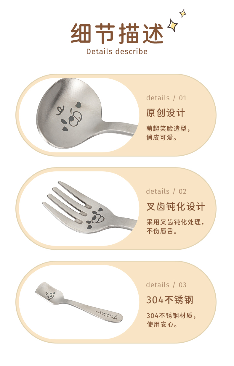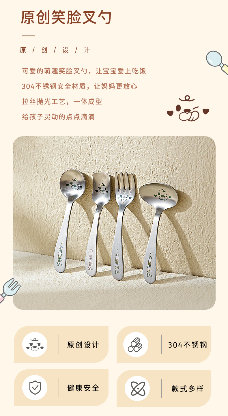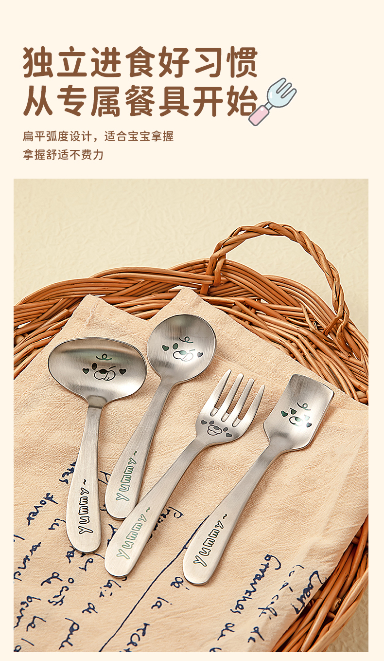 摩登主妇304不锈钢勺子家用高档精致儿童叉子食品级个人专用汤勺