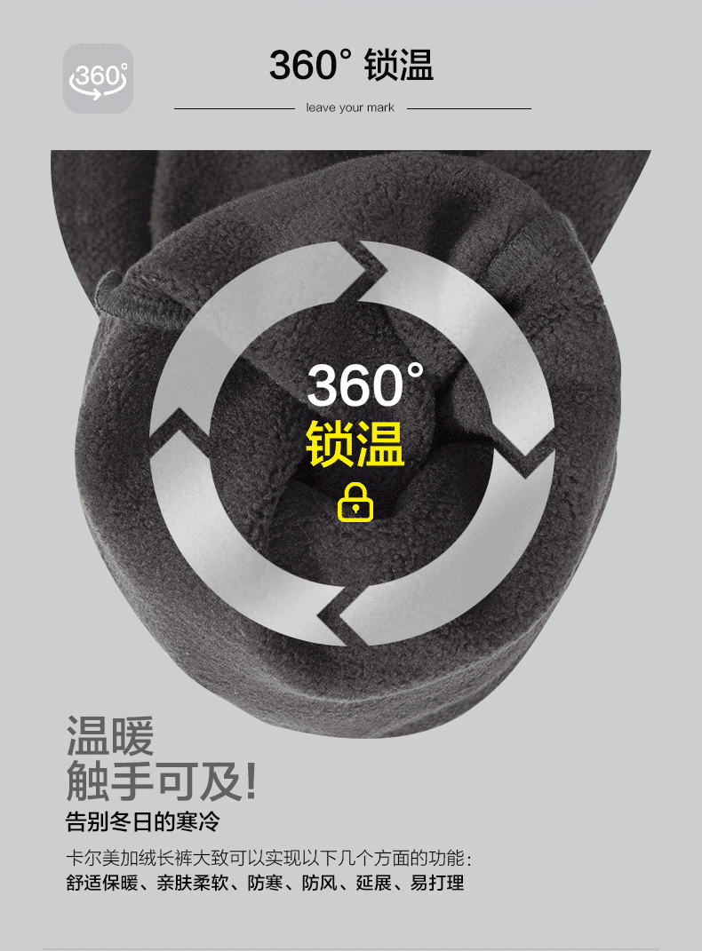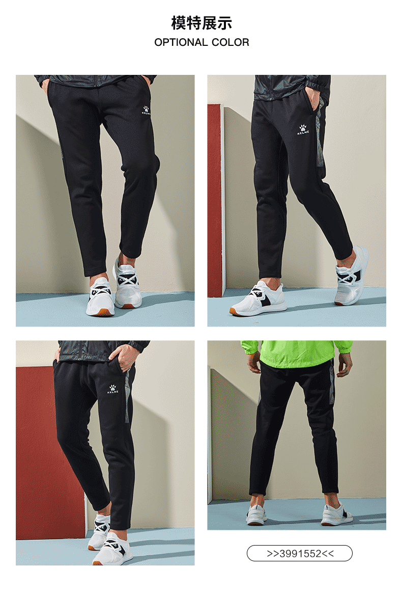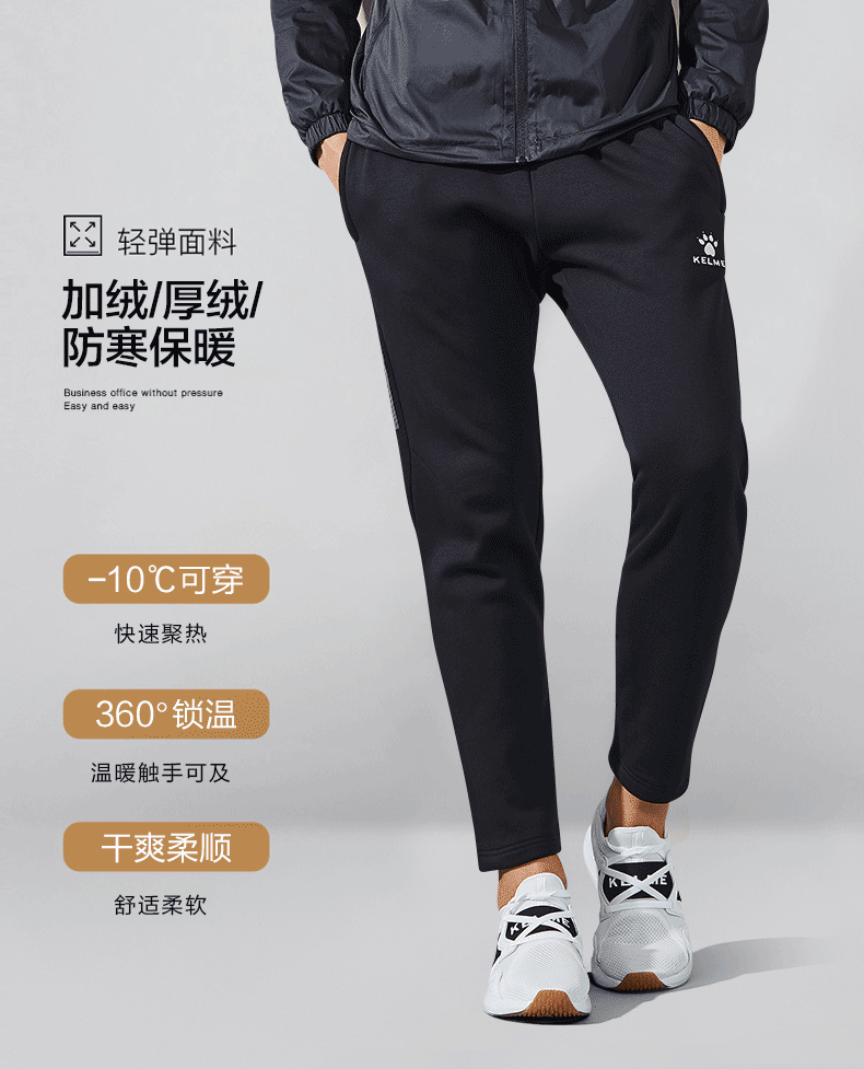 卡尔美男女春秋冬季运动长裤加绒加厚舒适保暖小脚裤
