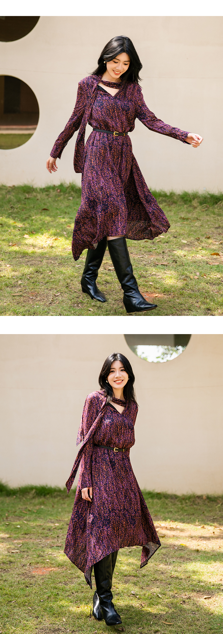 午夜巴黎浪漫飘带手帕正反两穿连衣裙FCE4DRS009