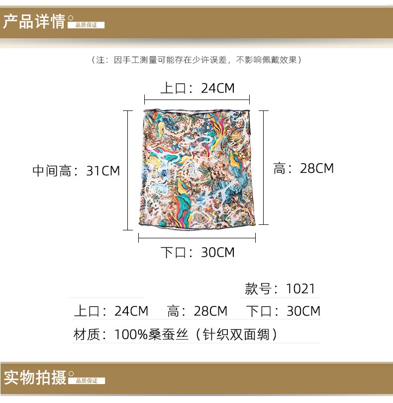 纯新真丝印花蒙面巾,100%桑蚕丝针织双面绸挂耳围脖WY-1021