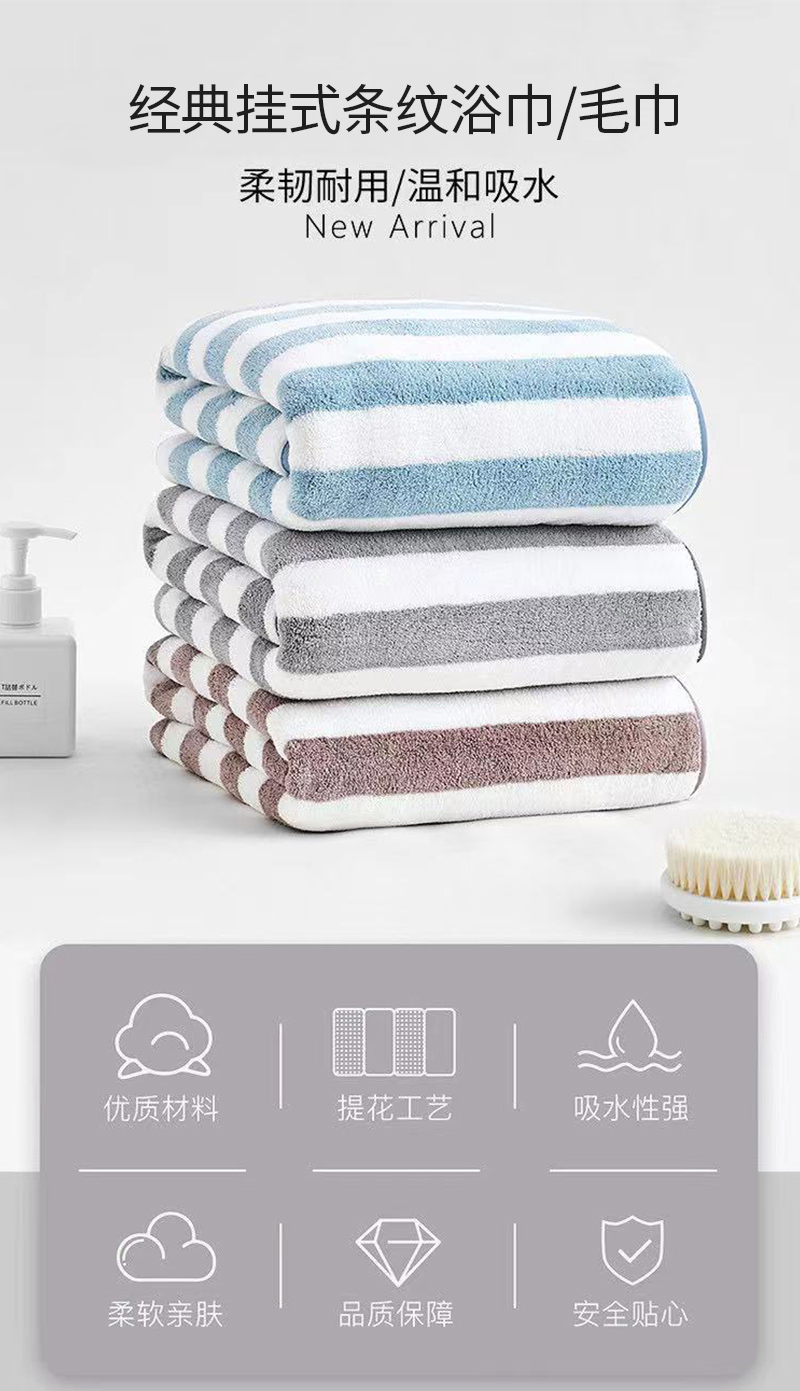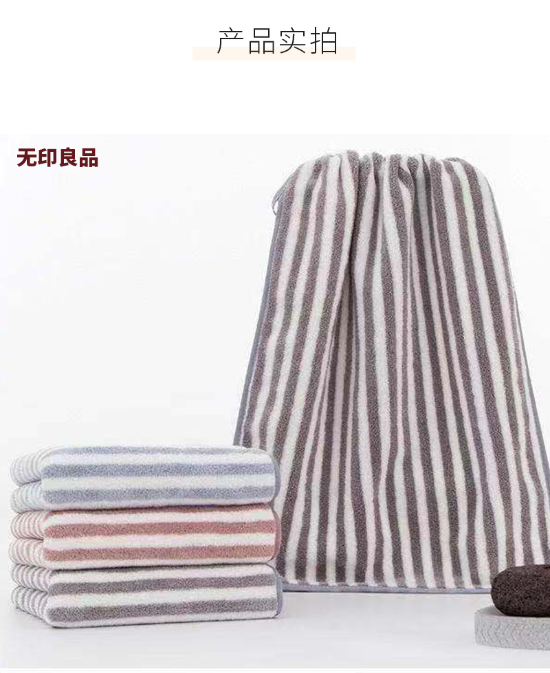 无印良品毛浴巾组合套装经典挂式条纹浴巾/毛巾柔韧耐用温和吸水柔软亲肤