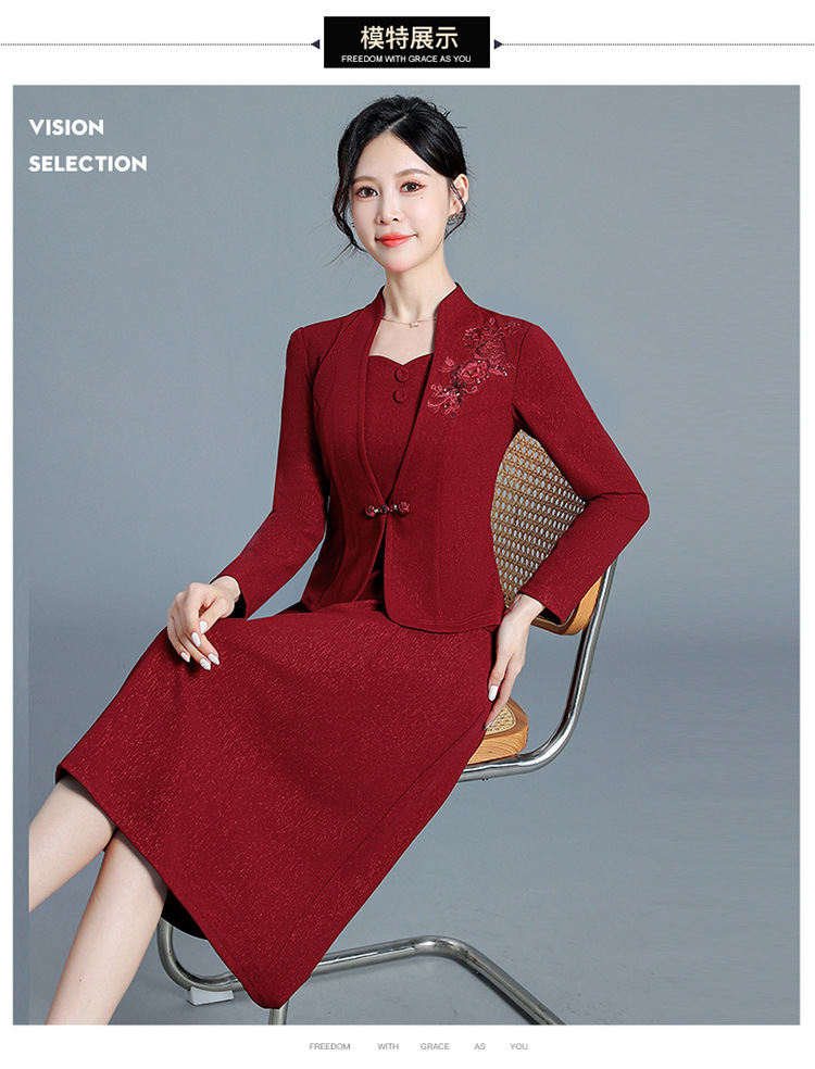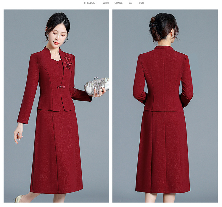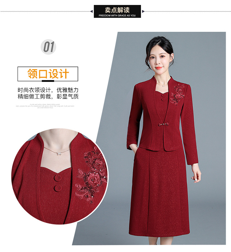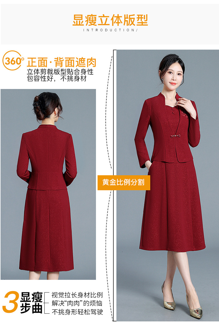 QYM H3371-Y连衣裙假两件裙妈妈装中长款礼服裙 商品图4