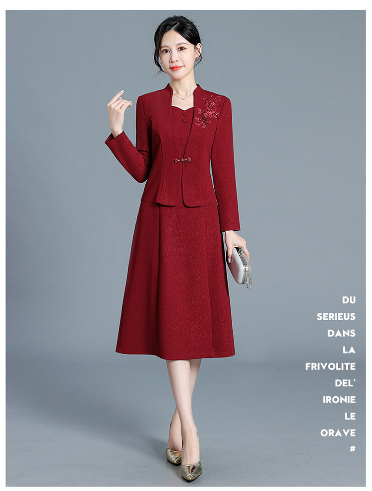 QYM H3371-Y连衣裙假两件裙妈妈装中长款礼服裙 商品图1