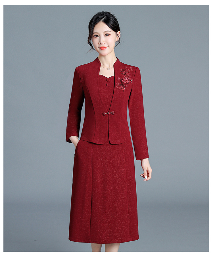 QYM H3371-Y连衣裙假两件裙妈妈装中长款礼服裙 商品图0