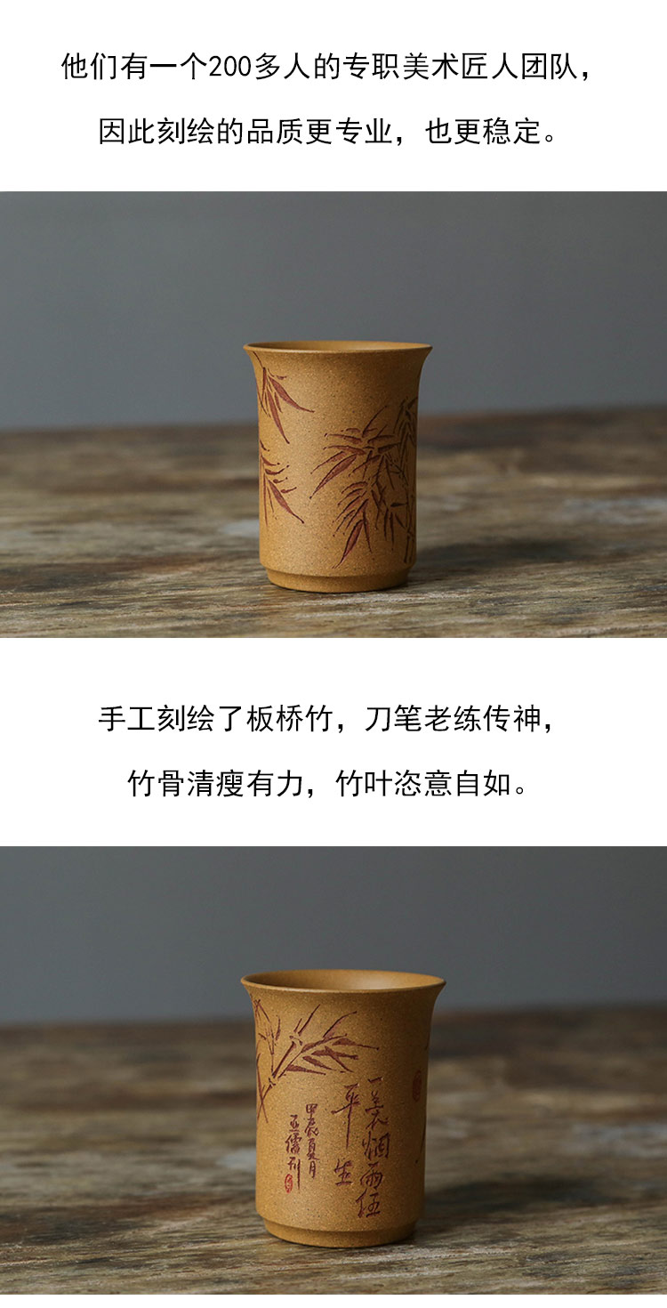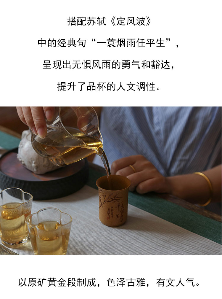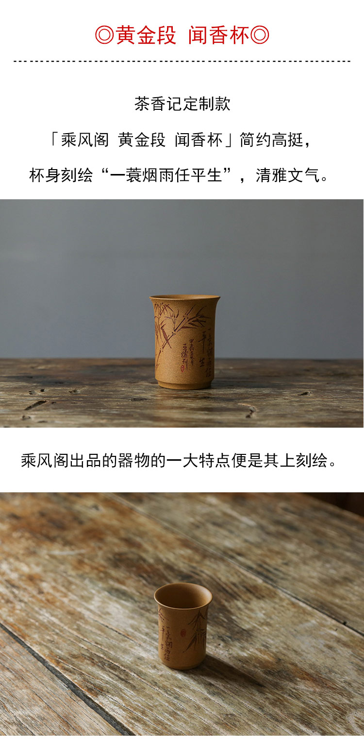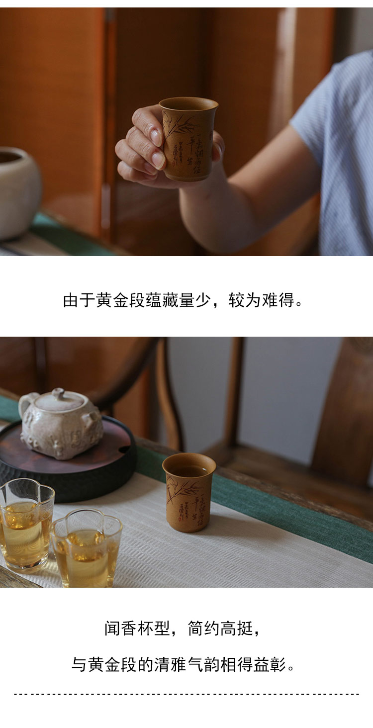 茶香记 紫砂杯黄金段一蓑烟雨任平生闻香杯50ml手工刻绘茶杯茶具