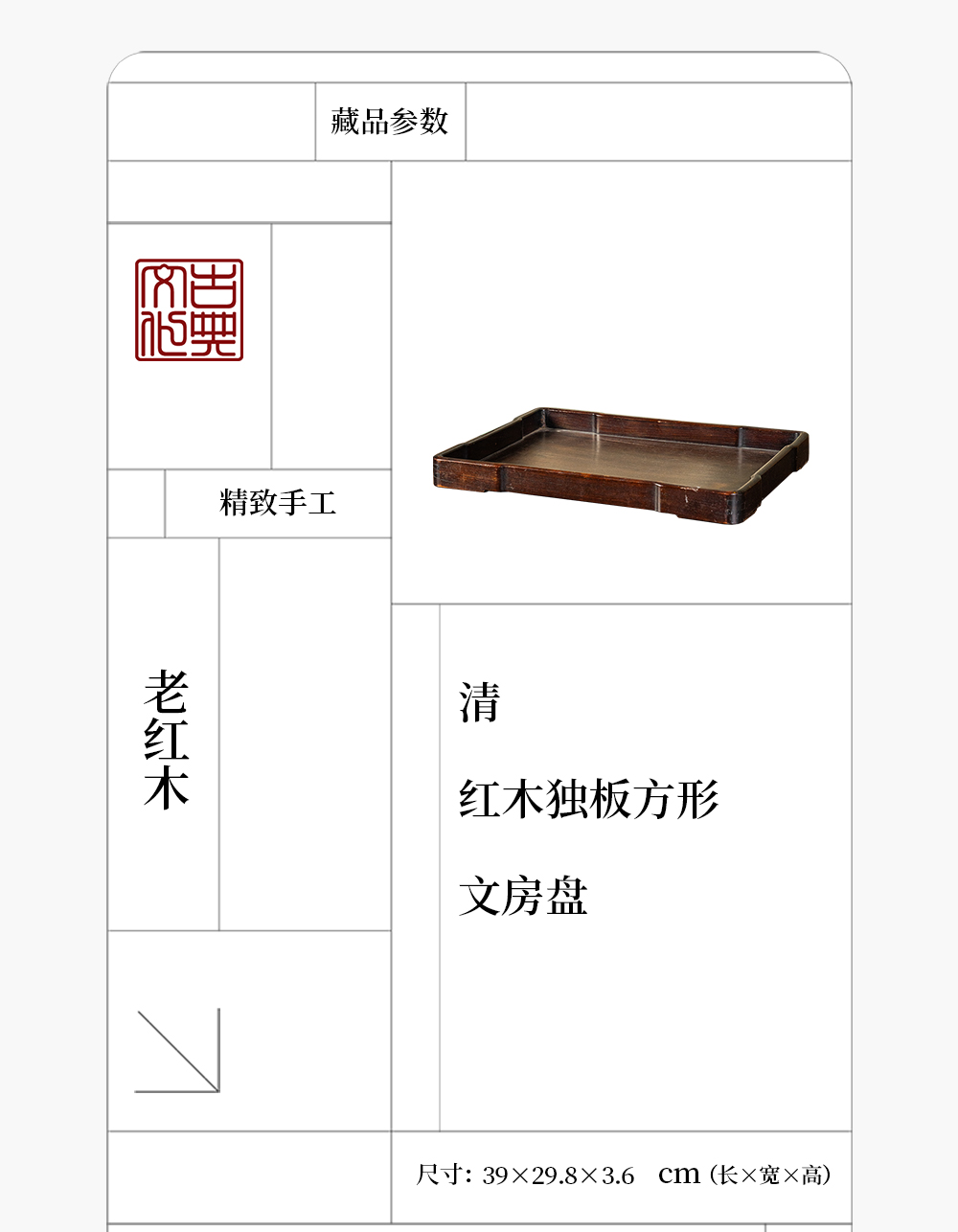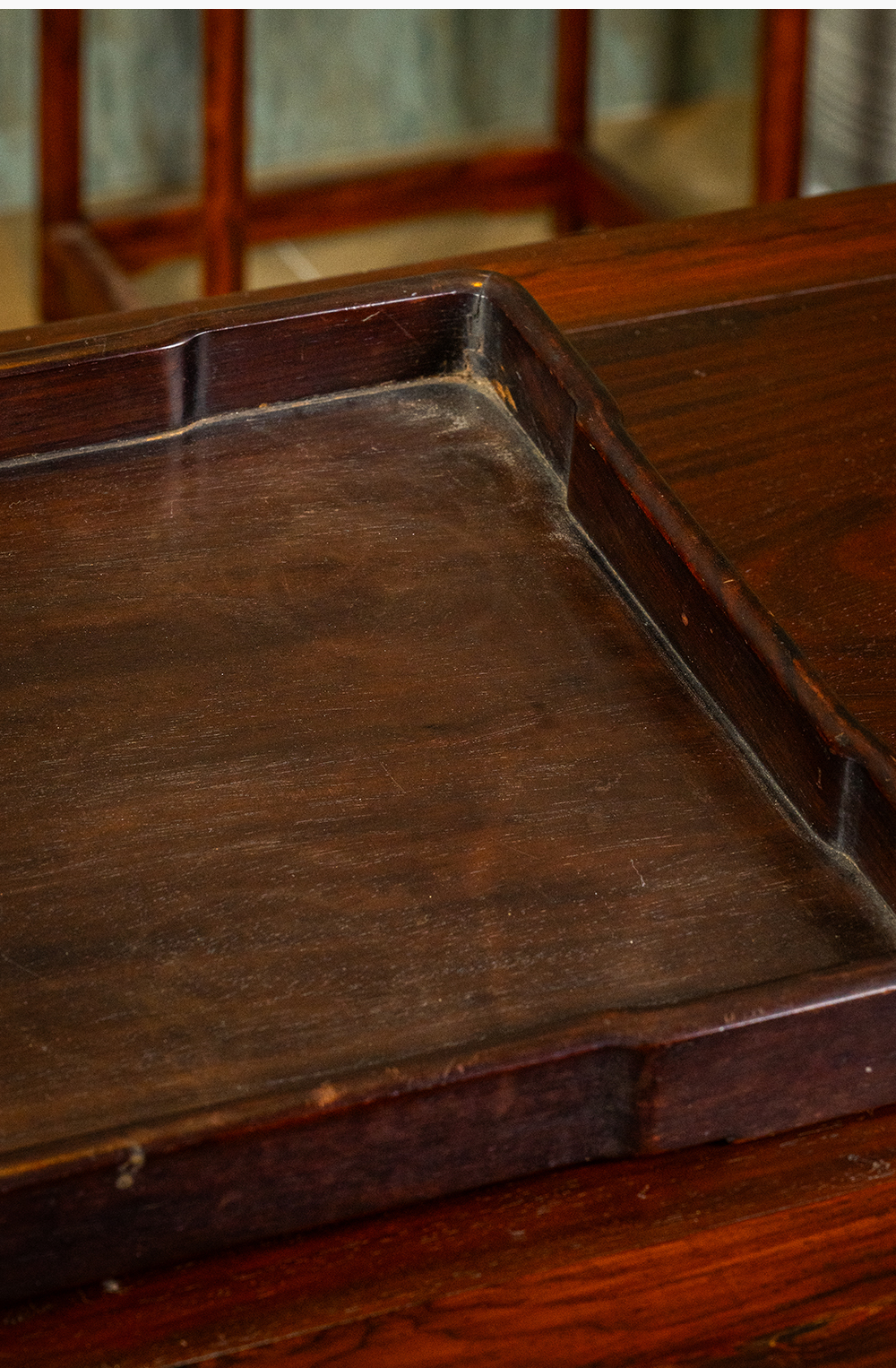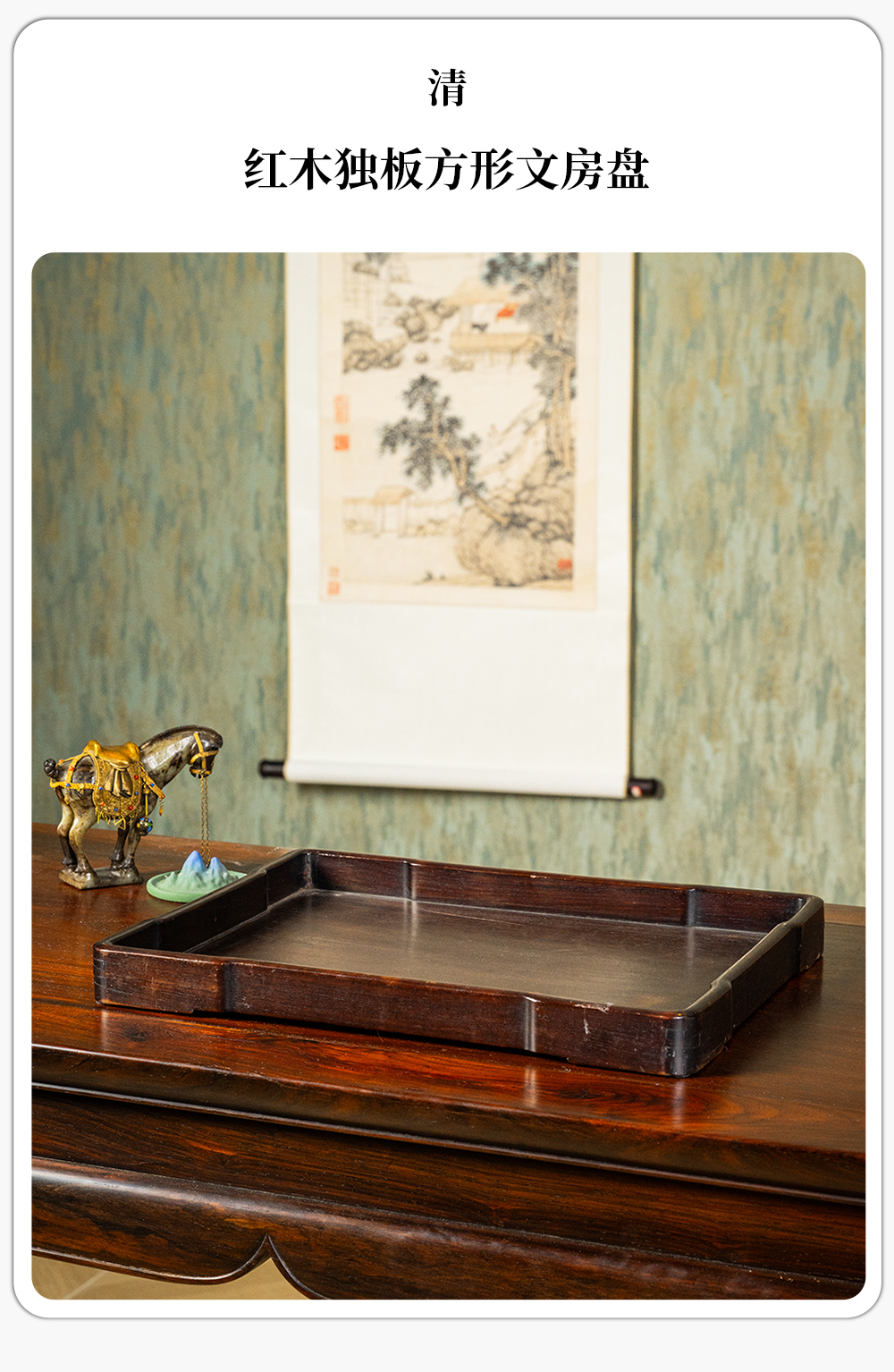 清 红木独板方形文房盘