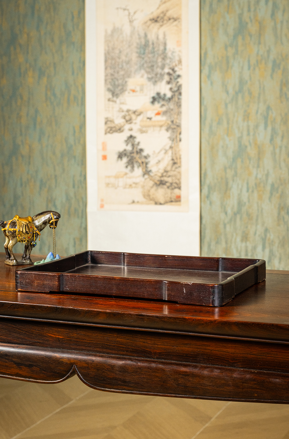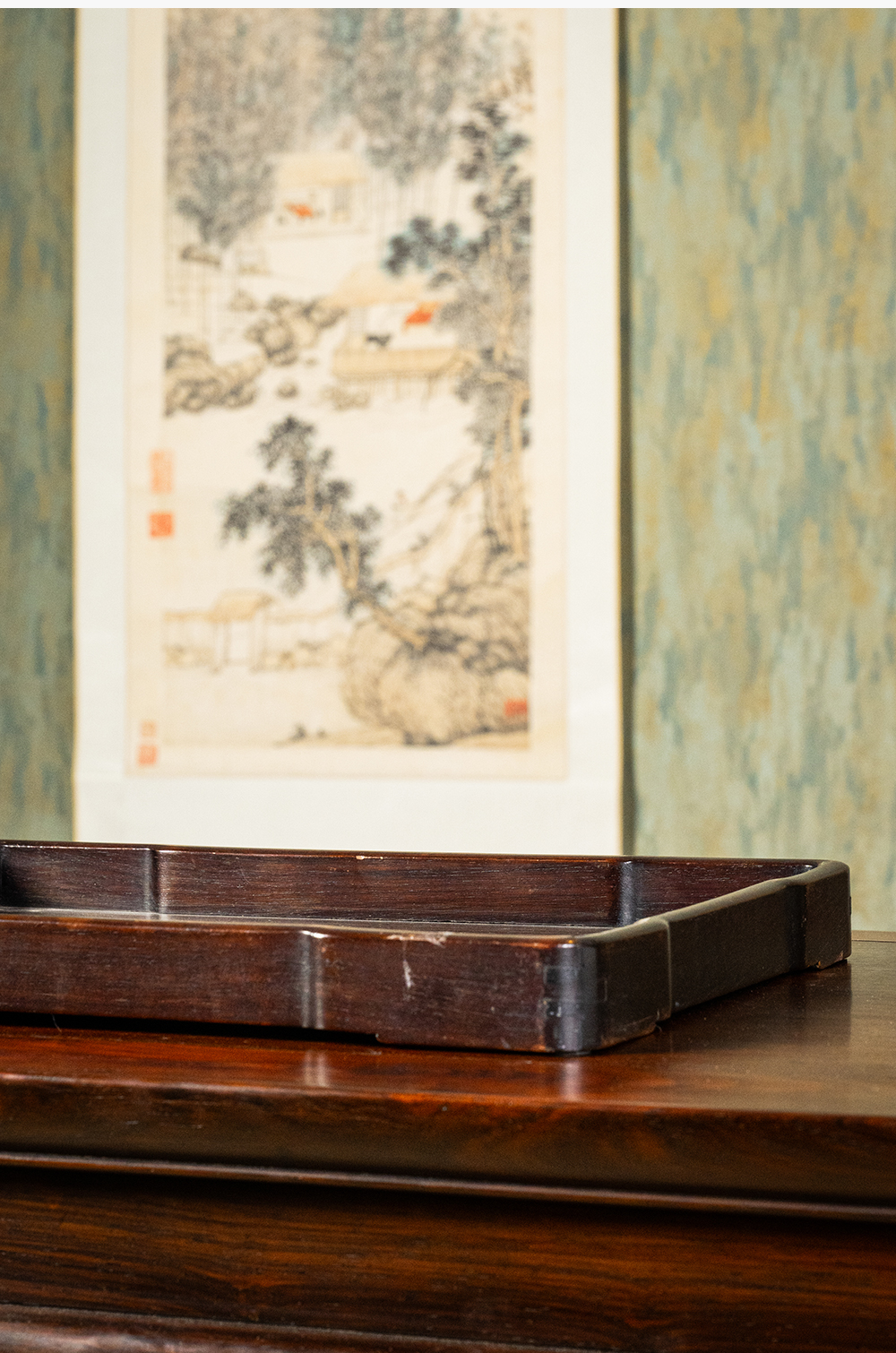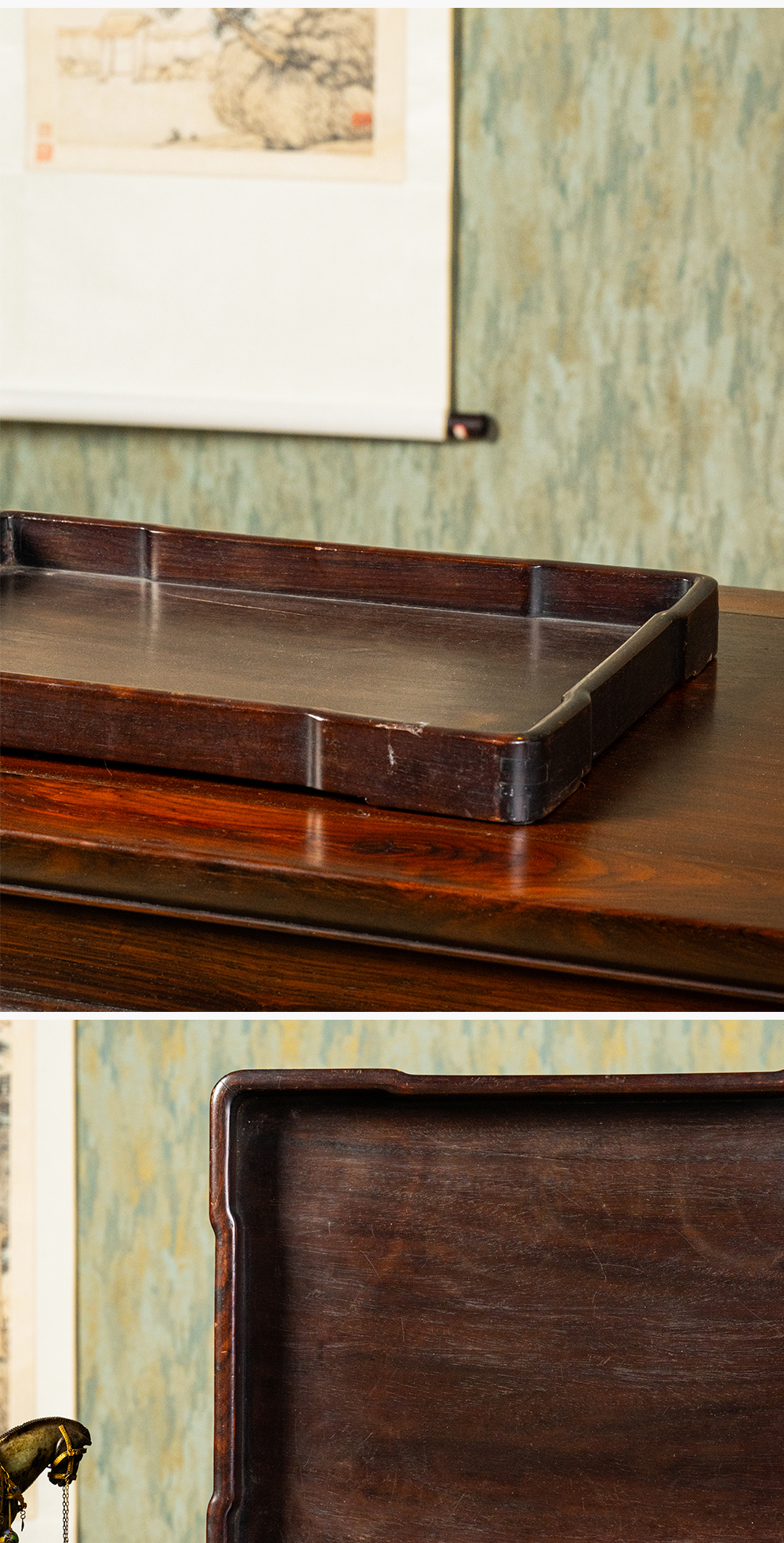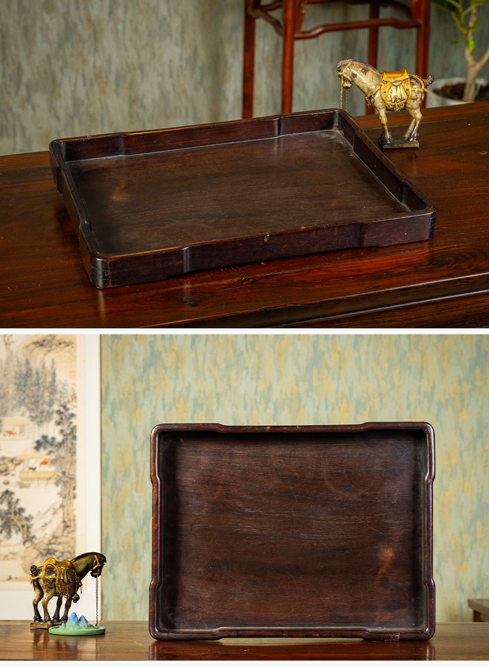 清 红木独板方形文房盘