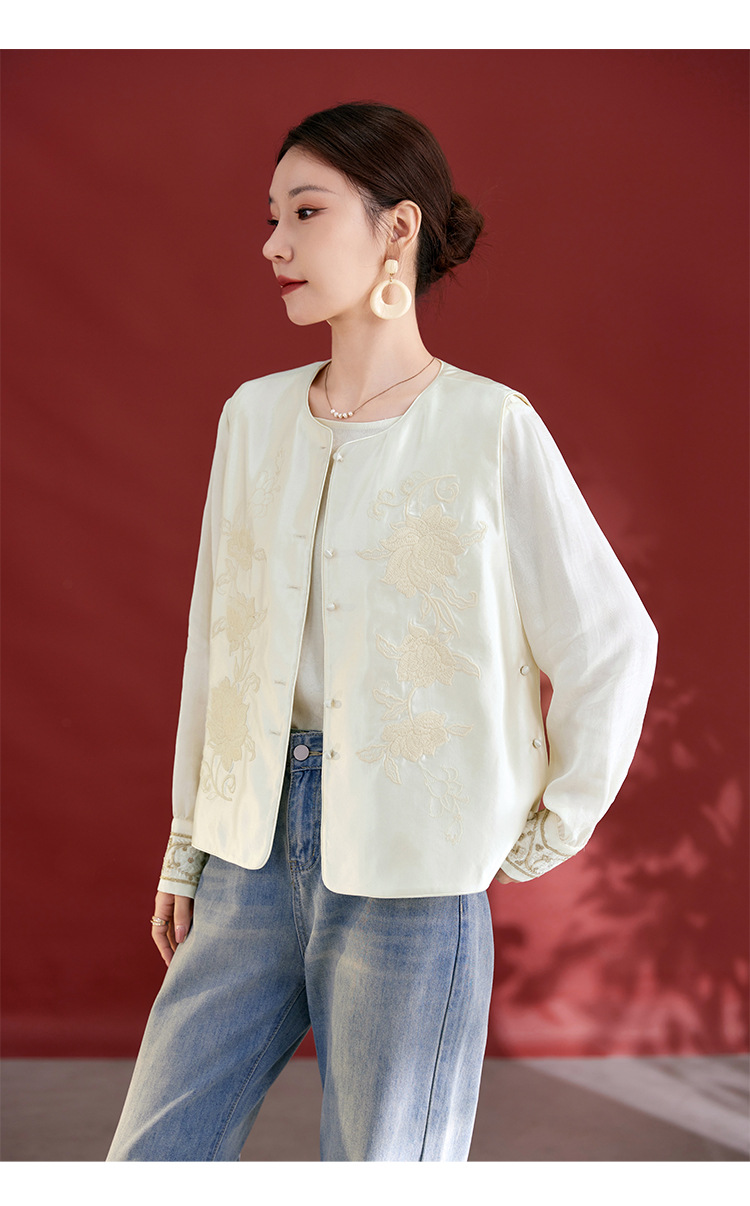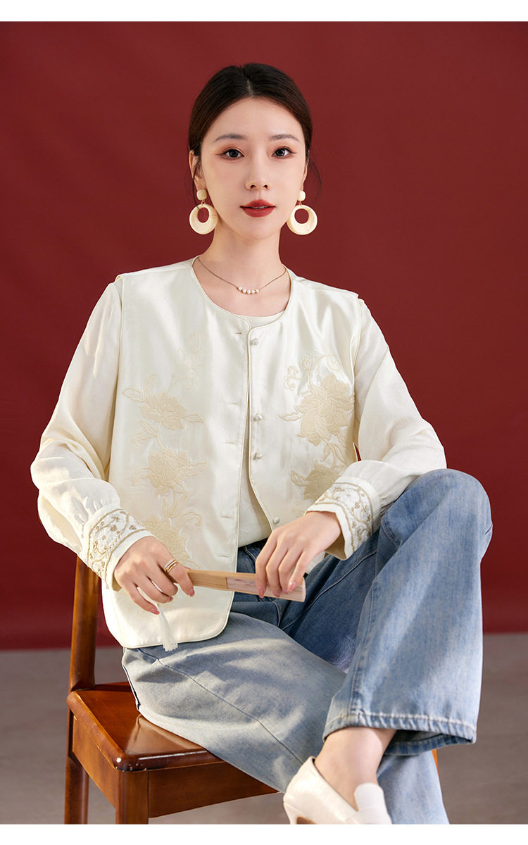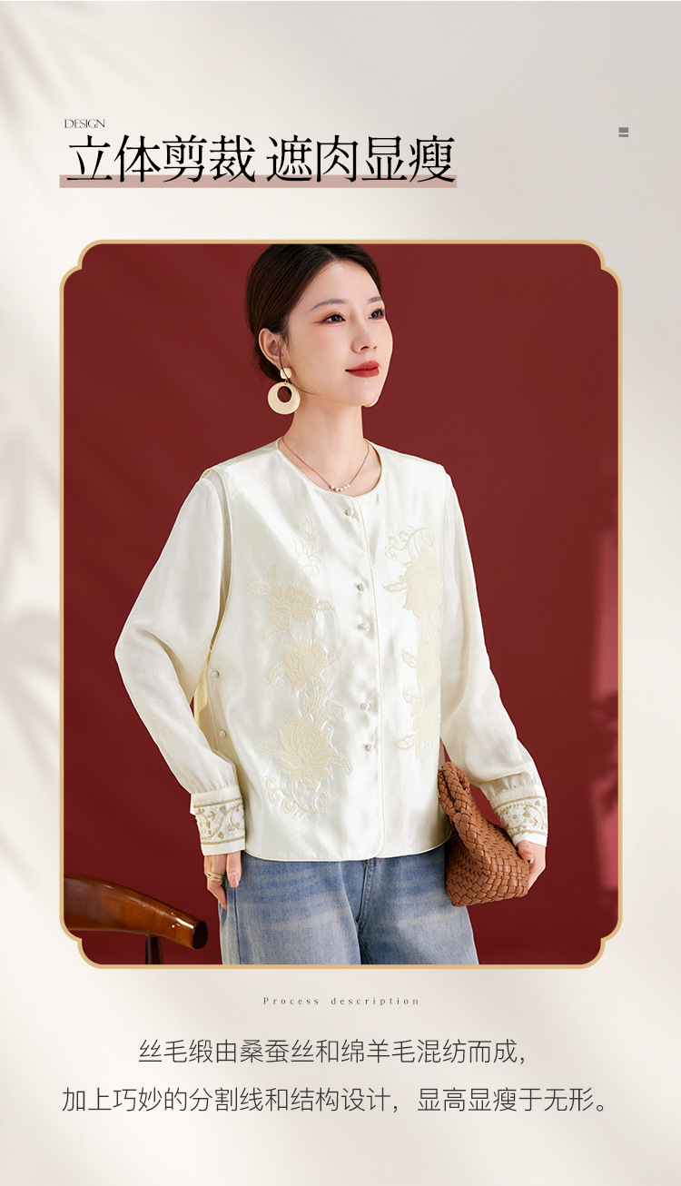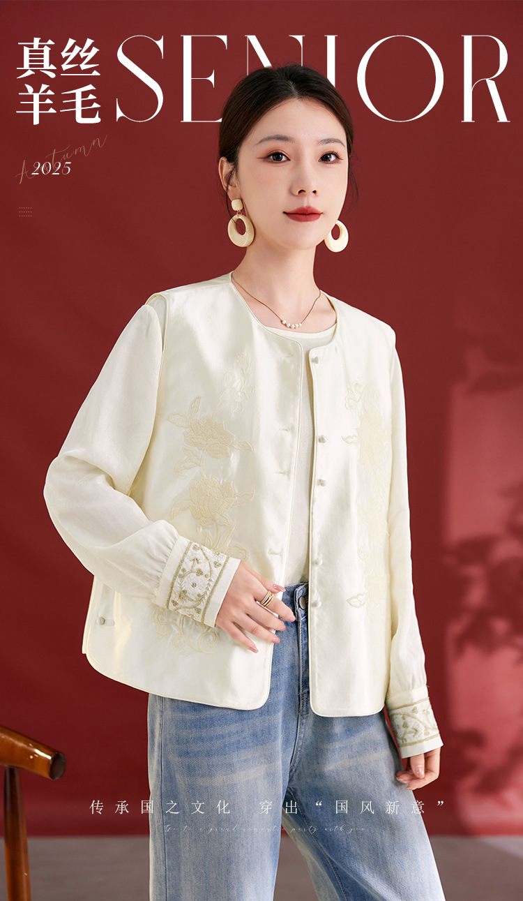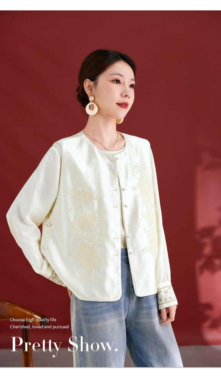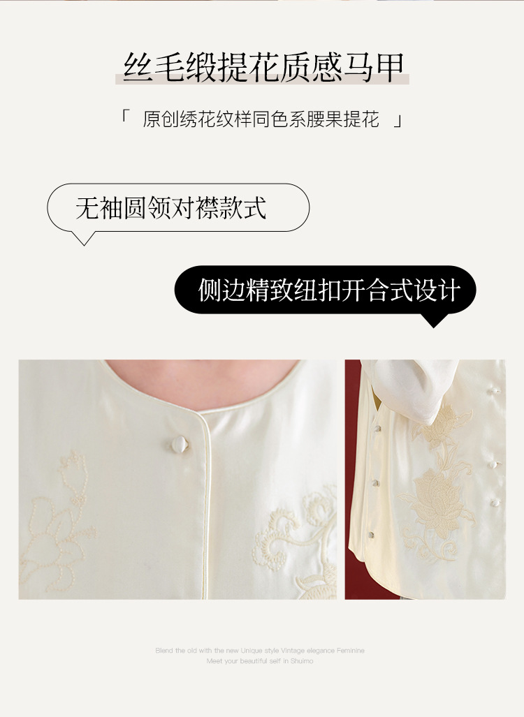 QS新中式国风丝毛缎真丝提花马甲女2025秋新款重工刺绣高端气质1769