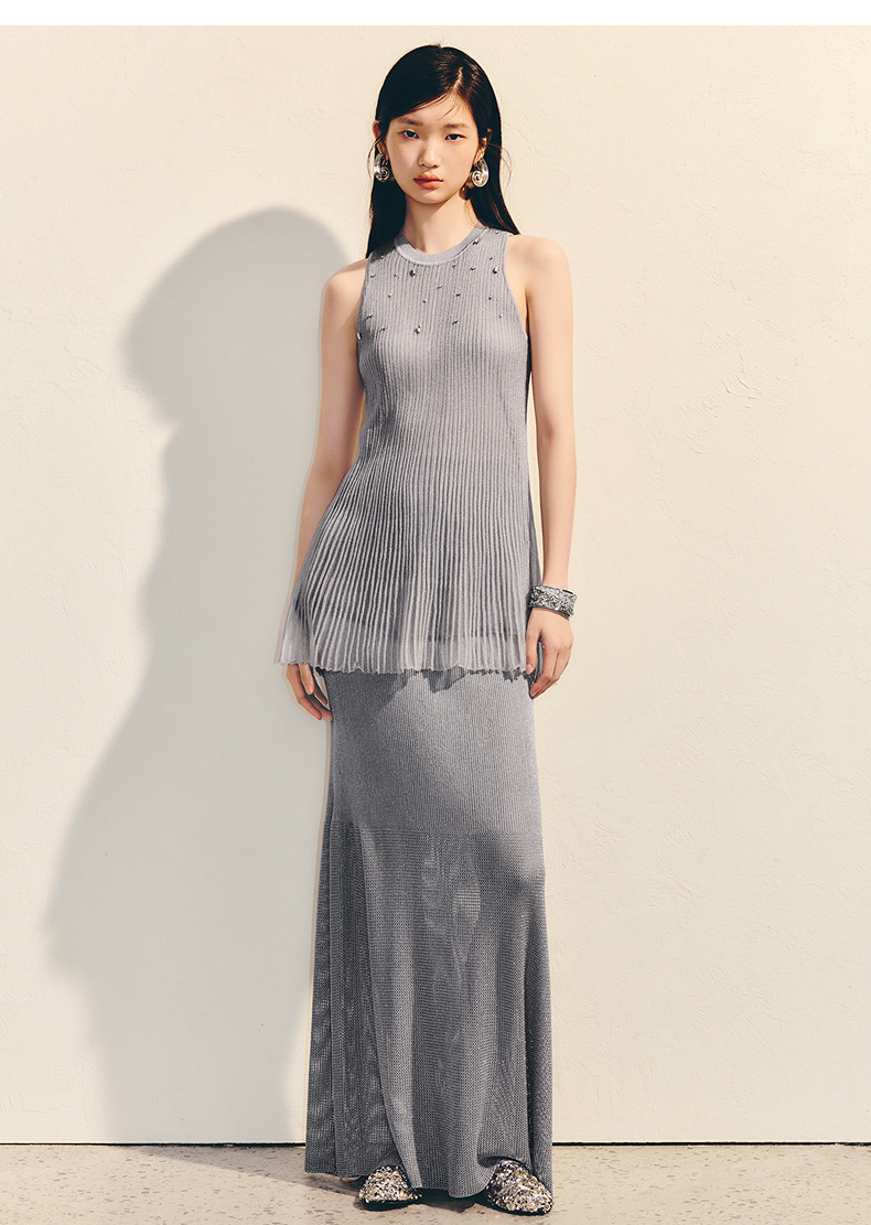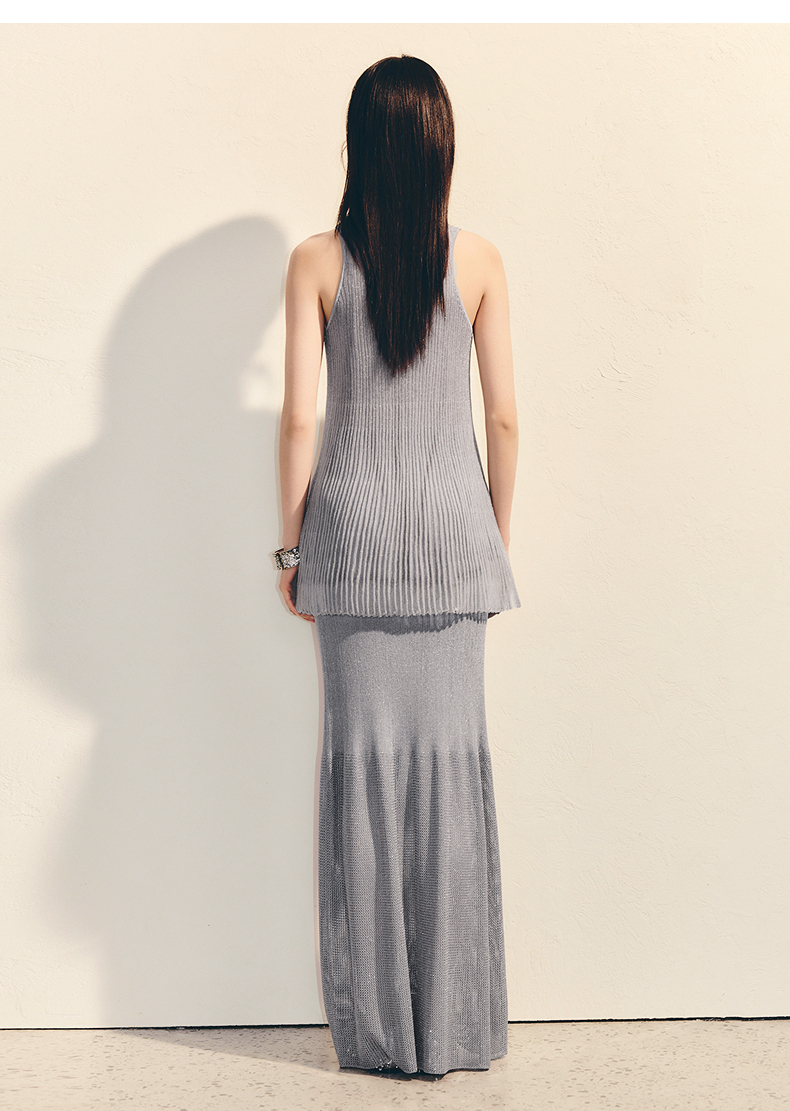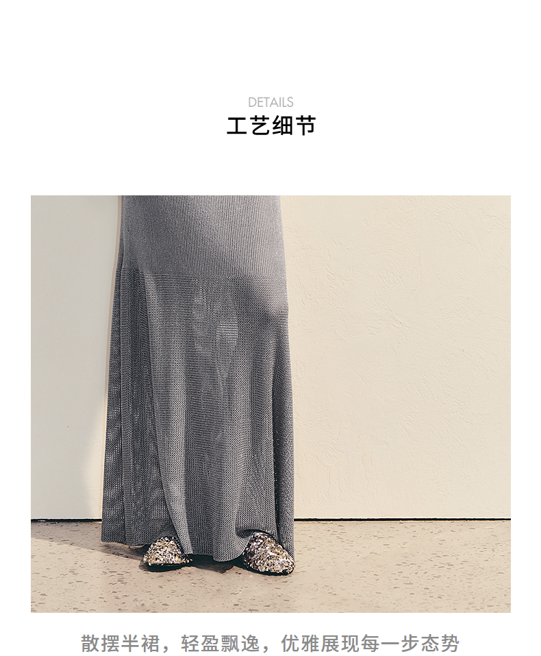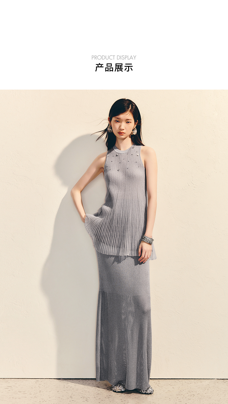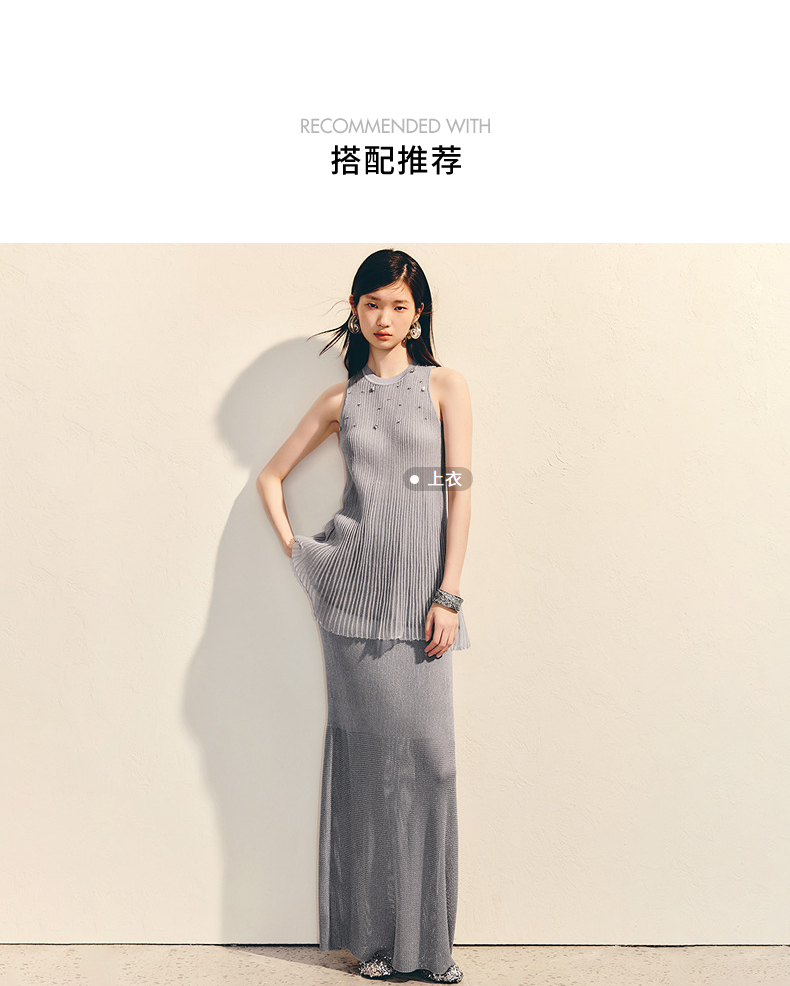 【商场同款】MAXRIENY肌理感半身裙h型散摆长裙中长款百褶高腰(货号:MC86SK036)