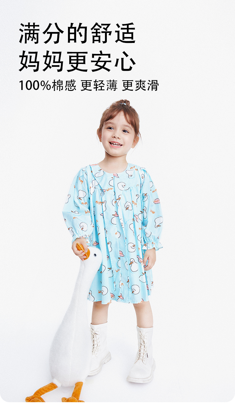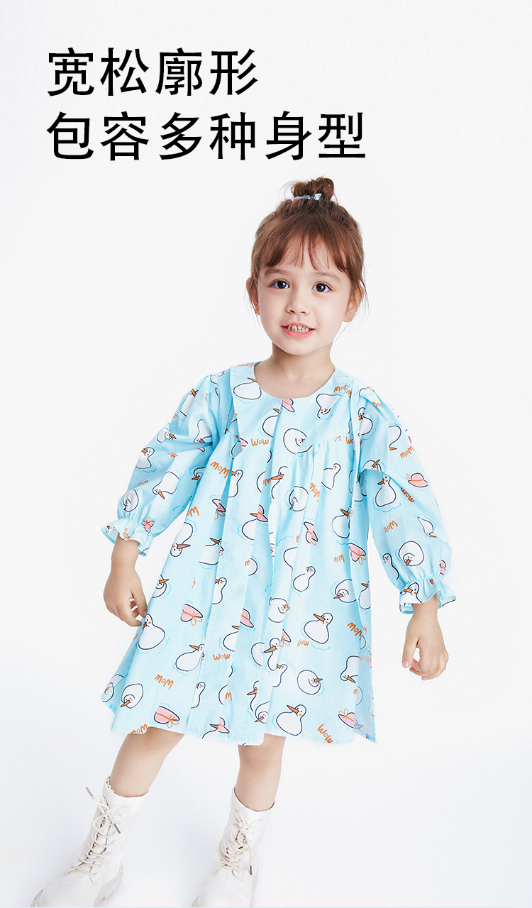 女童连衣裙纯棉秋新款宝宝长袖洋气可爱中长款小孩裙子安奈儿童装TG313073