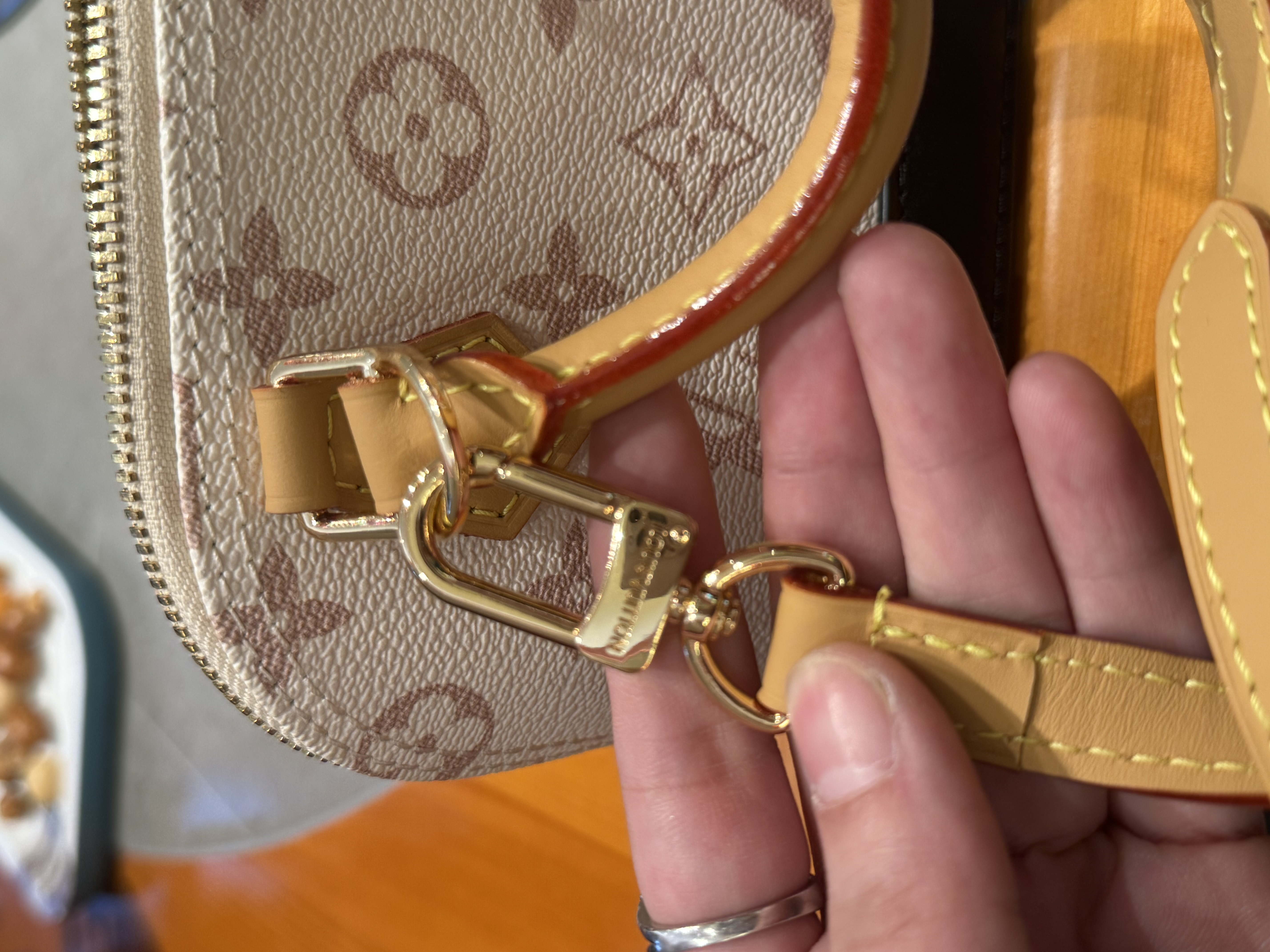 谁能拒绝新出的这款包包啊 ,沙丘色小贝壳~ 海扣正品级!配全套礼盒‼️数量20 18x 12 x8厘米(长度x高x宽) Monogram Dune涂层帆布牛皮革饰边微纤维内衬金属件双拉链开合