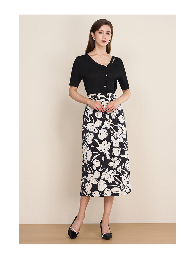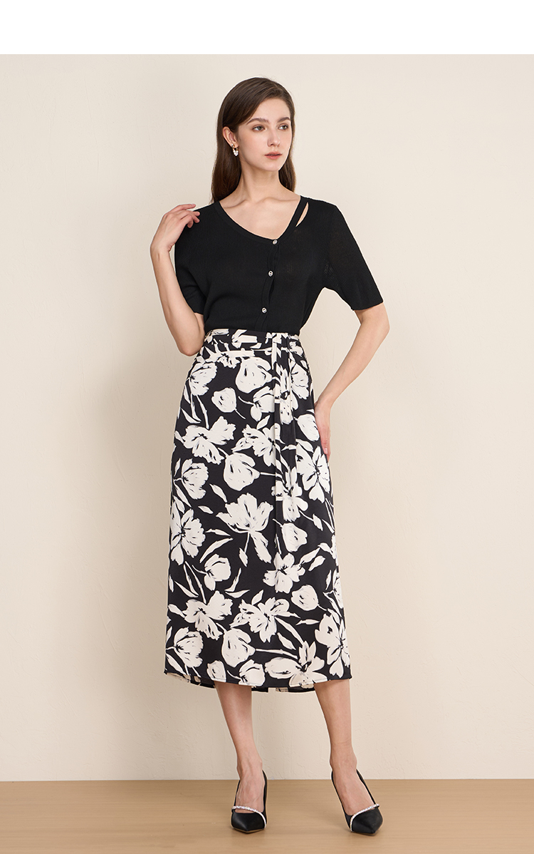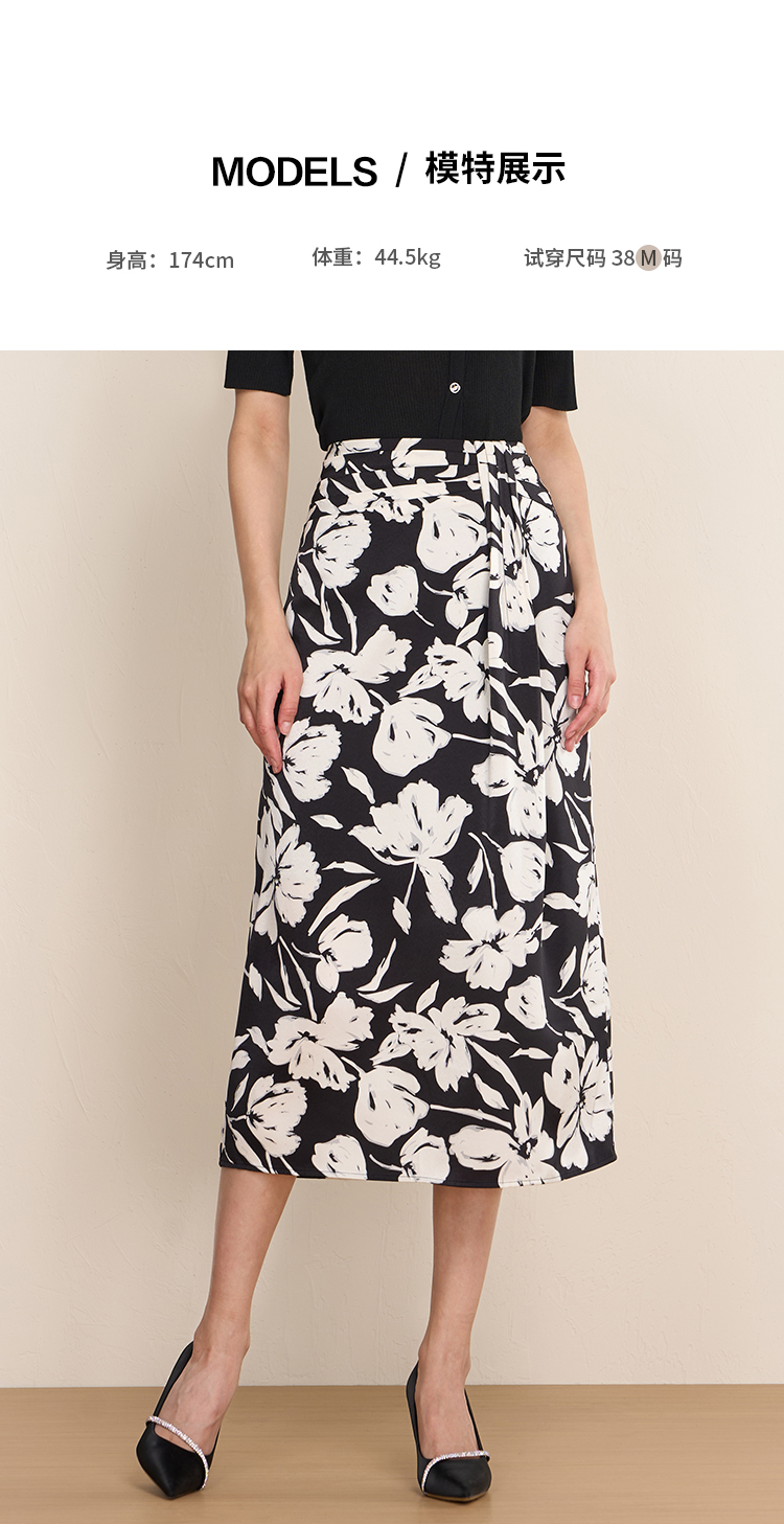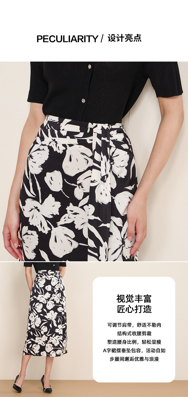 【优雅气质印花半身长裙】EITIE爱特爱复古高腰显瘦秋季新款C2506822