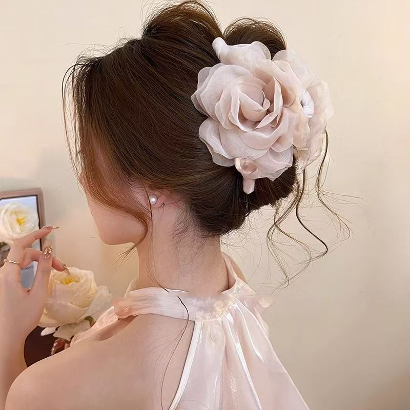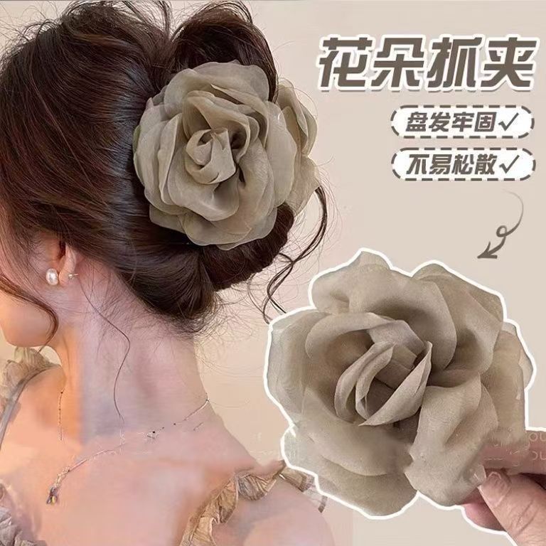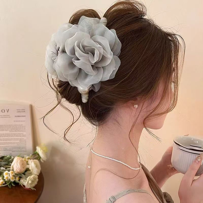 雀说高级感温柔花朵珍珠山茶花抓夹女轻奢气质发夹后脑勺盘发夹子发饰ALW