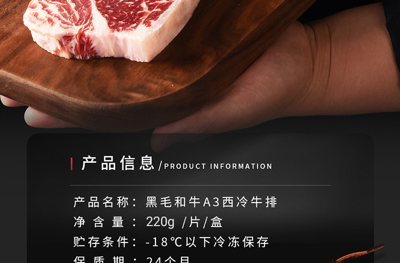 黑毛和牛A3西冷牛排 220g/盒/片