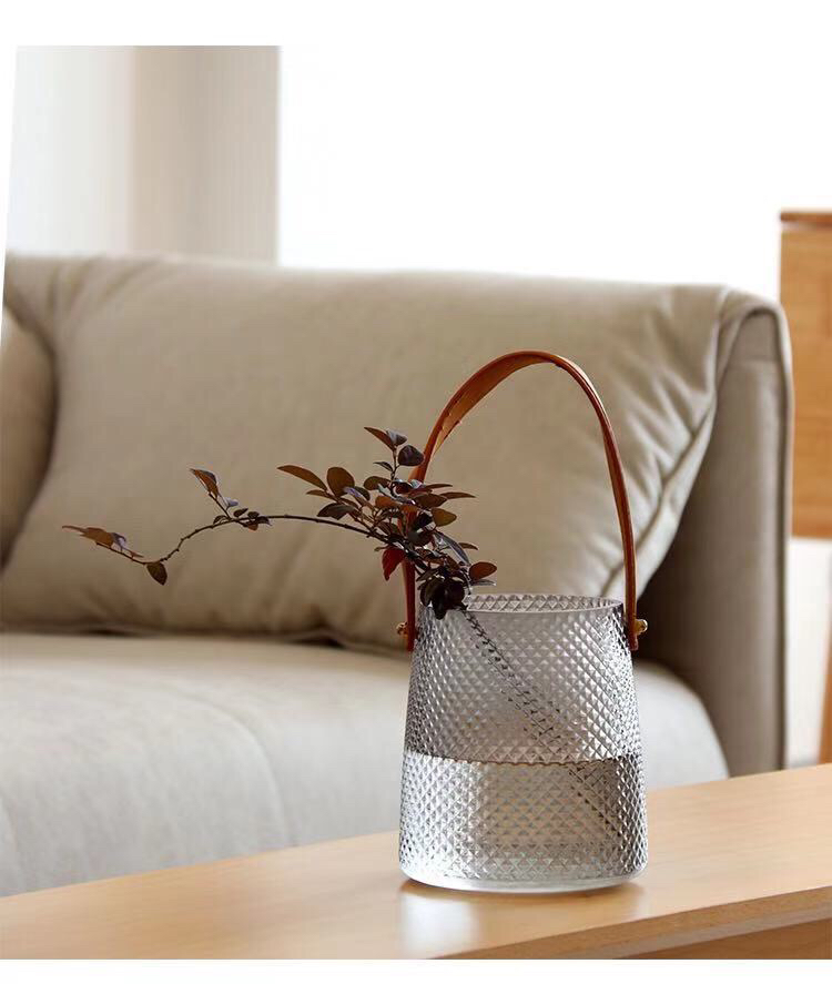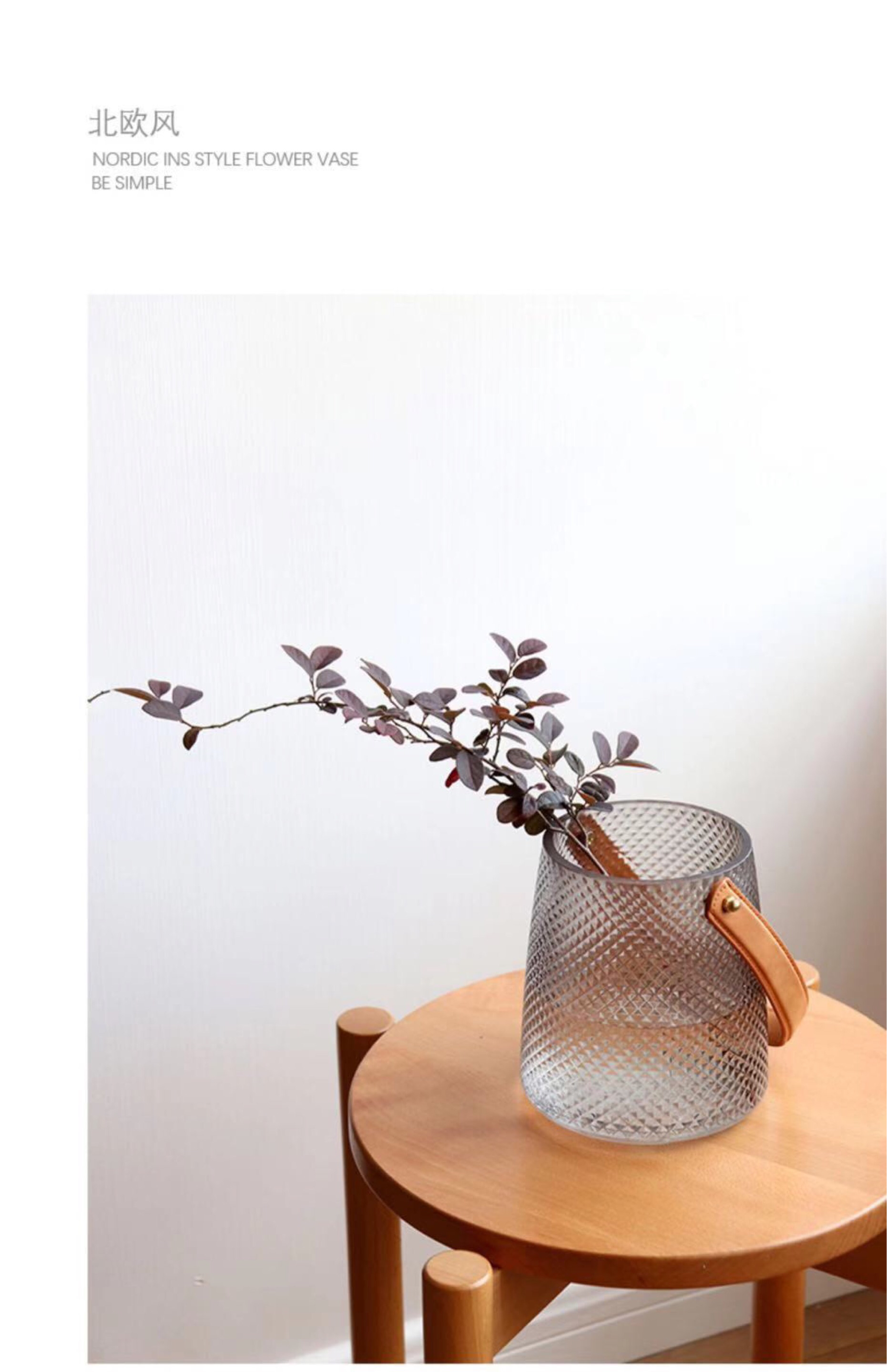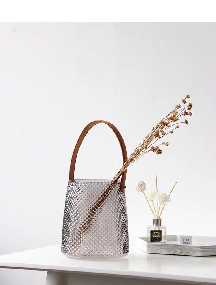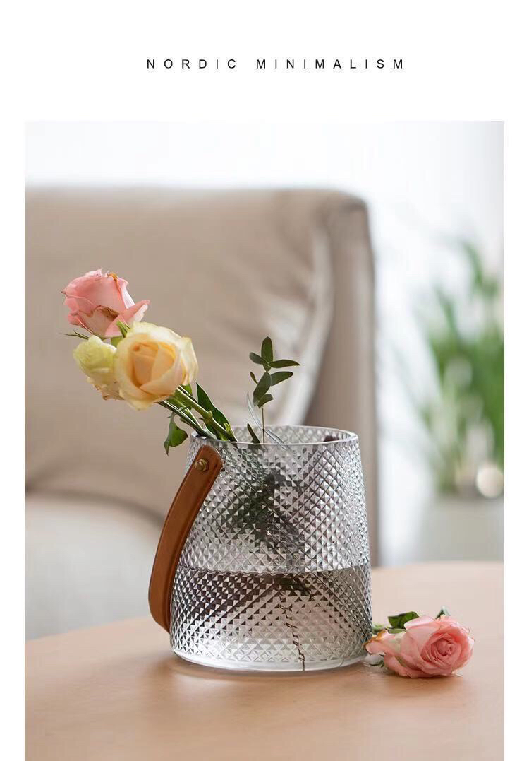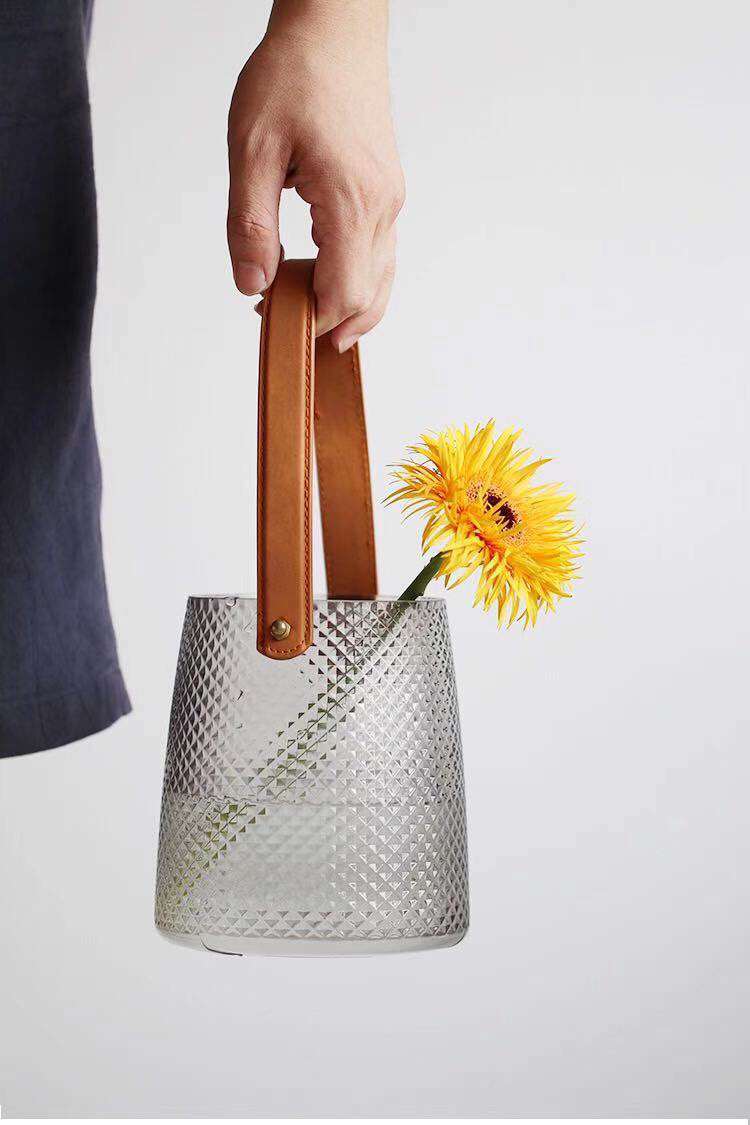 手提花瓶办公室花瓶北欧创意水养玫瑰百合玻璃花瓶插花小花器摆件