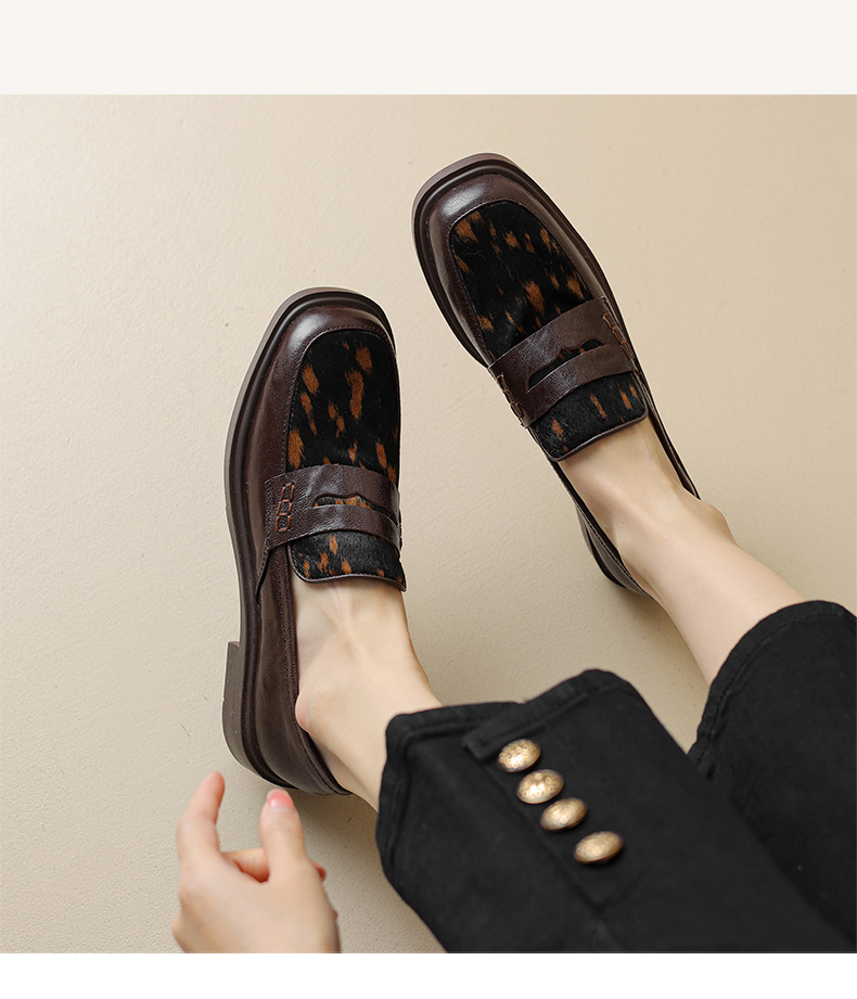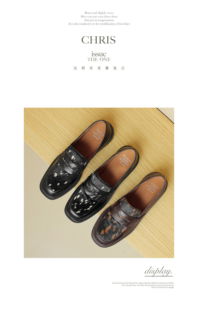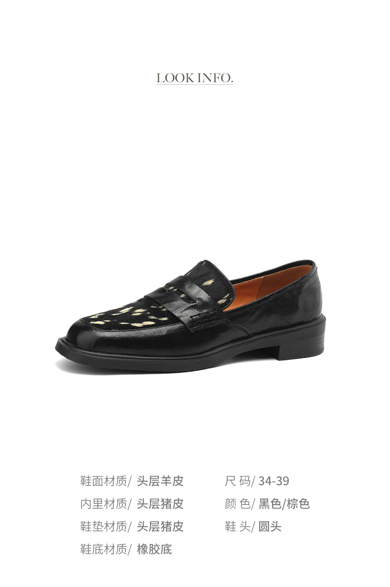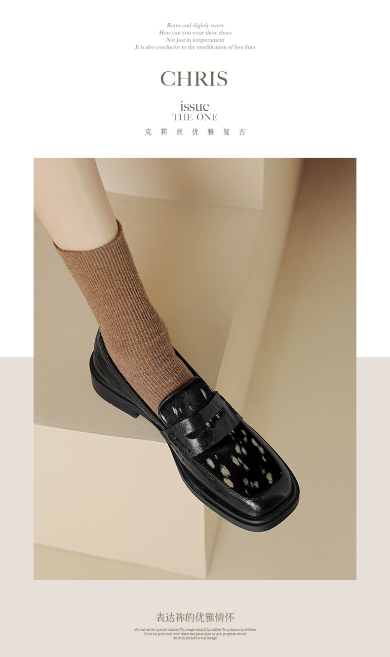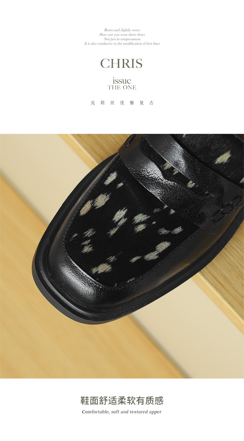 优雅个性,头层羊皮+马毛低跟乐福鞋XCC196
